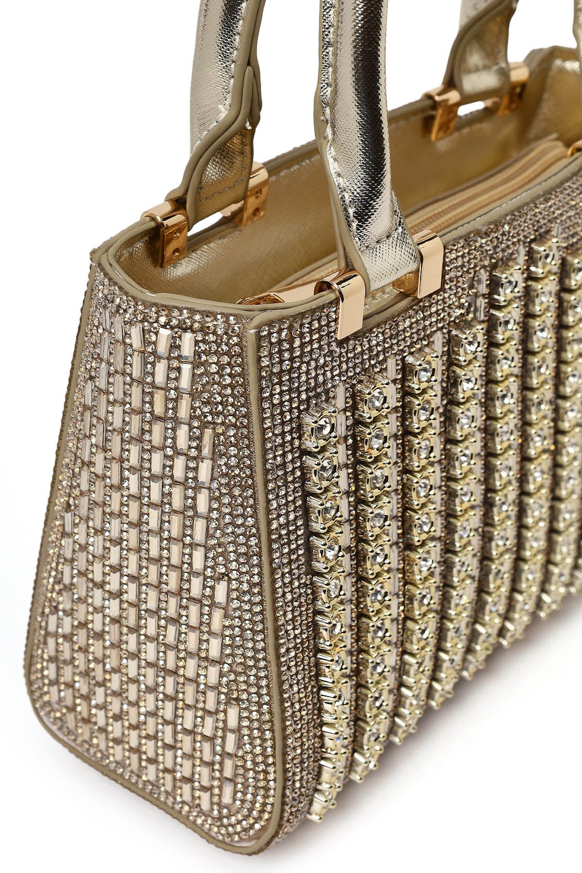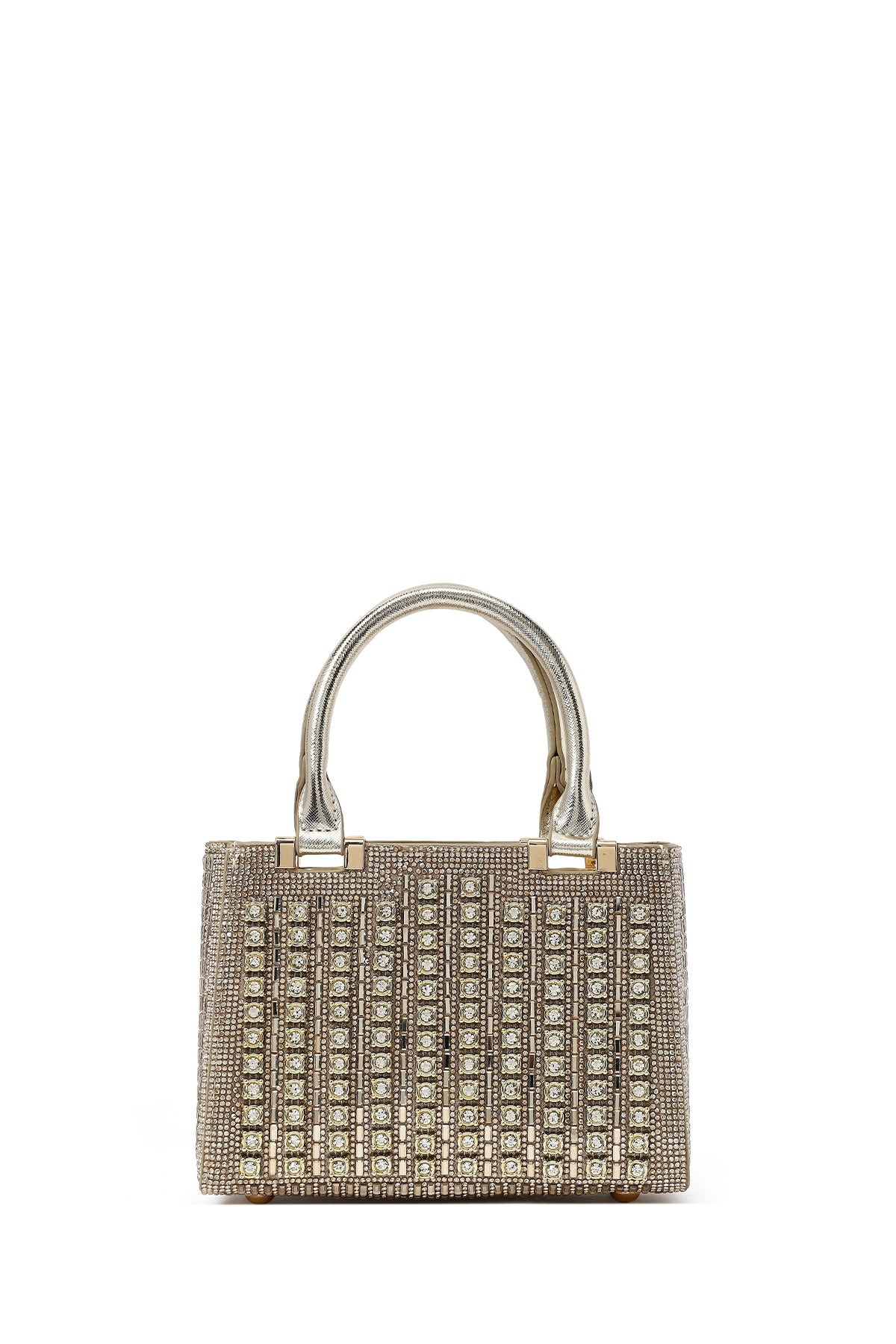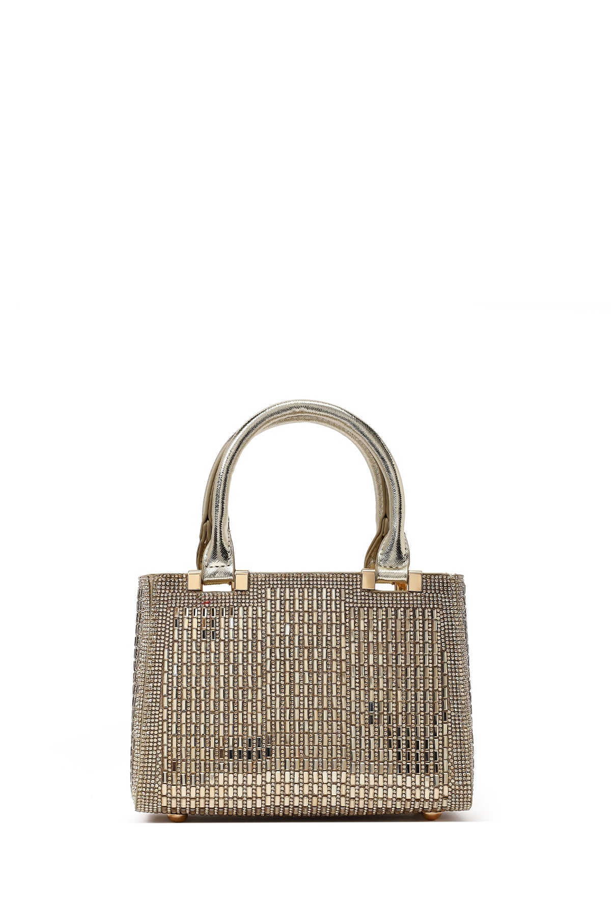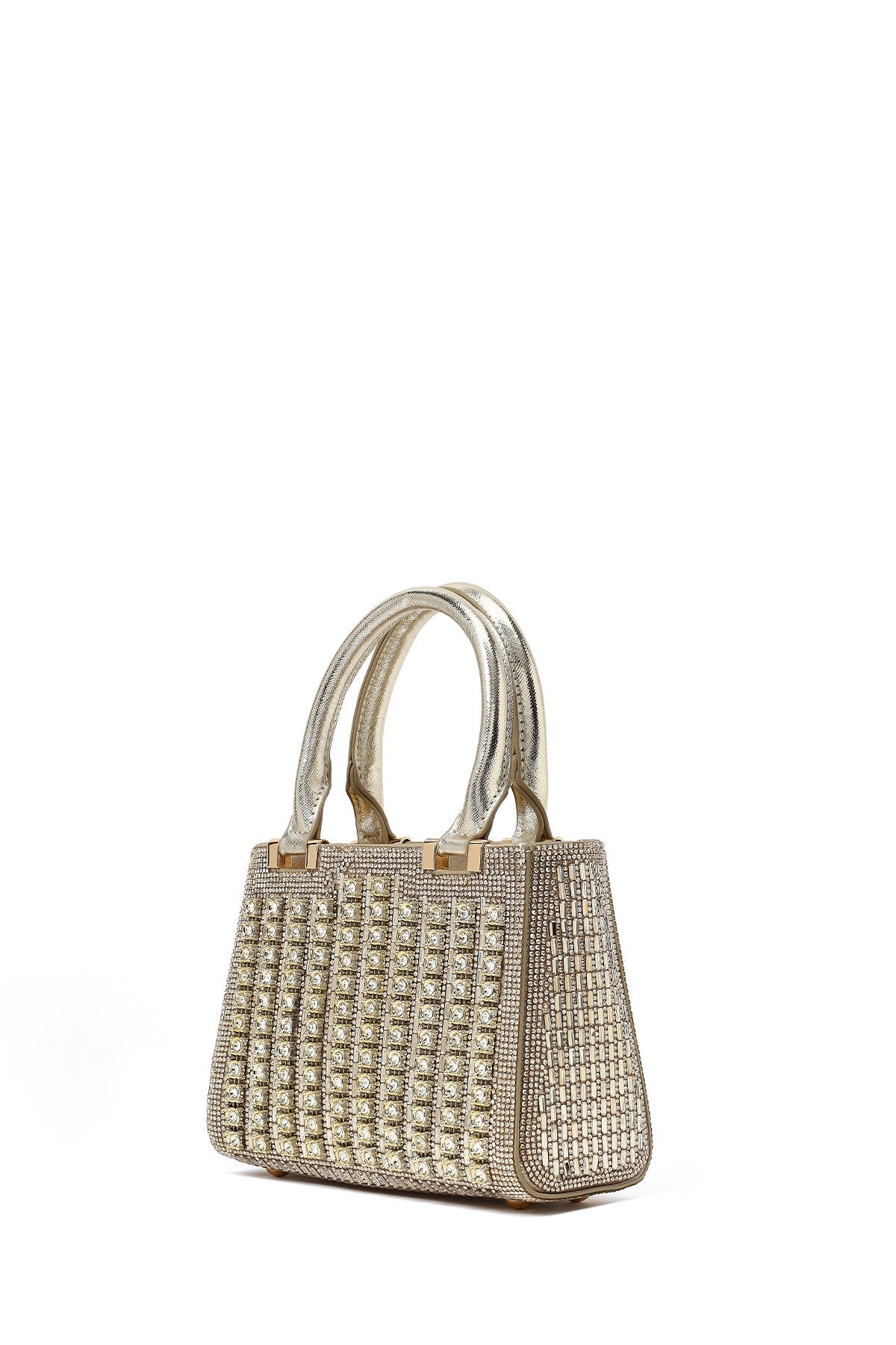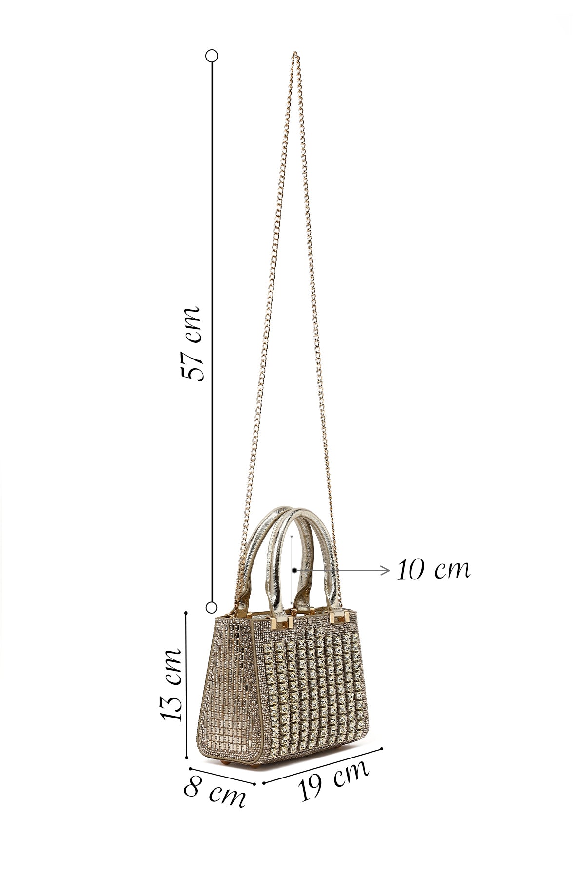 Kadın Altın Uzun Zincir Askılı Taşlı Mini Abiye Çanta