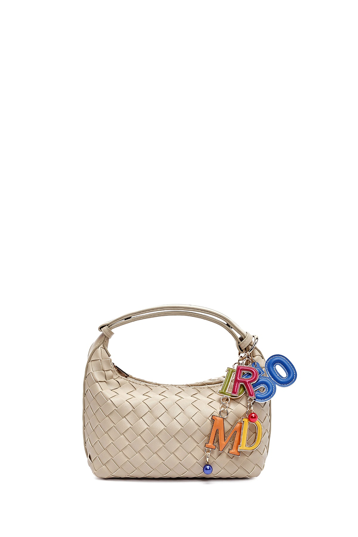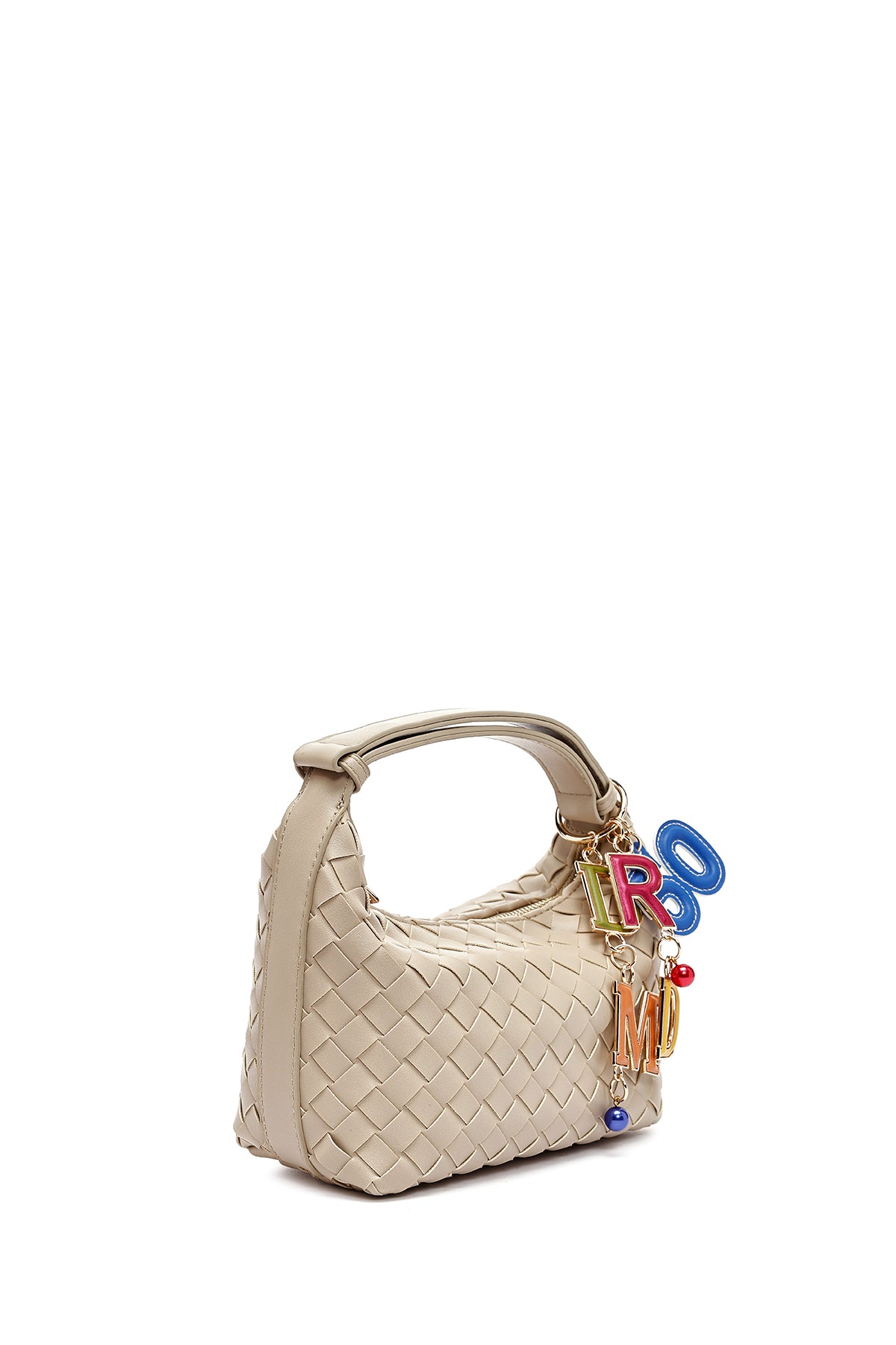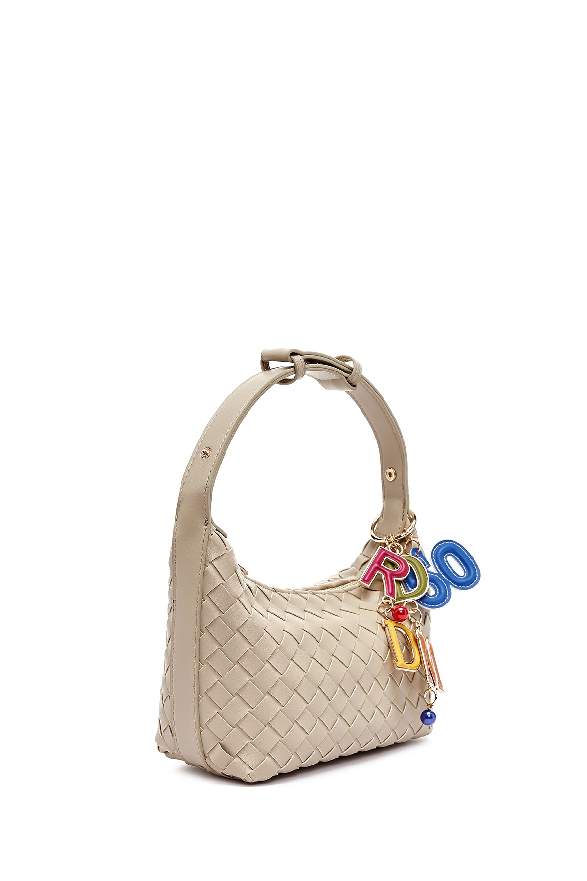 Kadın Bej Aksesuarlı Örgü Mini Kol Çantası