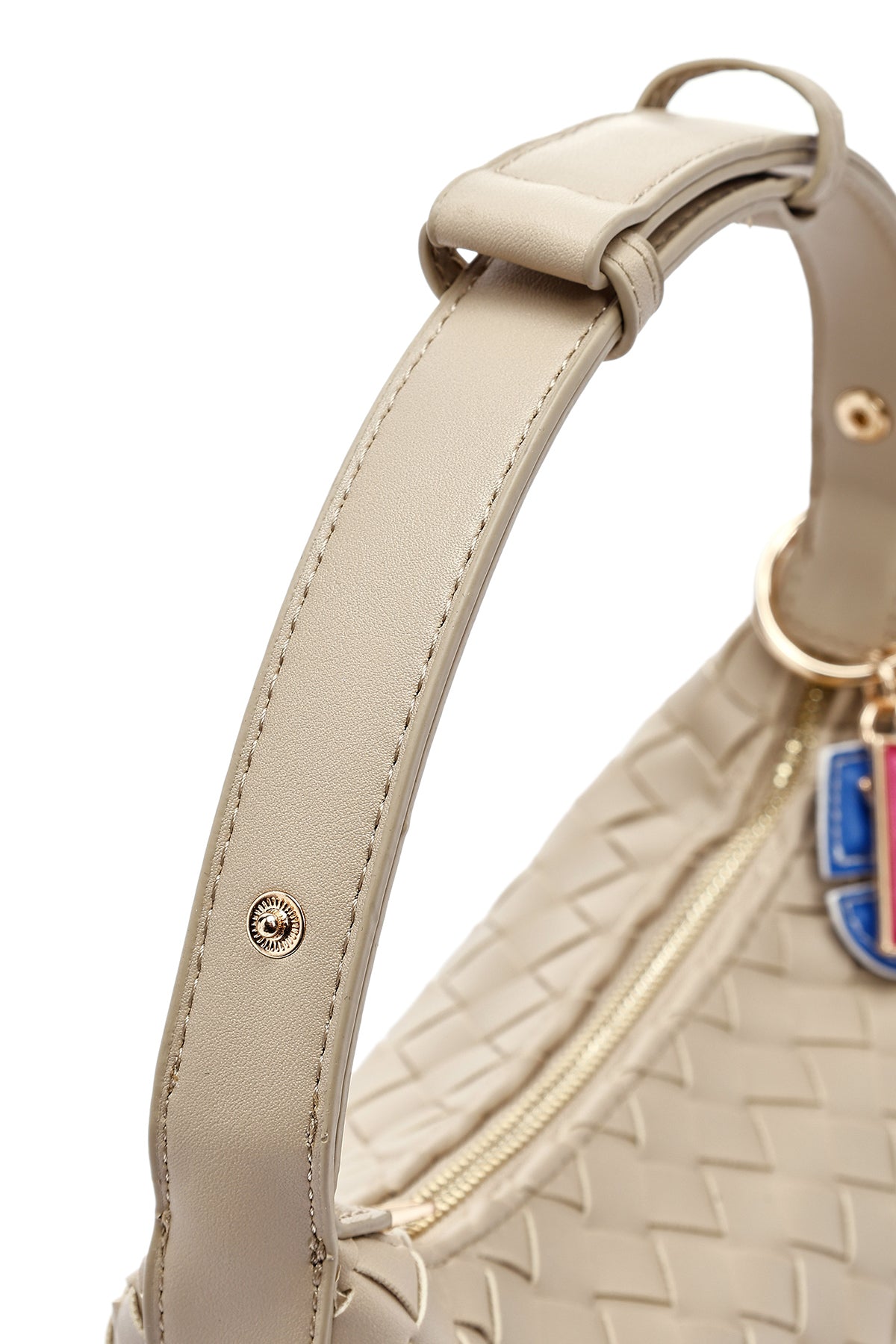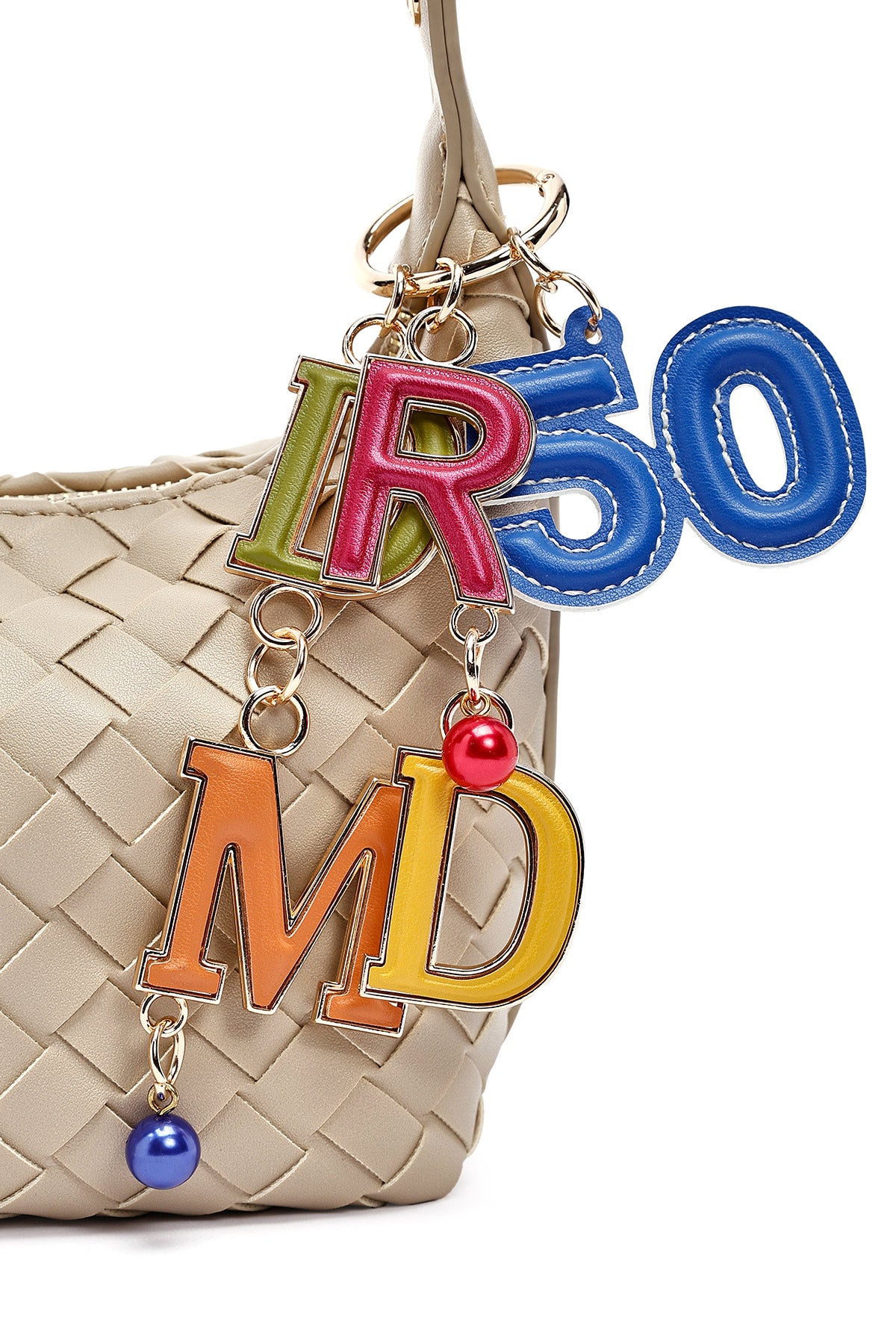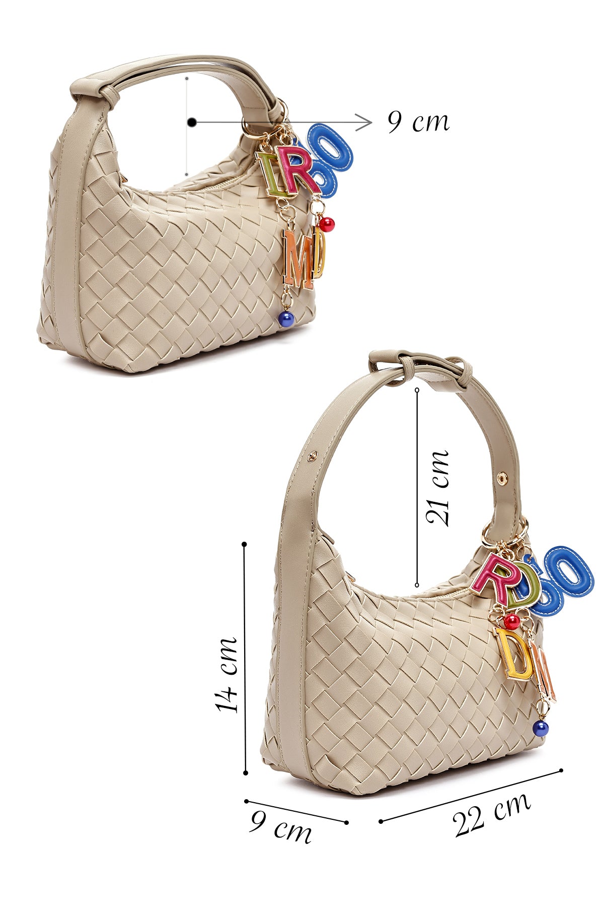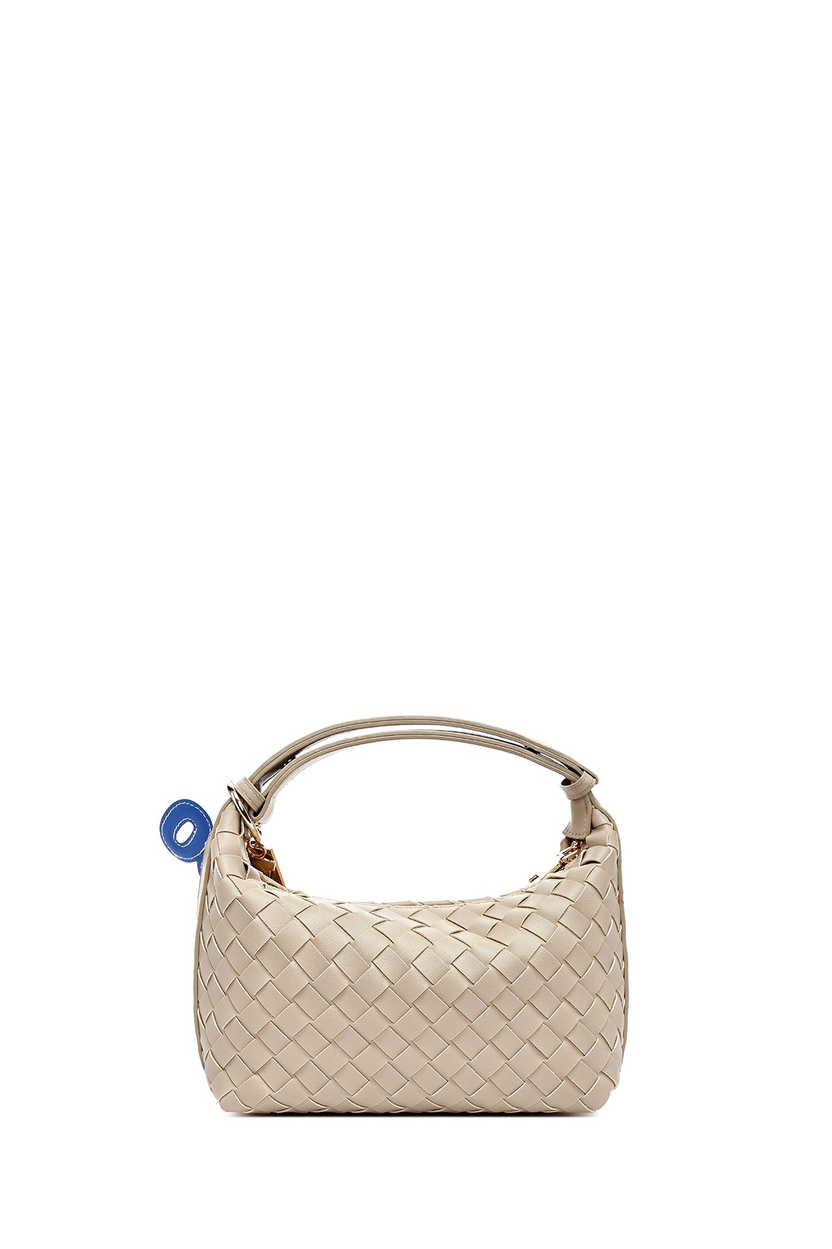 Kadın Bej Aksesuarlı Örgü Mini Kol Çantası