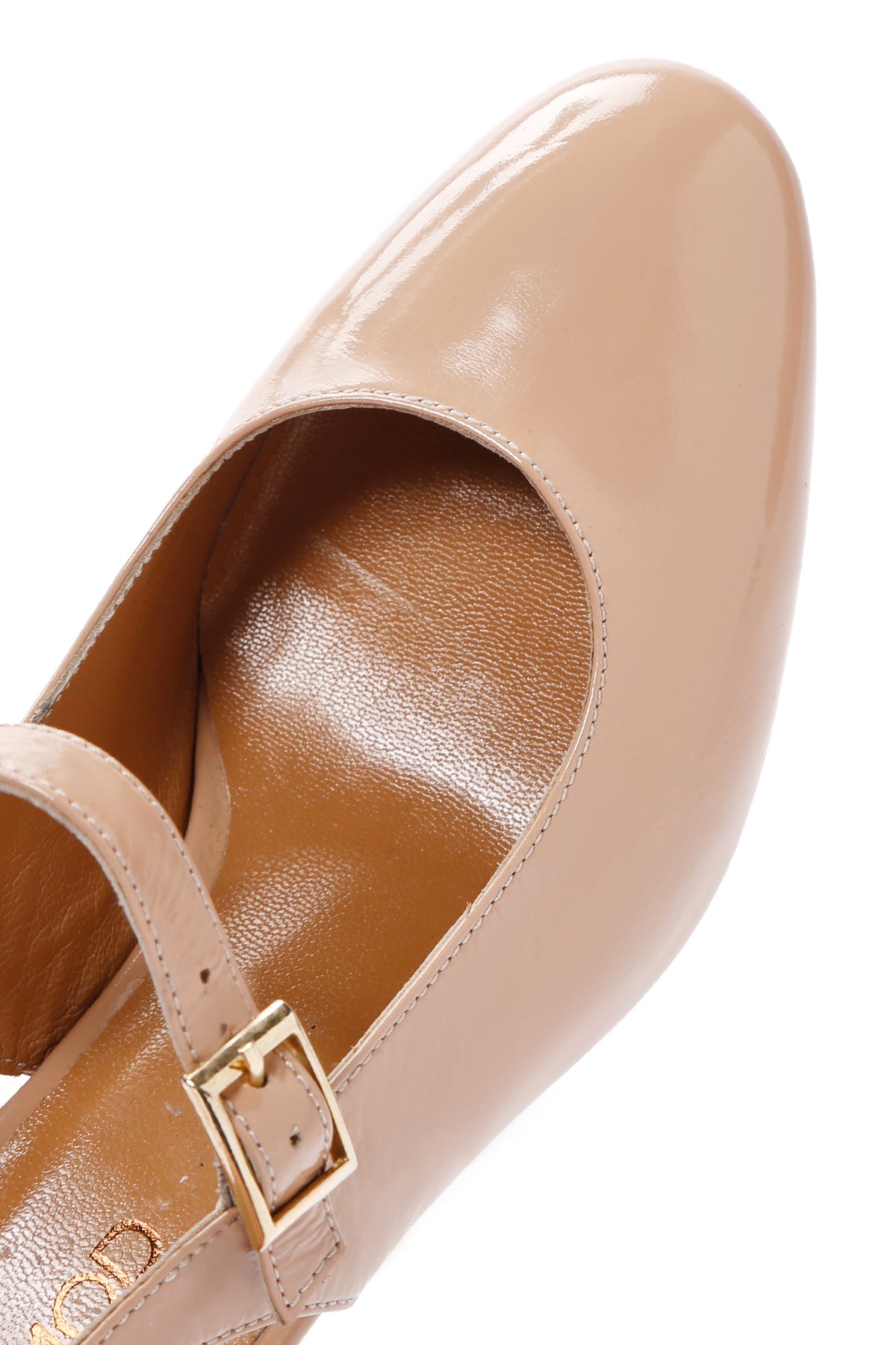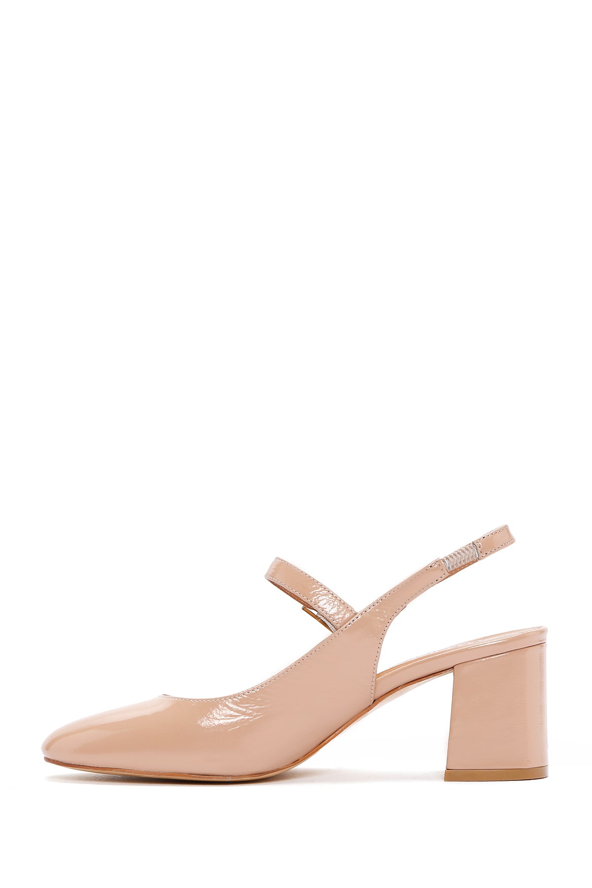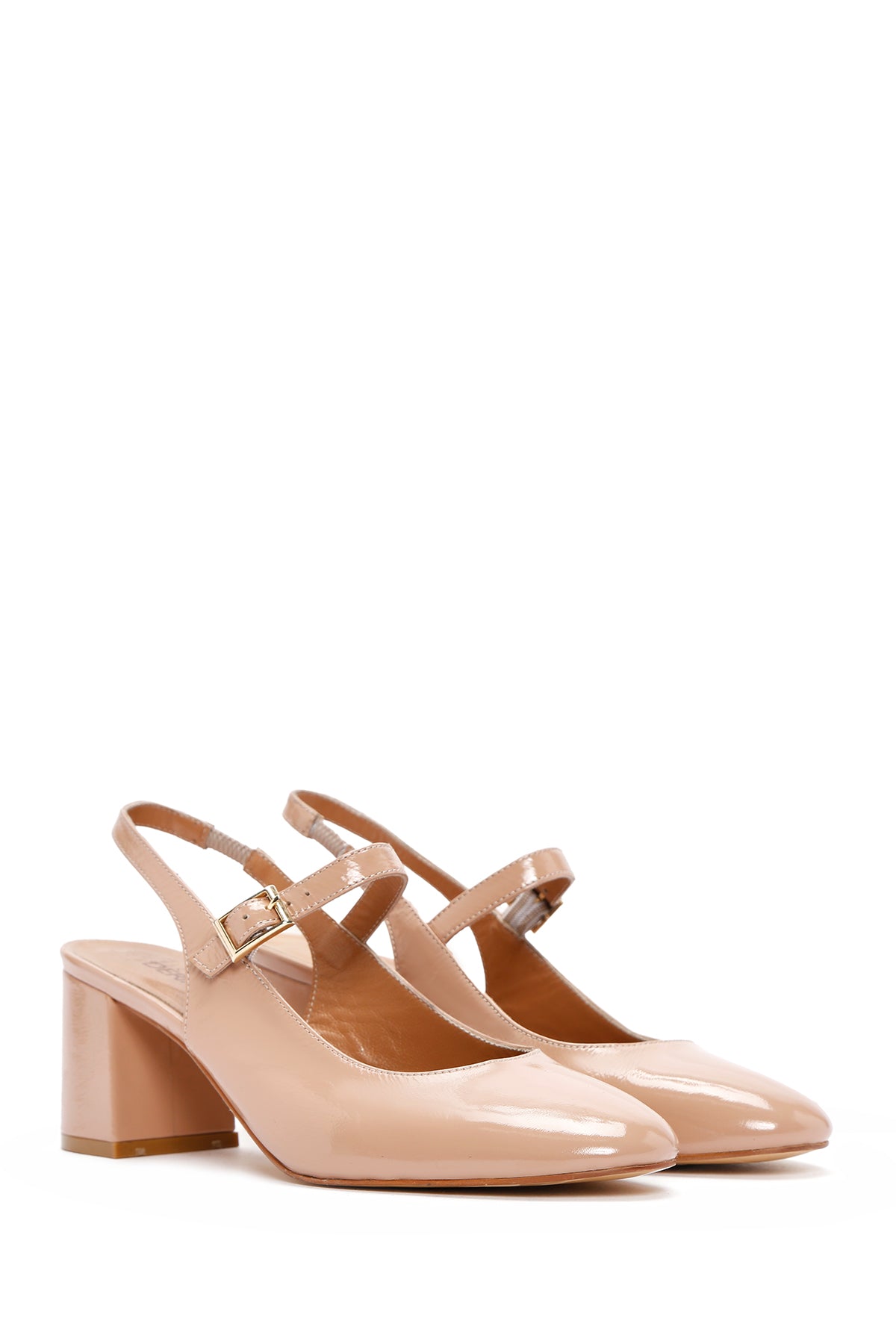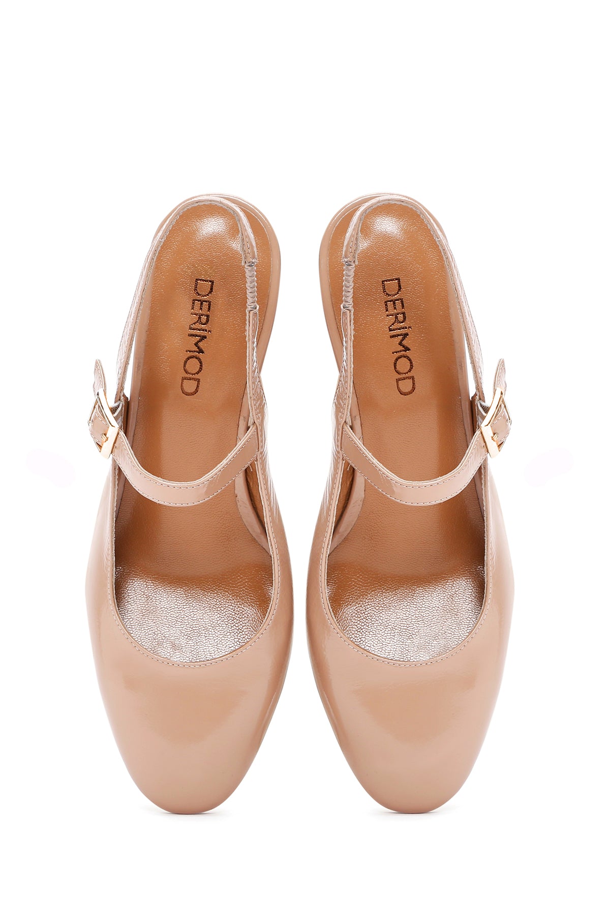 Kadın Bej Arkası Açık Bantlı Topuklu Rugan Deri Stiletto