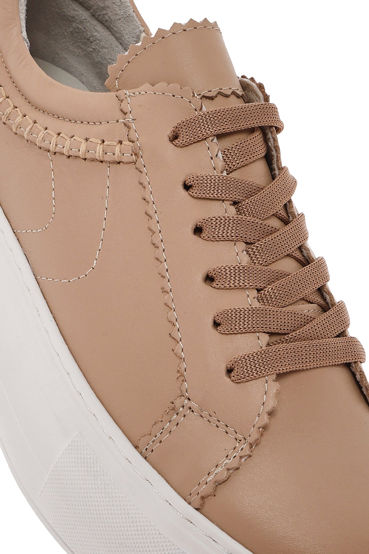 Derimod’un Zarifliği ve Şıklığı bir arada sunan Kadın Bej Bağcıklı Kalın Tabanlı Deri Sneaker ile tarzınızı konuşturun. Ürünün kodu: 25SFD371318 N8