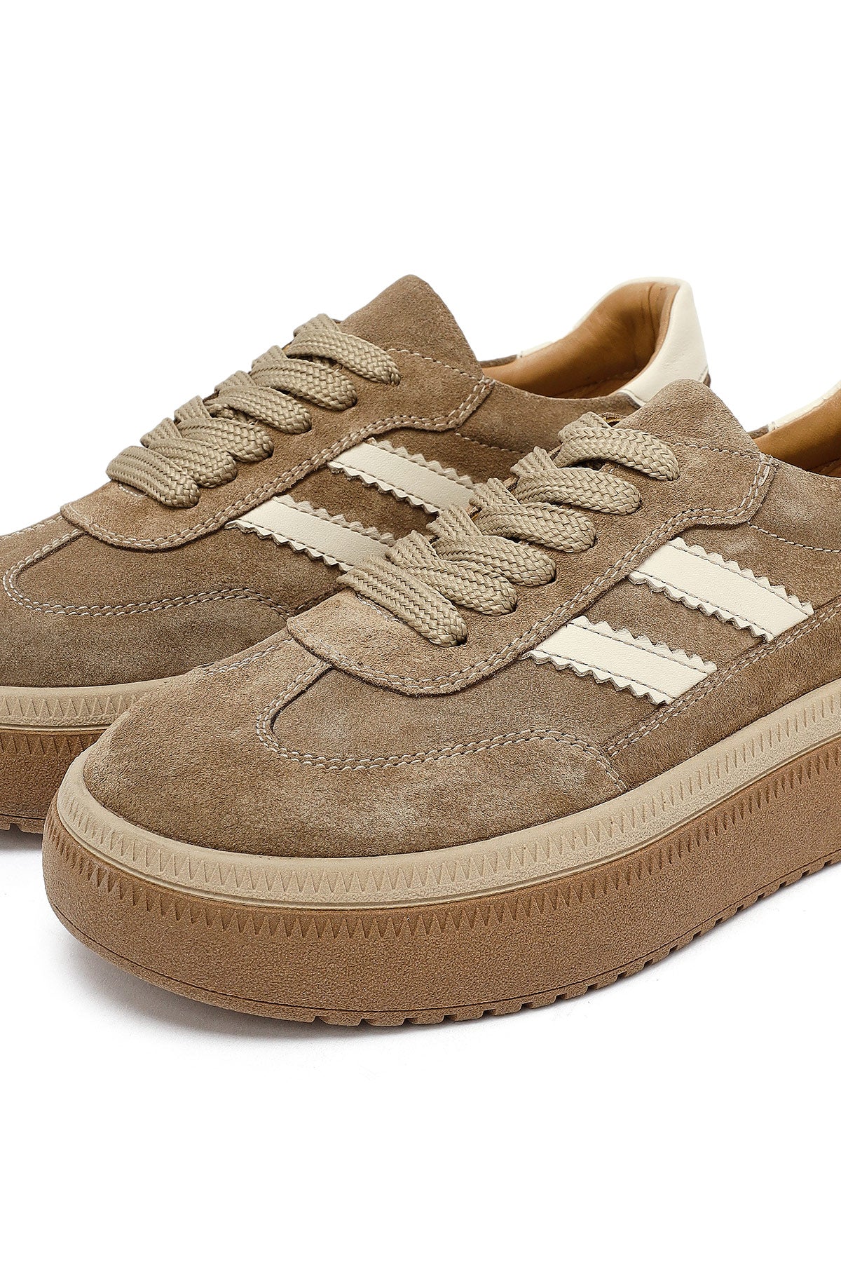 Derimod’un Zarifliği ve Şıklığı bir arada sunan Kadın Bej Bağcıklı Kalın Tabanlı Süet Deri Sneaker ile tarzınızı konuşturun. Ürünün kodu: 25AFD512610 E9