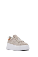 Derimod’un Zarifliği ve Şıklığı bir arada sunan Kadın Bej Bağcıklı Kalın Tabanlı Süet Deri Sneaker ile tarzınızı konuşturun. Ürünün kodu: 25SFD371510 05
