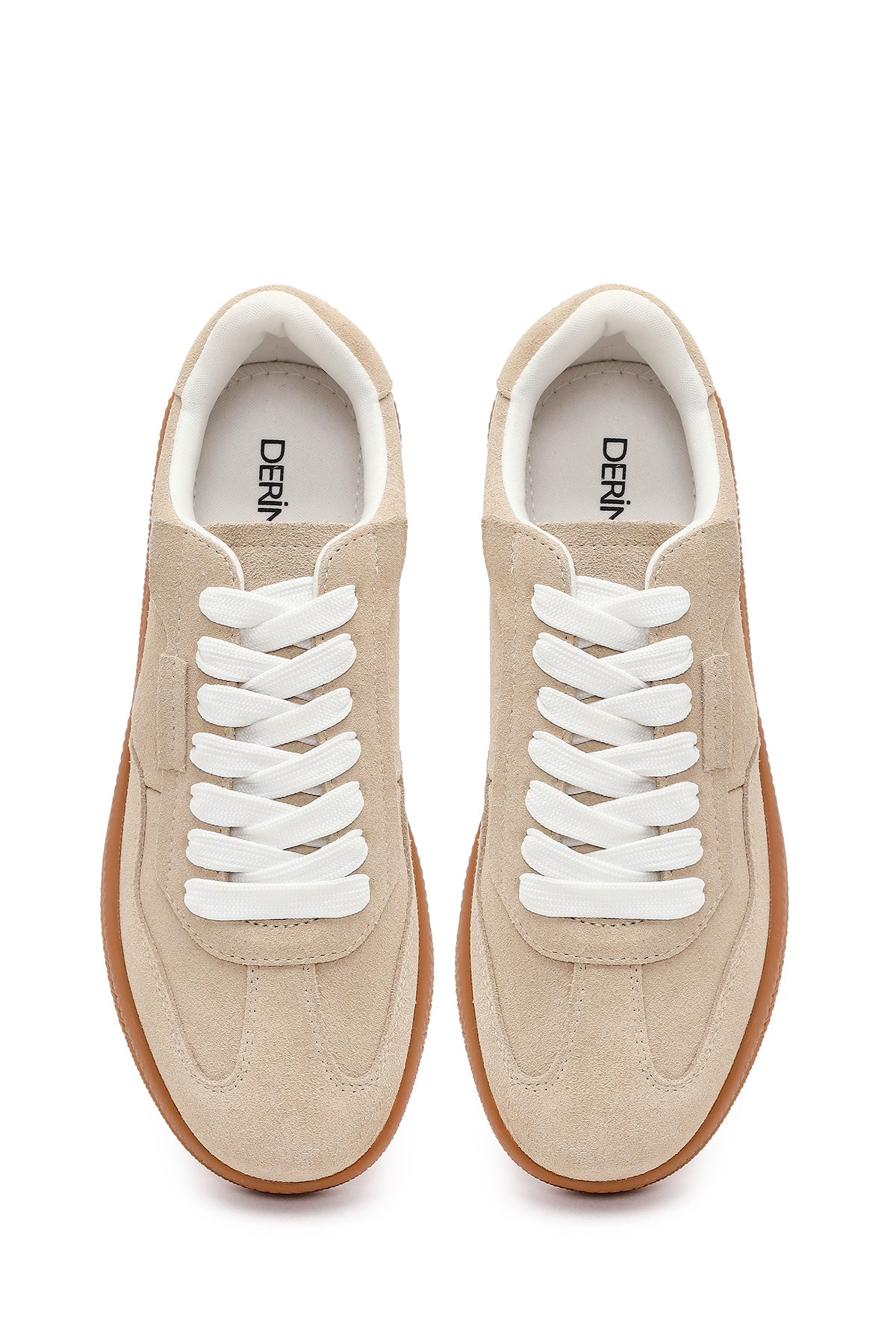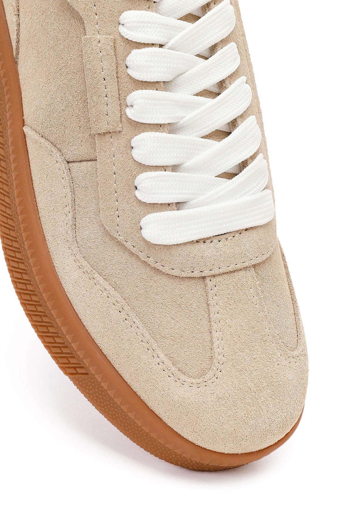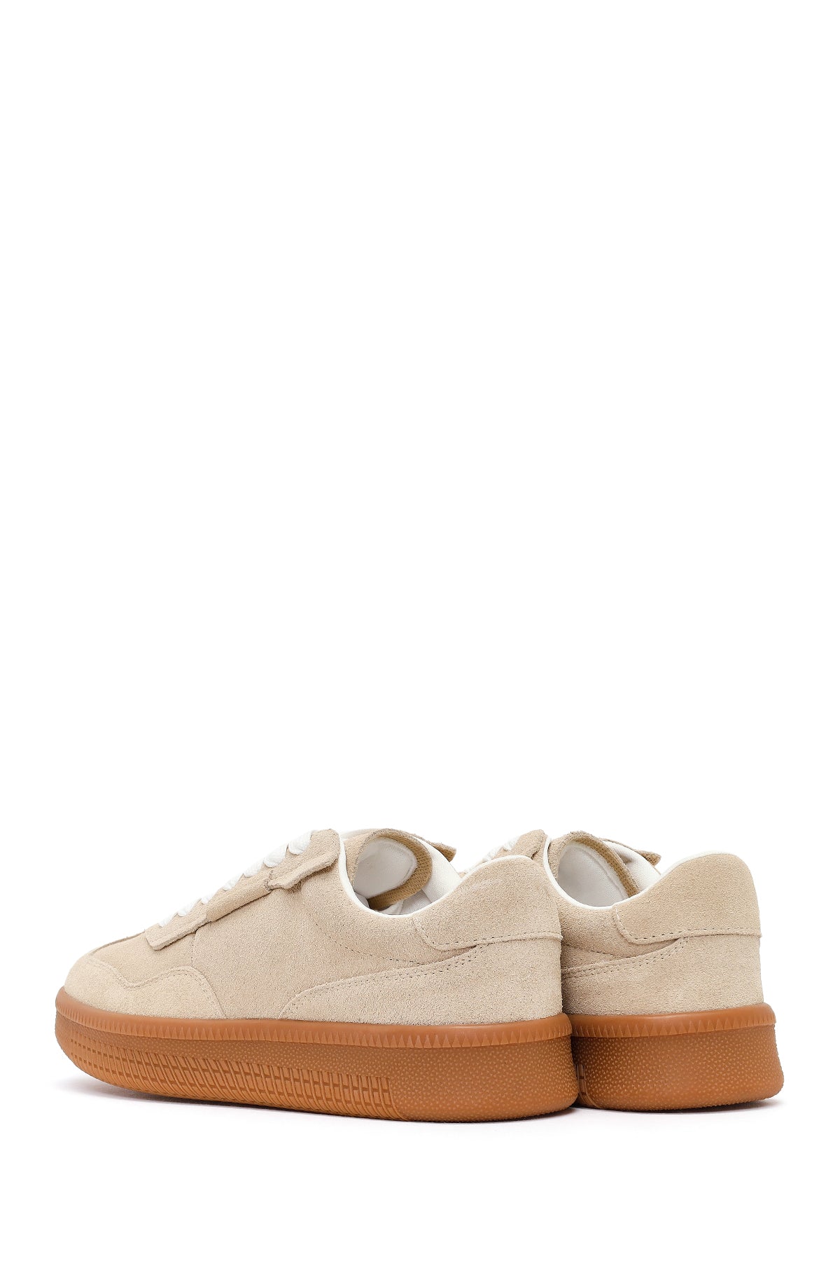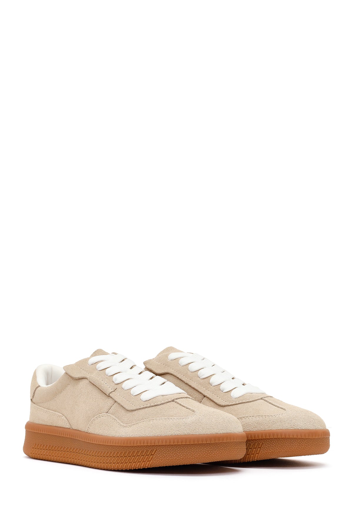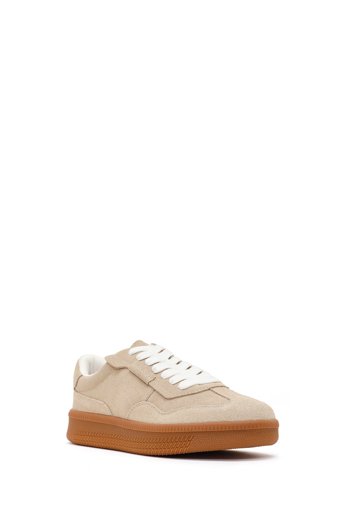 Kadın Bej Bağcıklı Kalın Tabanlı Süet Deri Sneaker
