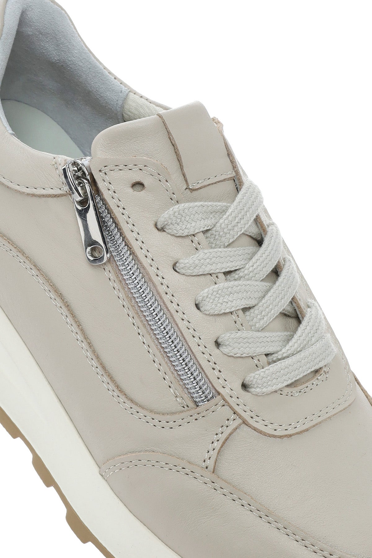 Derimod’un Zarifliği ve Şıklığı bir arada sunan Kadın Bej Bağcıklı Yandan Fermuarlı Deri Sneaker ile tarzınızı konuşturun. Ürünün kodu: 25SFD372118 05