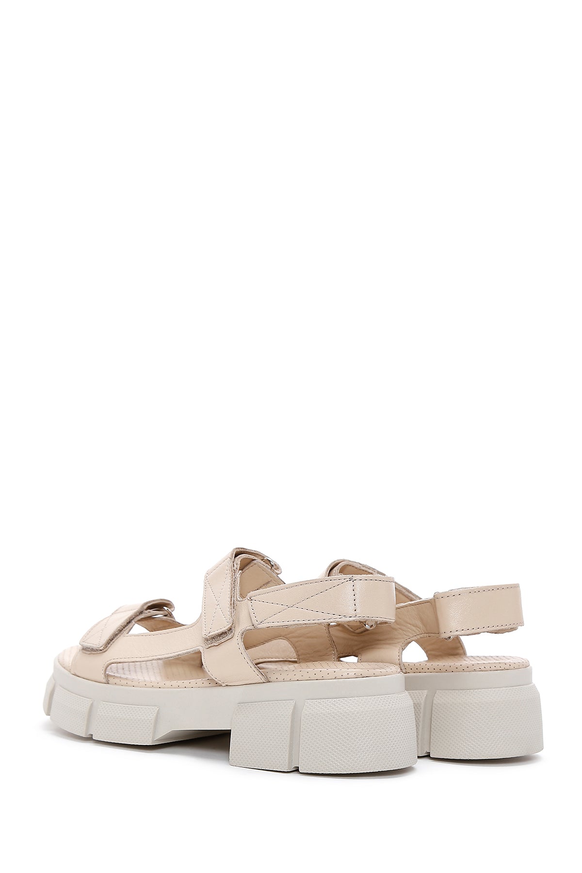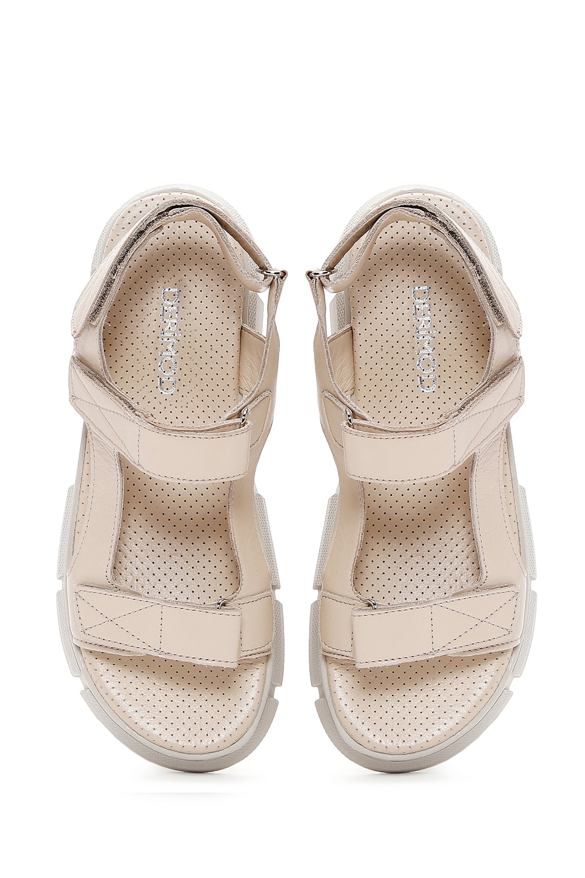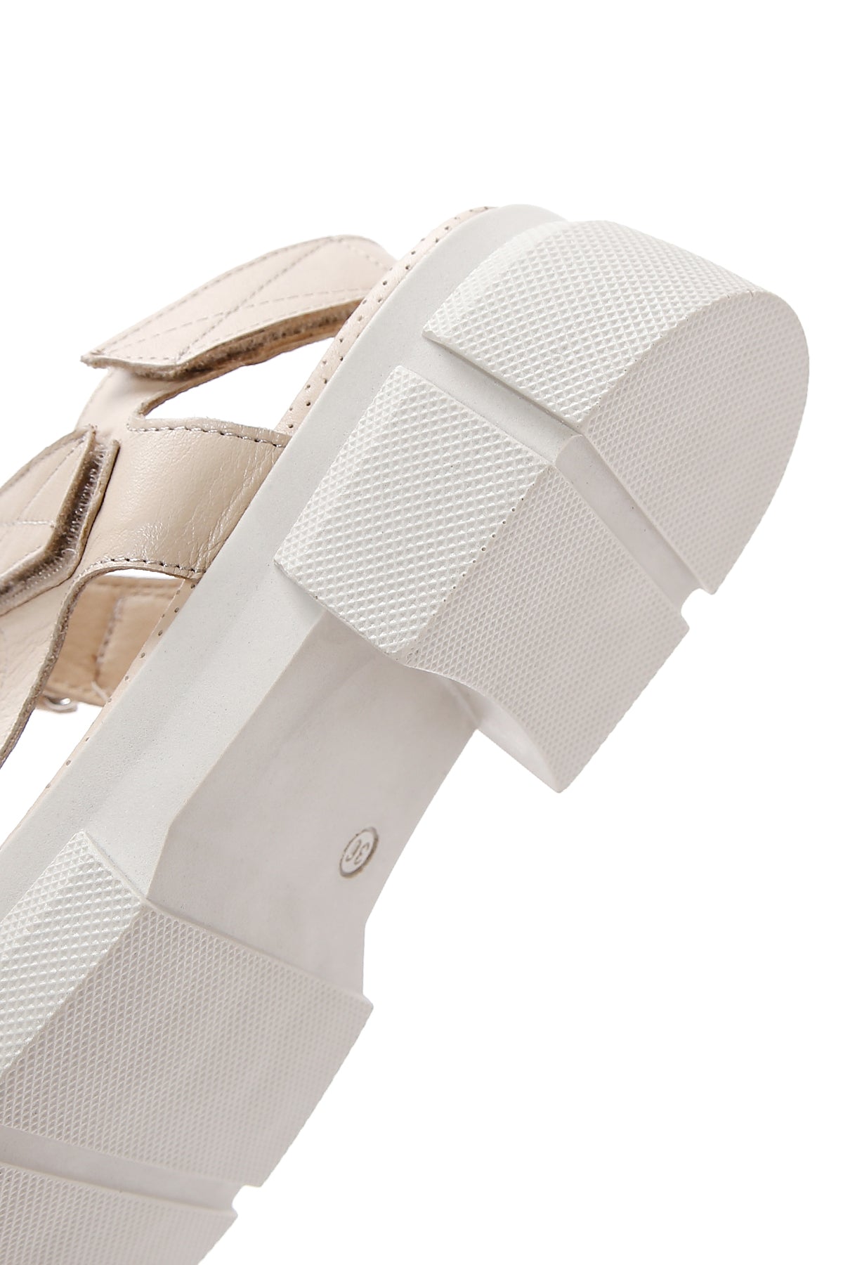 Derimod’un Zarif ve Şıklığı bir arada sunan Kadın Bej Bantlı Kalın Tabanlı Deri Sandalet ile tarzınızı konuşturun. Ürünün kodu: 24SFD350318 05