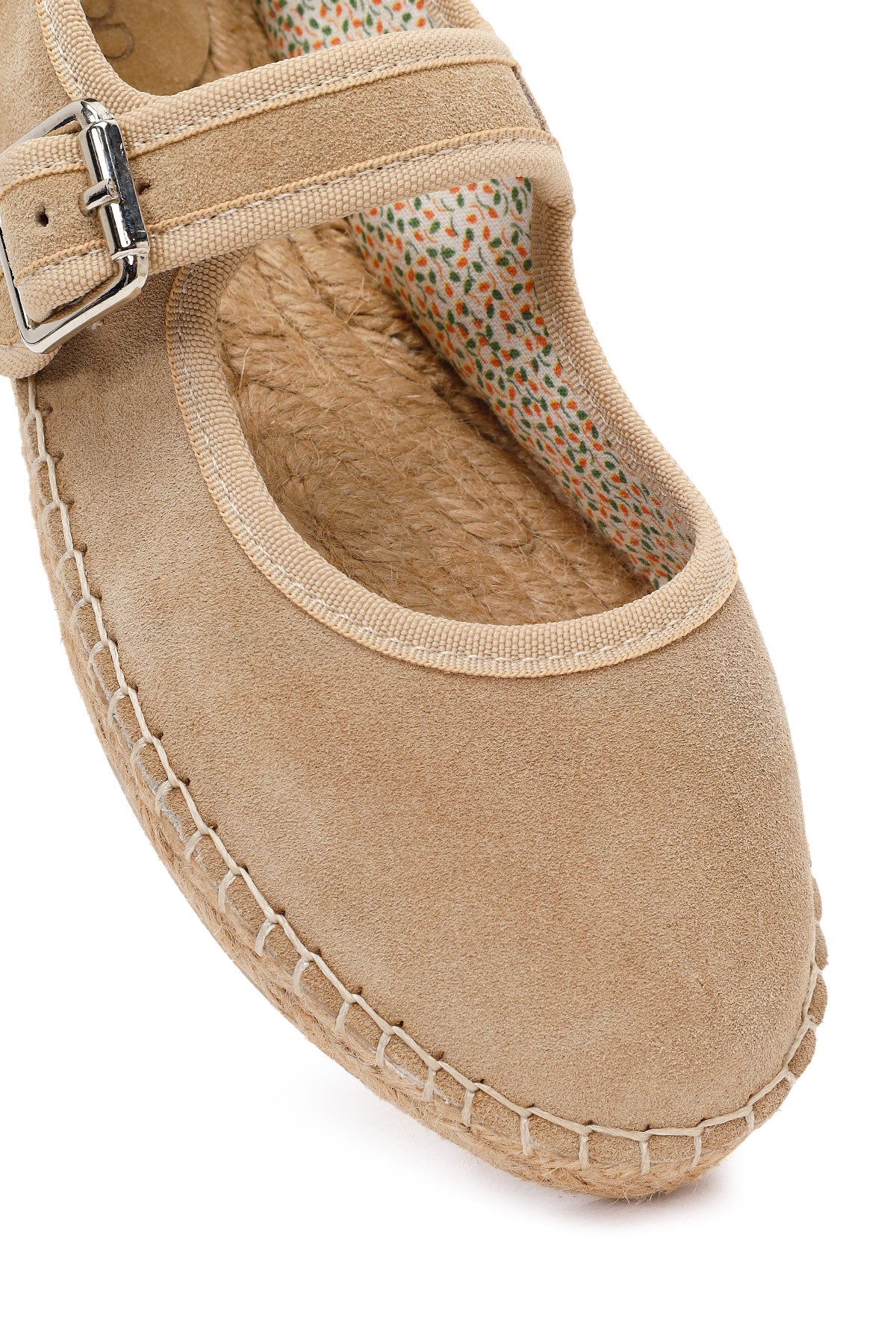 Kadın Bej Bantlı Süet Deri Espadril