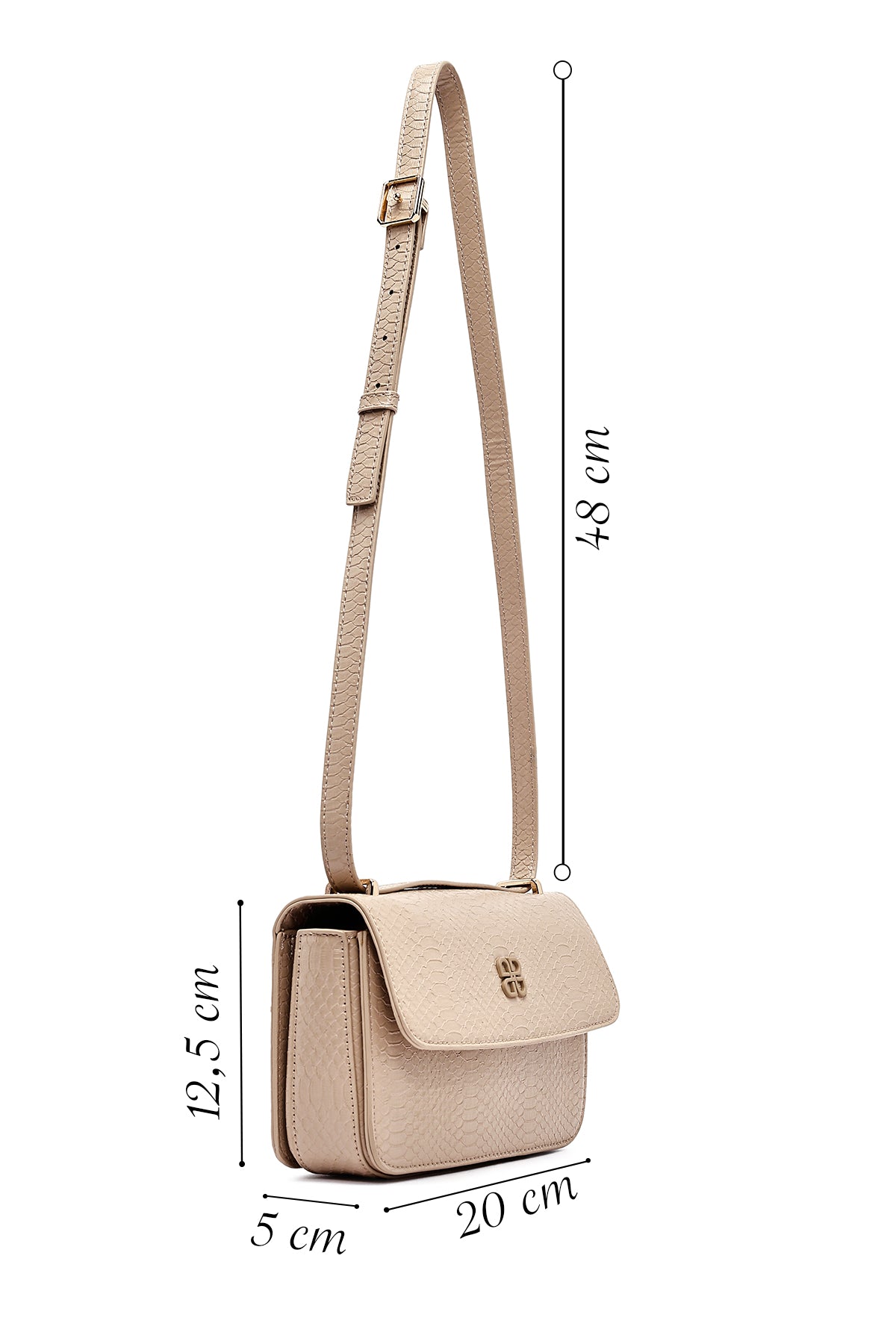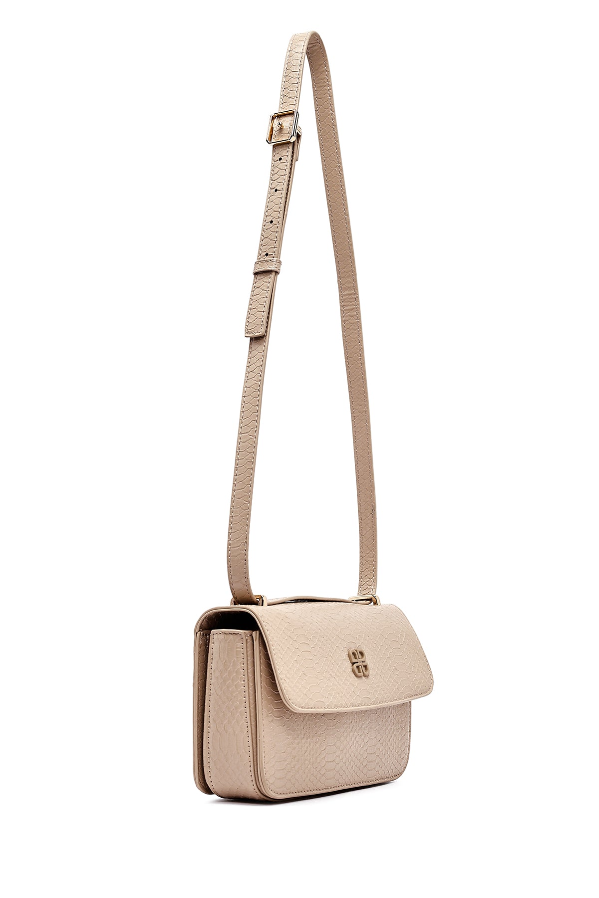 Kadın Bej Baskılı Uzun Askılı Çapraz Çanta