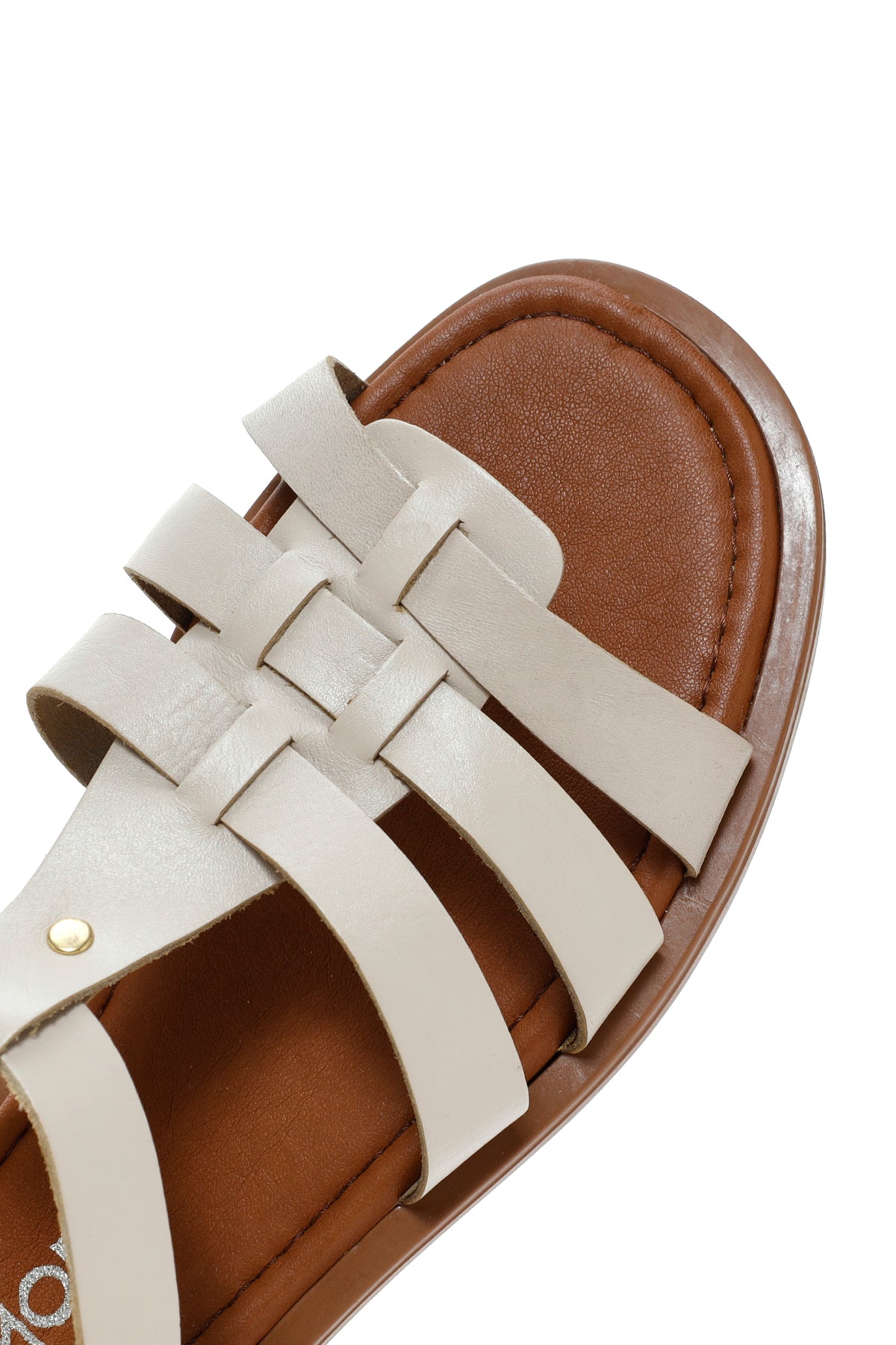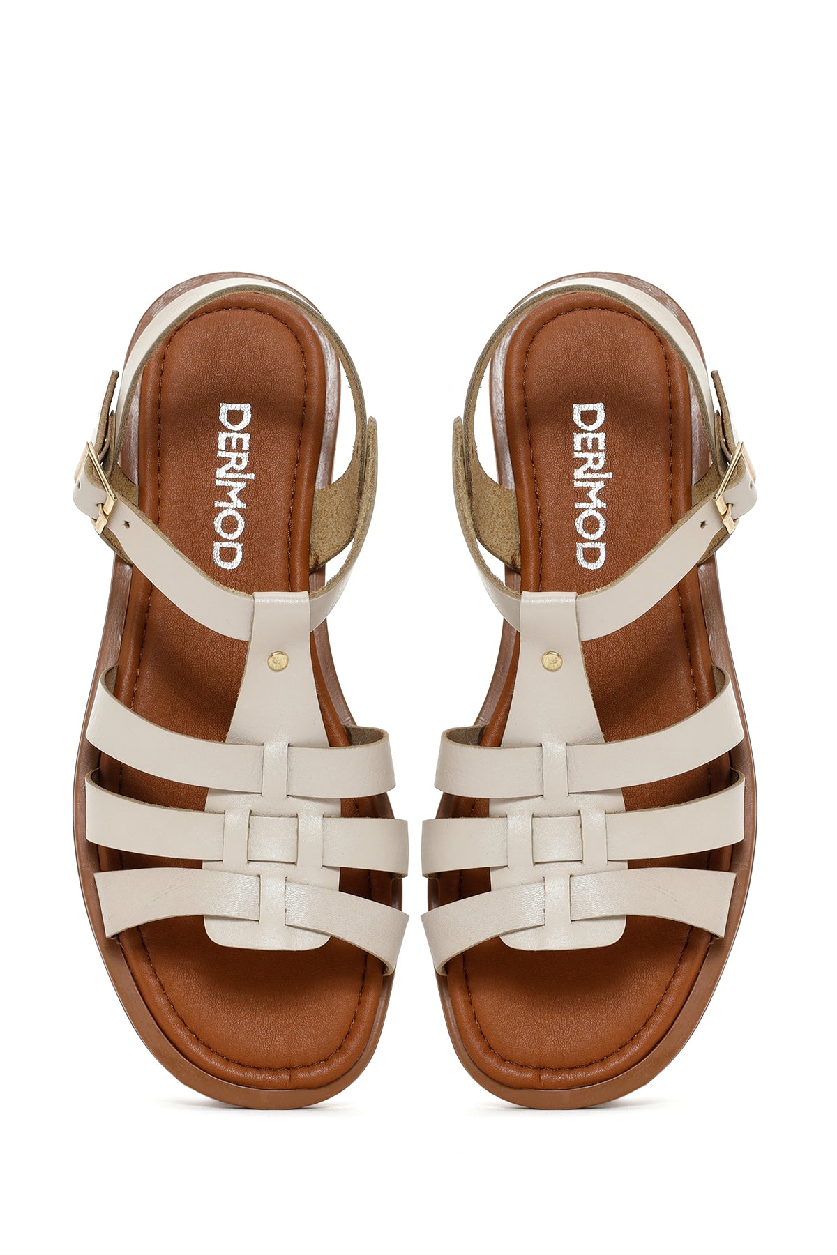 Derimod’un Zarif ve Şıklığı bir arada sunan Kadın Bej Bilekten Bantlı Deri Bodrum Sandaleti ile tarzınızı konuşturun. Ürünün kodu: 24SFD332918 2K