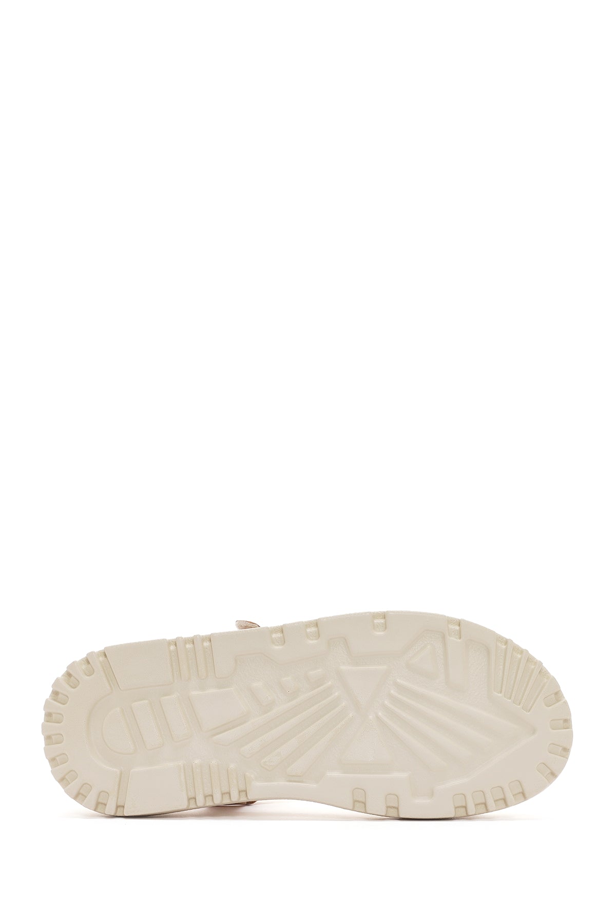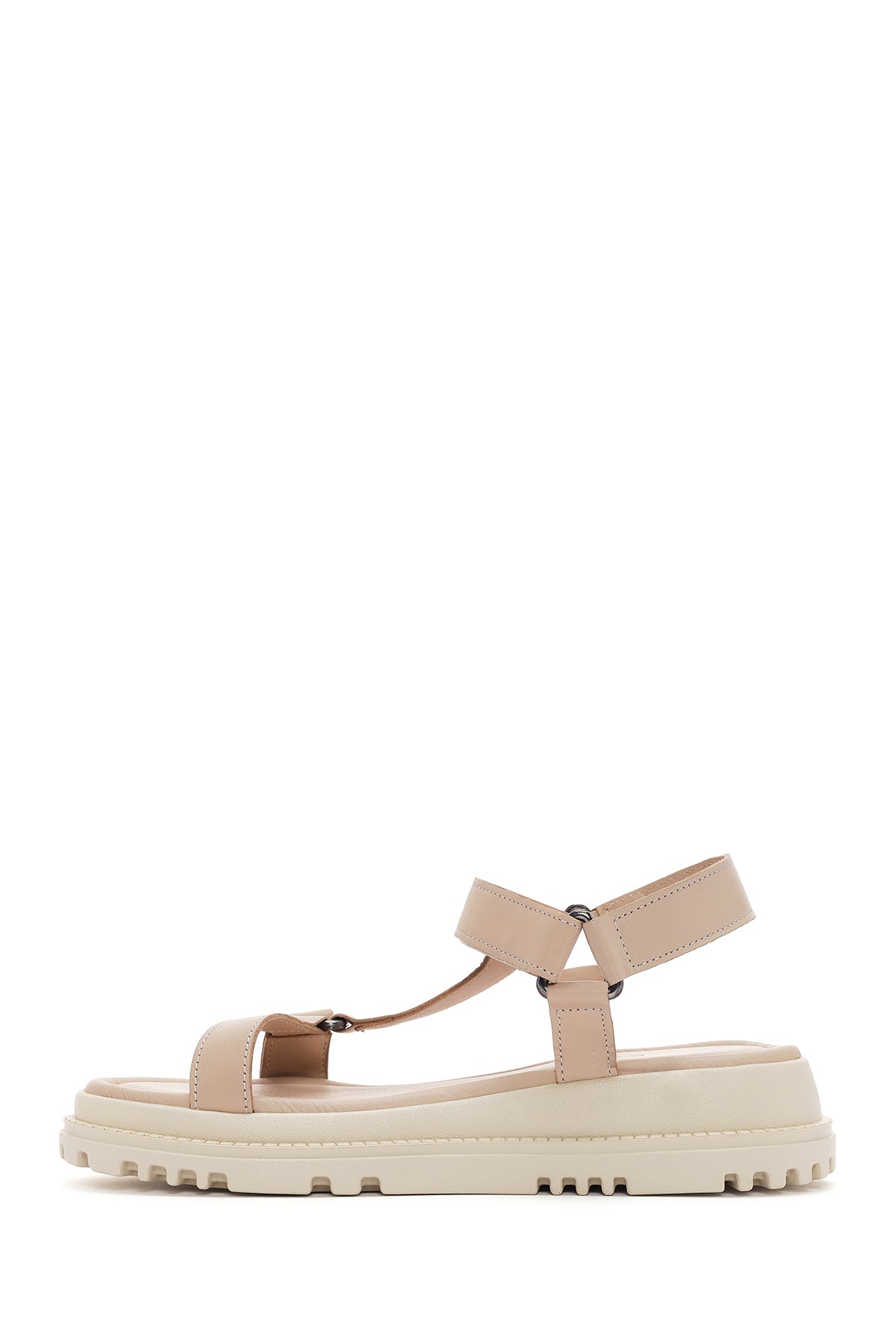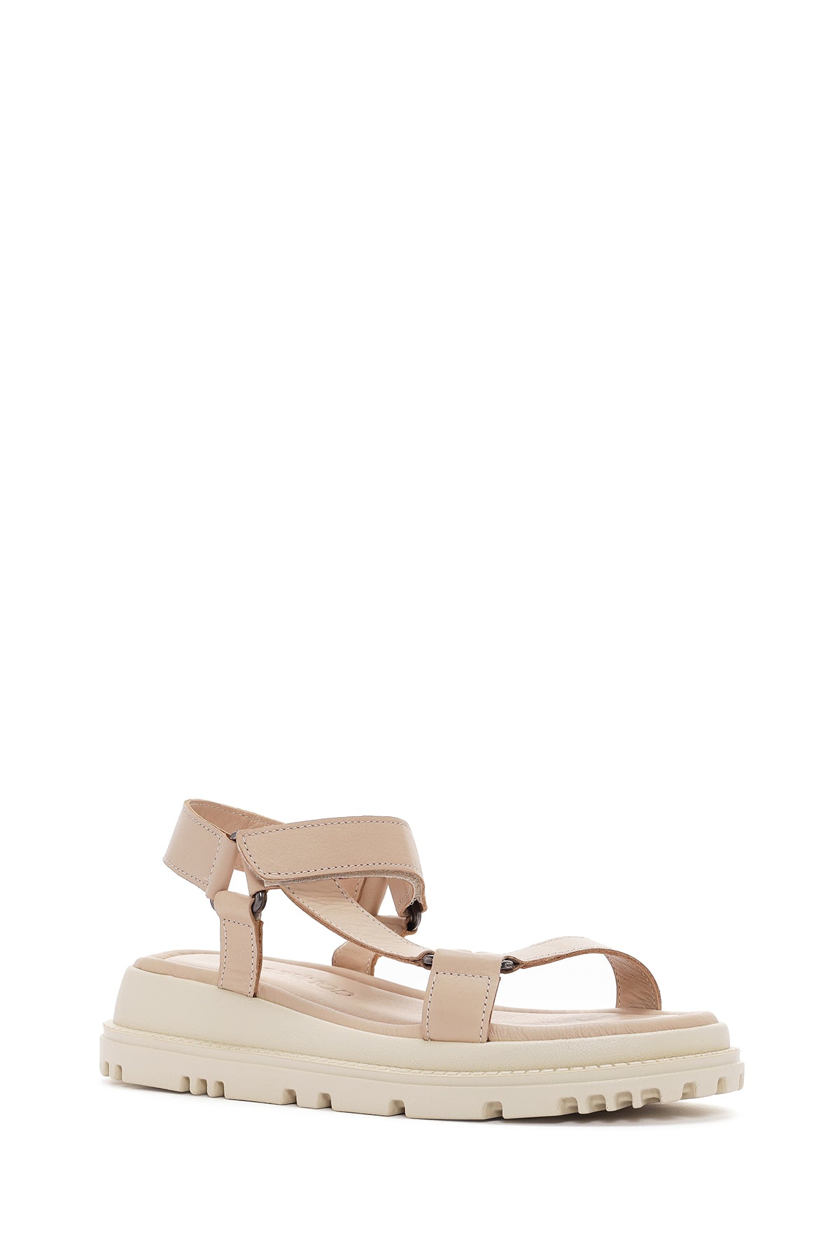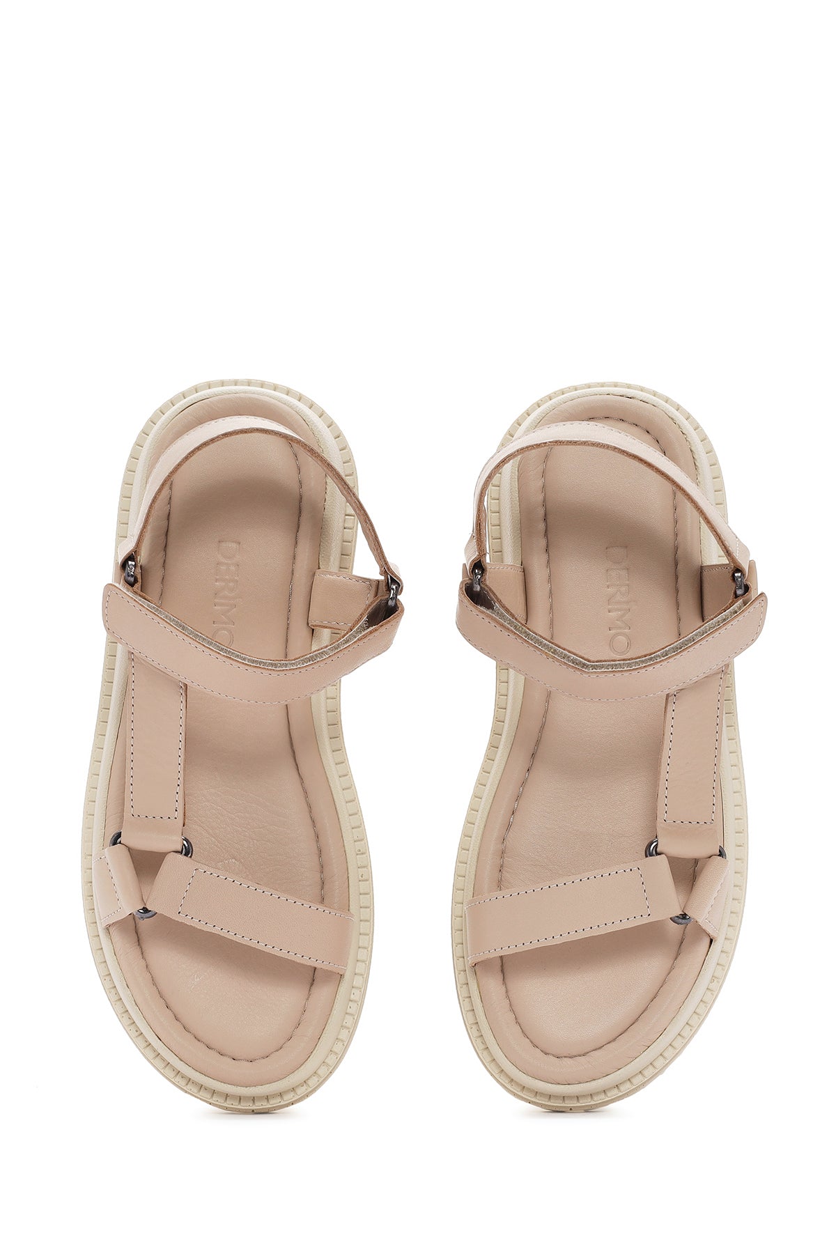 Kadın Bej Bilekten Bantlı Deri Comfort Sandalet