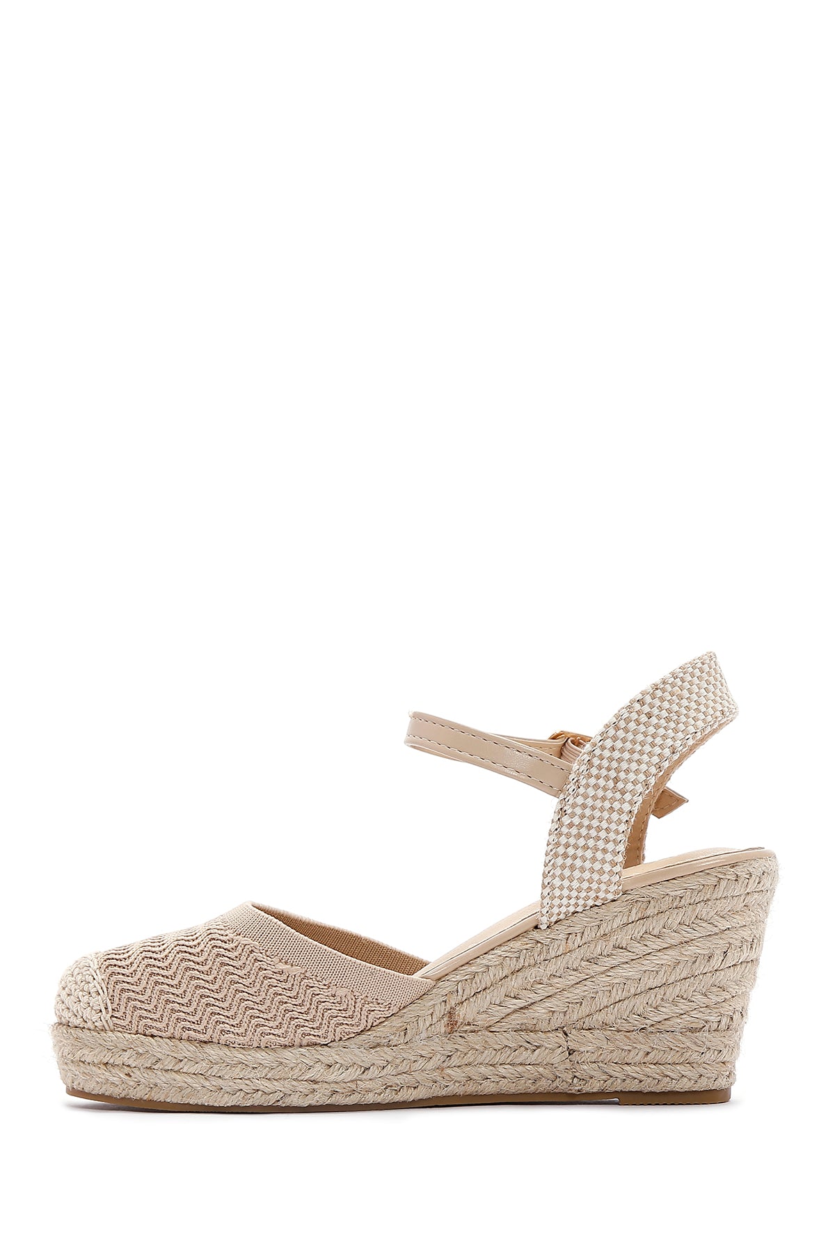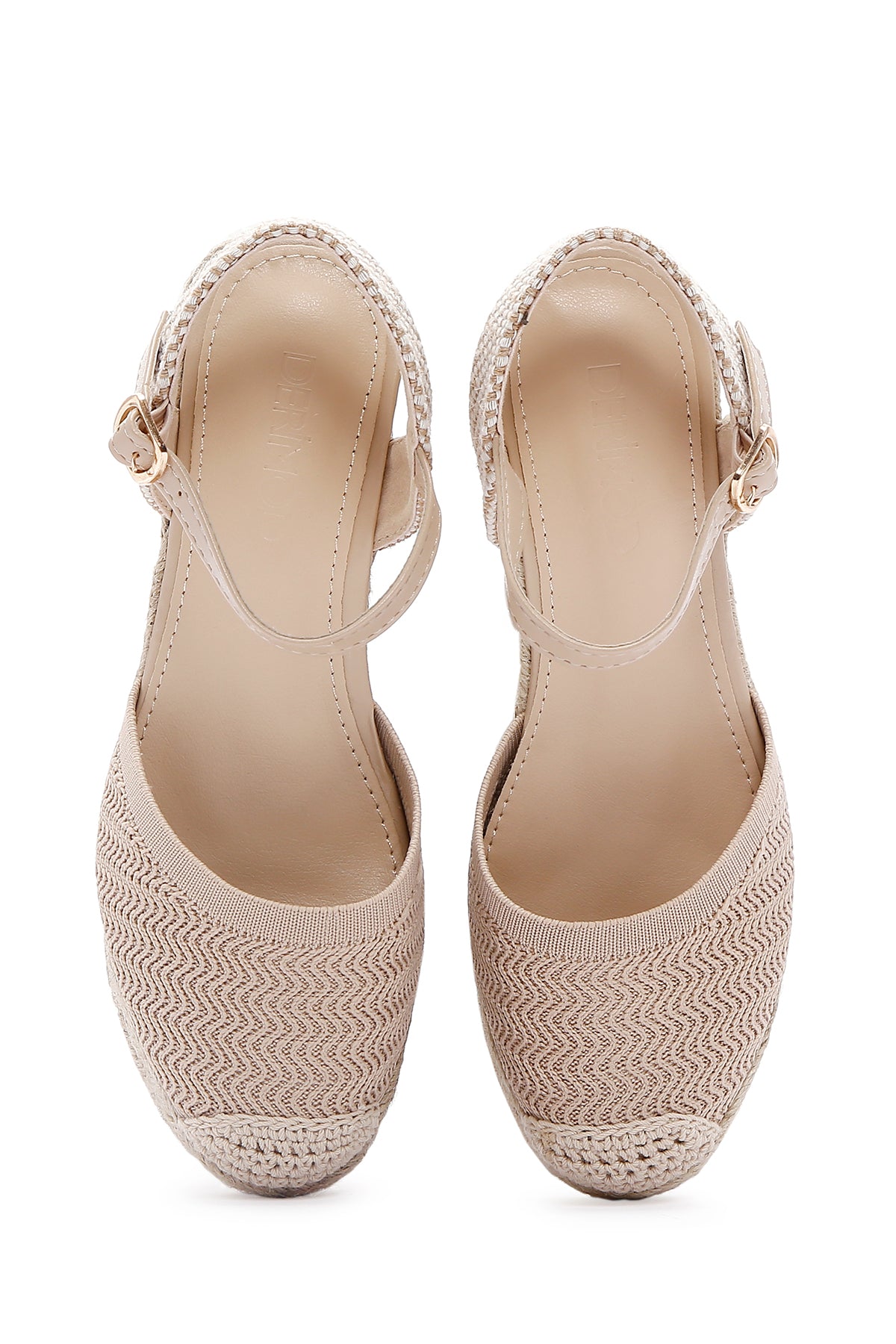 Kadın Bej Bilekten Bantlı Dolgu Topuklu Espadril