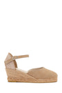 Derimod'un kadın kum rengi bilekten bantlı espadril sandaleti, günlük kullanımdan şehir içi aktivitelere kadar geniş bir kullanım yelpazesi sunan zarif bir tasarım. Süet deri malzemeden üretilen bu kum rengi kadın sandalet, ayağı destekleyen yapısı ile uzun süreli kullanımda konfor sağlıyor. Ürünün bilekten saran bant detayı ve kapalı burun yapısı, ayağa oturan form ile güvenli bir kullanım deneyimi yaşatıyor. Geleneksel hasır taban örgüsü ile 9 cm dolgu topuk yüksekliği, dengeli duruş sağlayan yapı oluşturarak günün her anında stabil adım atma imkanı veriyor. Süet malzemenin yumuşak dokusu ve mat yüzey karakteri, kum kadın sandalet kategorisinde şık bir görünüm yaratıyor. Deri iç astar sayesinde ayağın nefes alabilir yapısı korunurken, hasır taban detayları geleneksel espadril estetiğini modern sandalet tasarımıyla buluşturuyor. Bilekten bantlı kapanış detayı ile ayak bileğini saran form, ayakkabının ayakta sabit kalmasını sağlıyor. Platform dolgu yapısı sayesinde yükseklik kazandırırken yürüyüş konforunu koruyan bu sandalet, farklı kombinlerle uyum sağlayan yapı gösteriyor. Espadril taban dokusunun doğal karakteri ve süet deri yüzeyin dayanıklılığı, günlük kullanımda uzun ömürlü bir aksesuar haline getiriyor. Kum rengi tonunun nötr karakteri, çeşitli kıyafet stilleriyle kolayca eşleştirilebilen çok yönlü bir sandalet deneyimi sunuyor. Ürün kodu: 26SFD205810