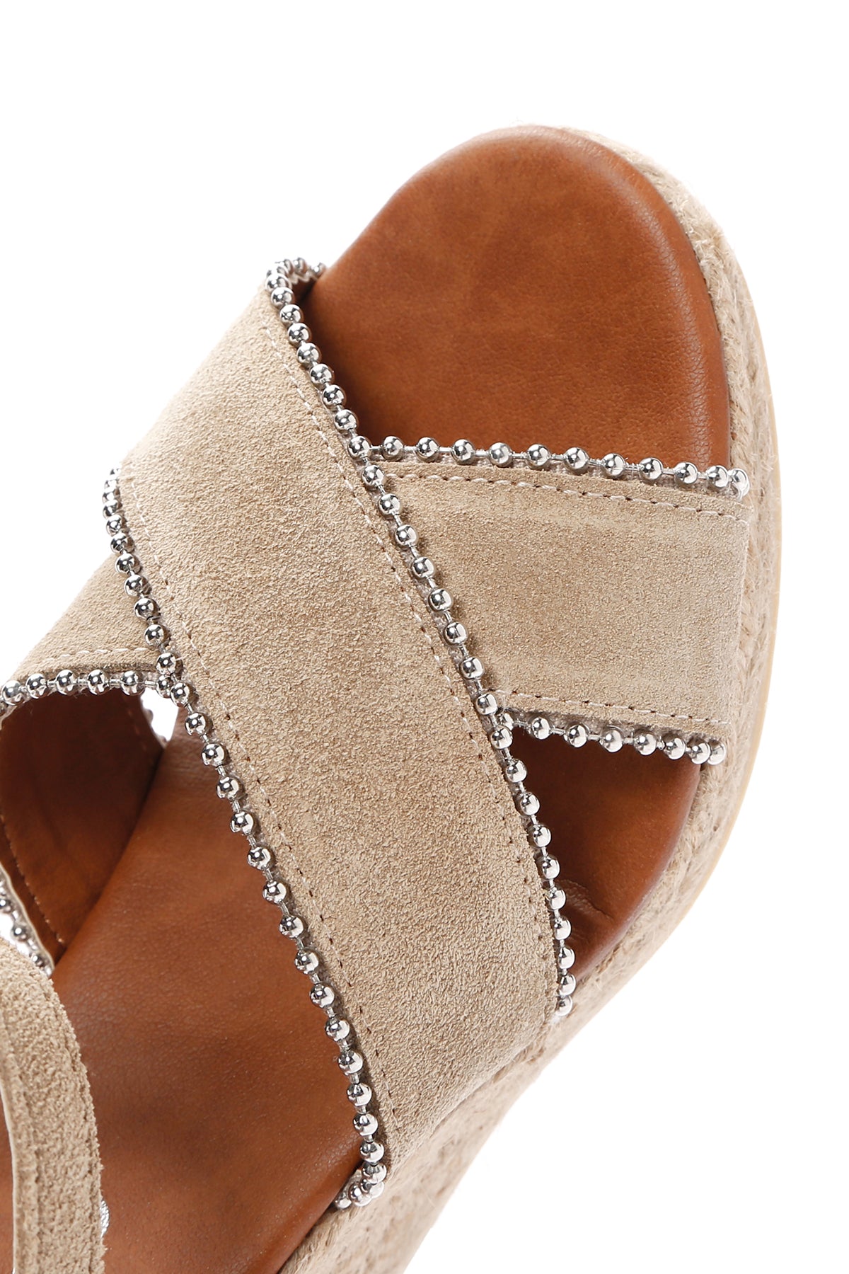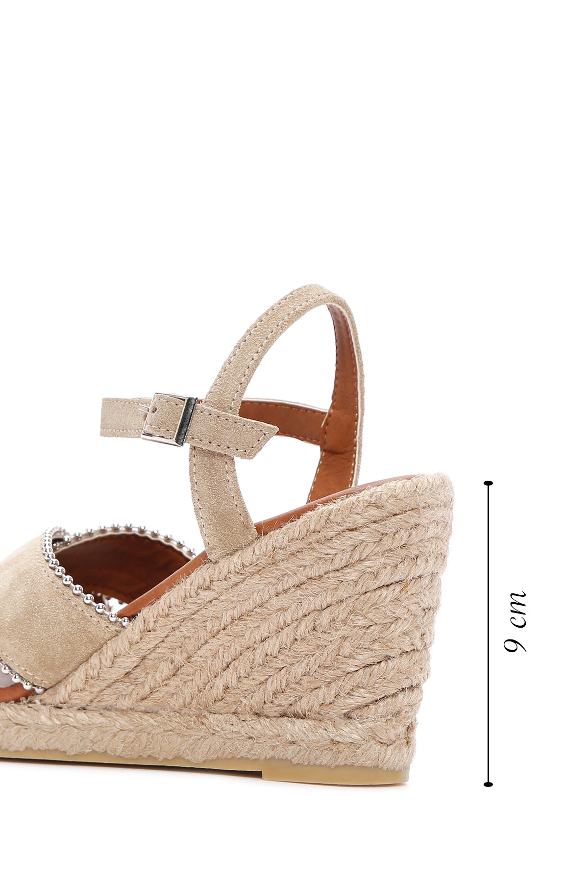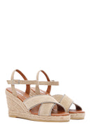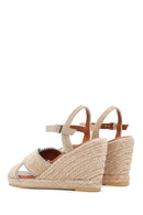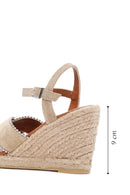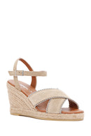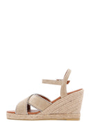 Kadın Bej Bilekten Bantlı Dolgu Topuklu Süet Deri Sandalet