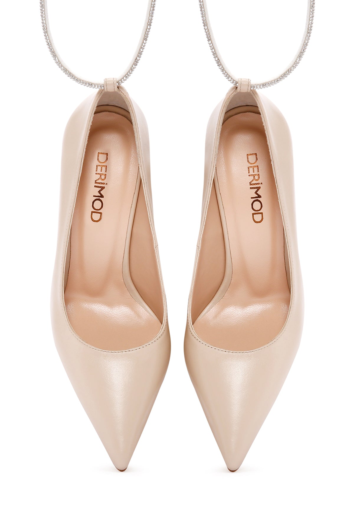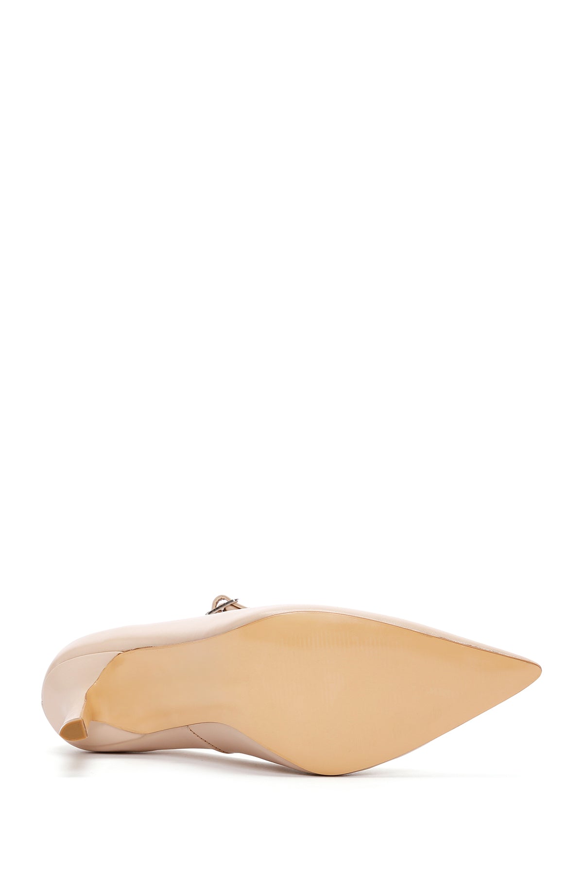 Kadın Bej Bilekten Bantlı İnce Topuklu Deri Stiletto