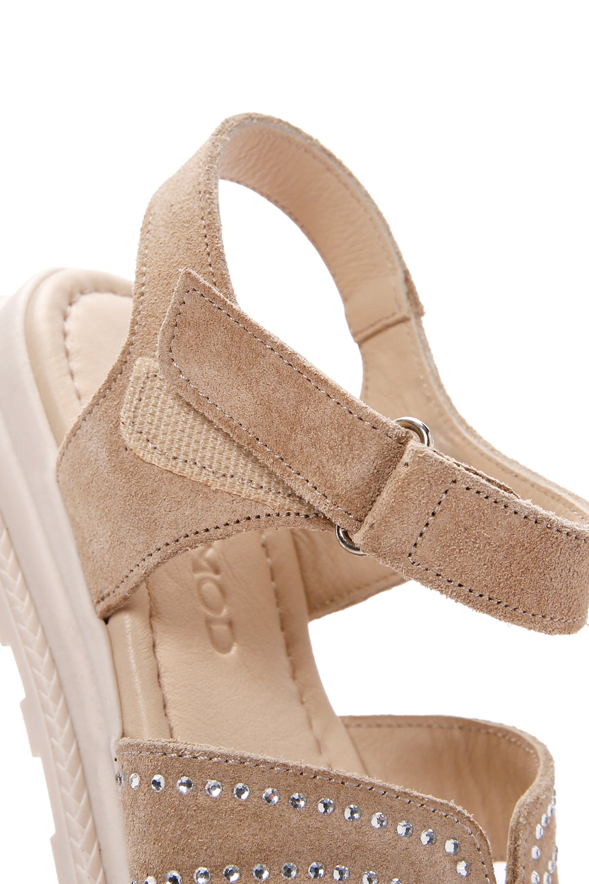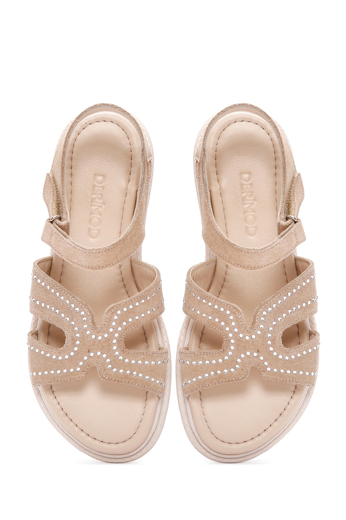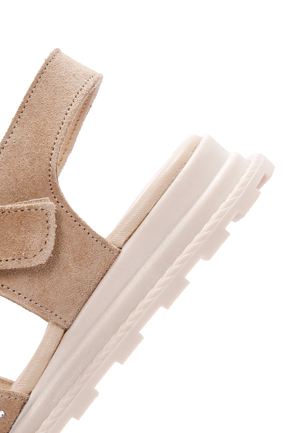Kadın Bej Bilekten Bantlı Süet Deri Sandalet