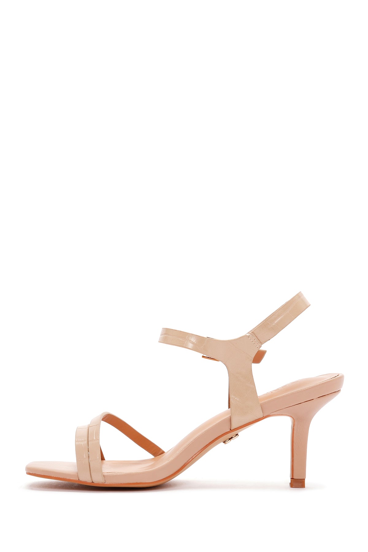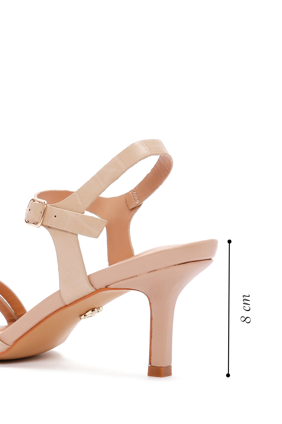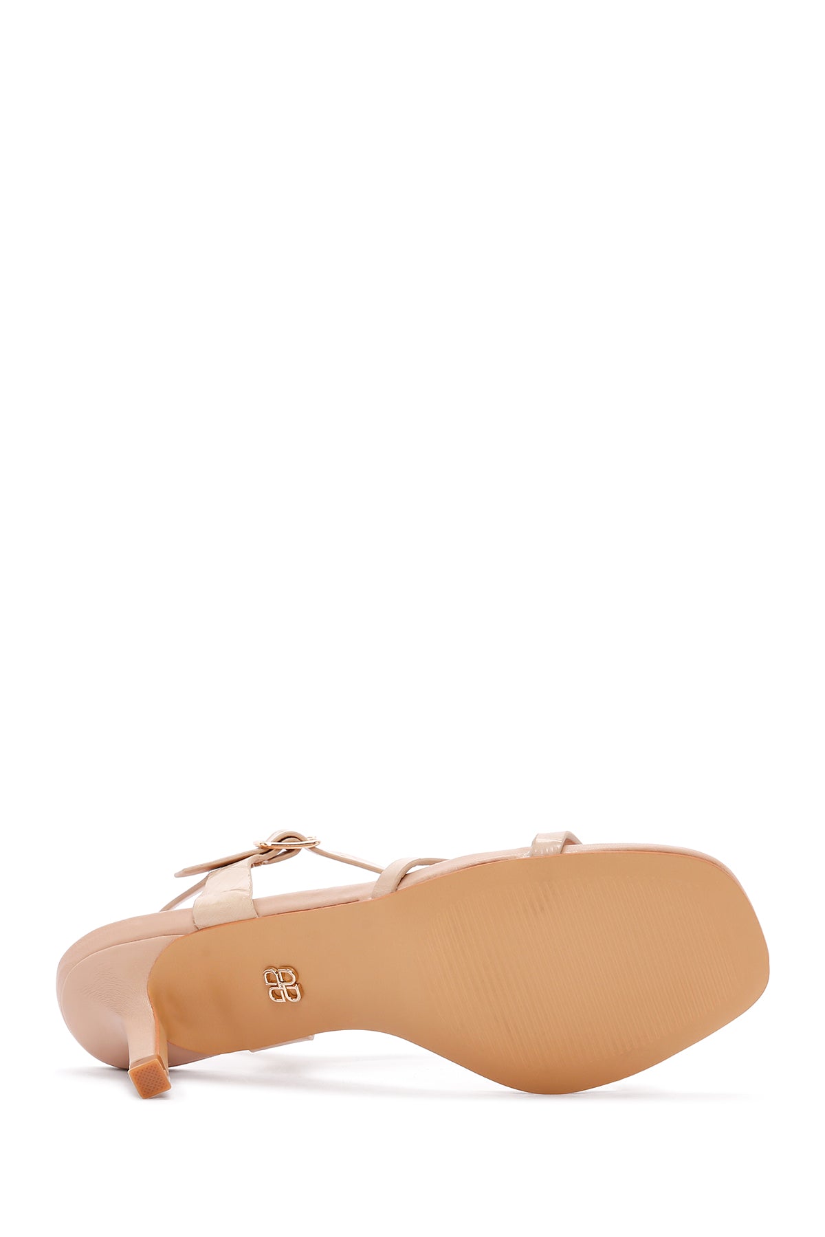 Kadın Bej Bilekten Bantlı Topuklu Sandalet
