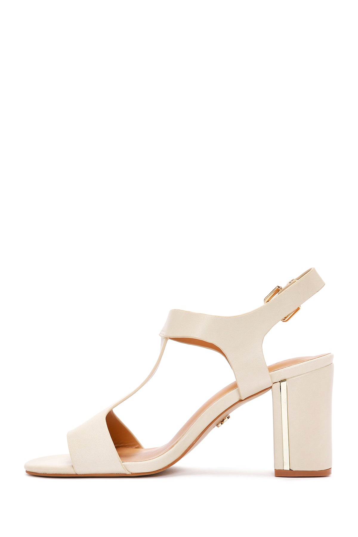 Kadın Bej Bilekten Bantlı Topuklu Sandalet