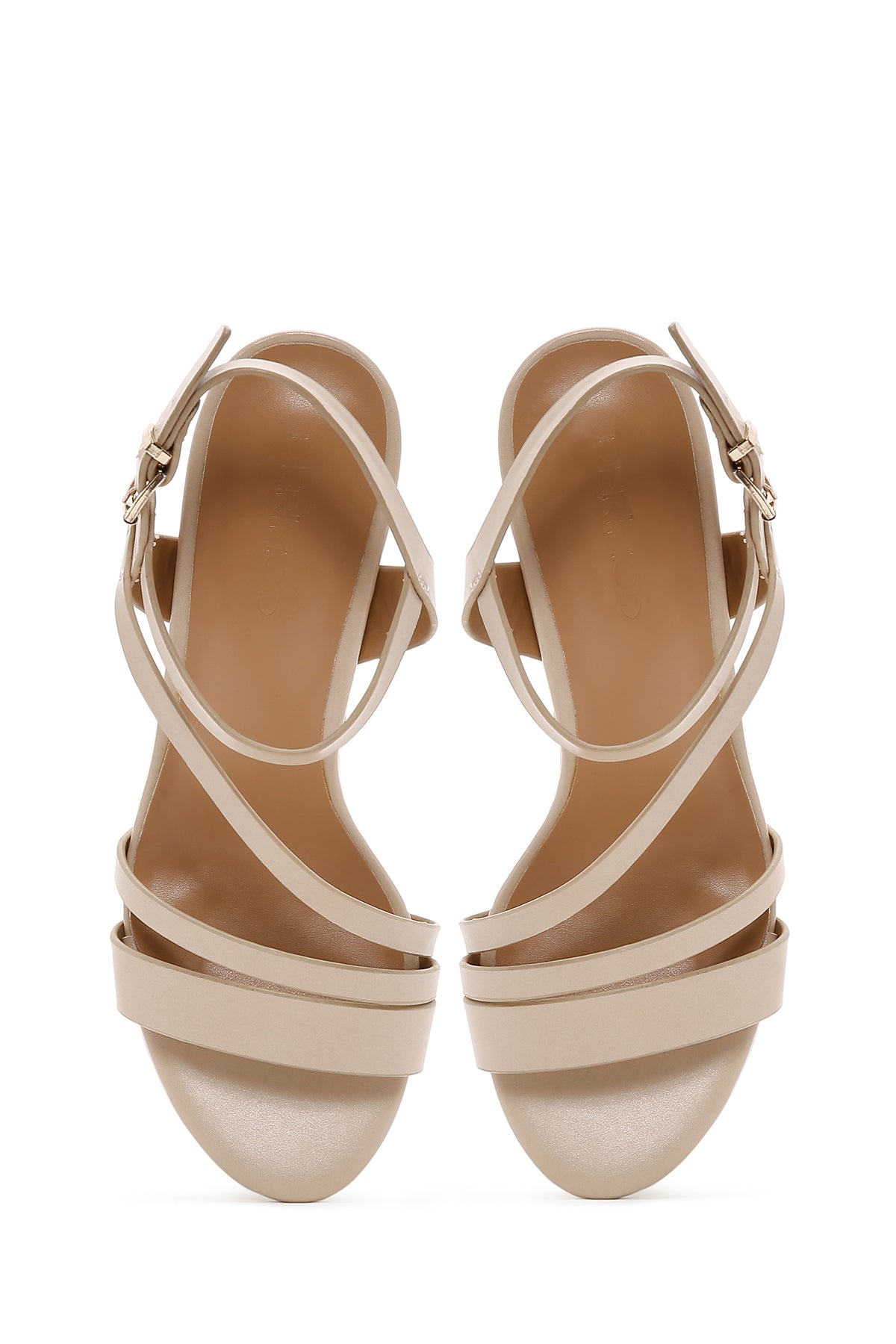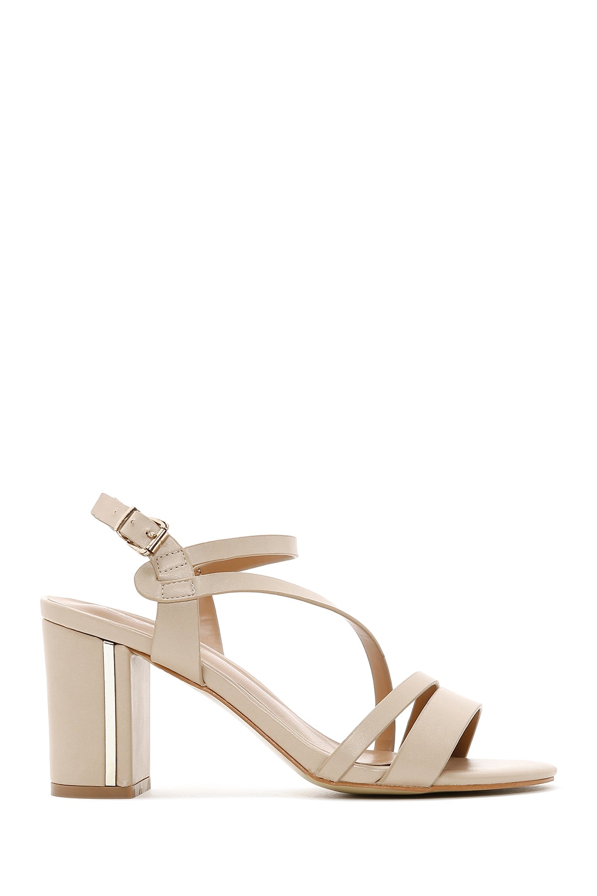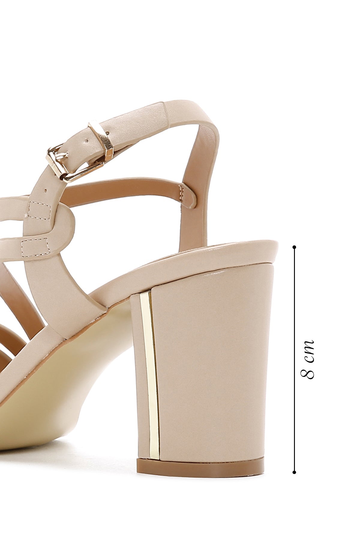 Kadın Bej Bilekten Bantlı Topuklu Sandalet
