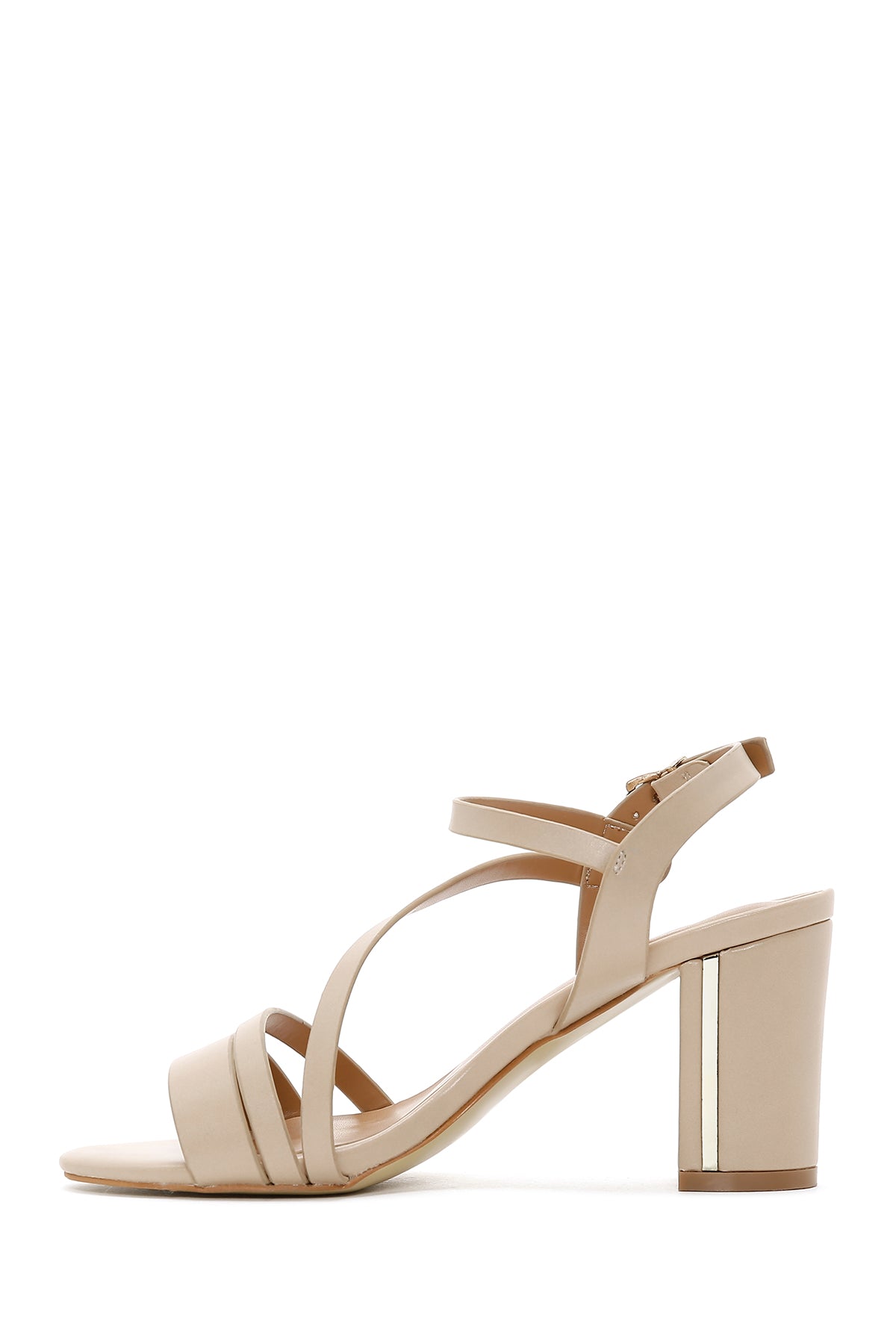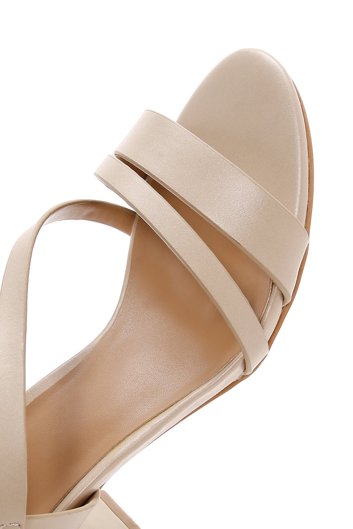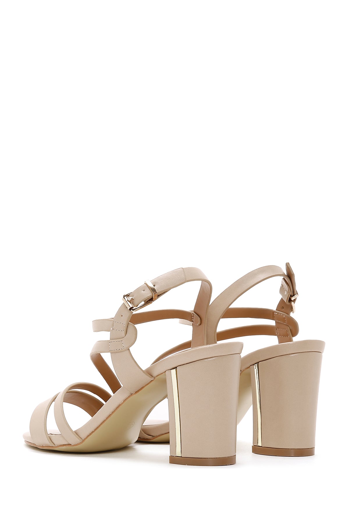 Kadın Bej Bilekten Bantlı Topuklu Sandalet