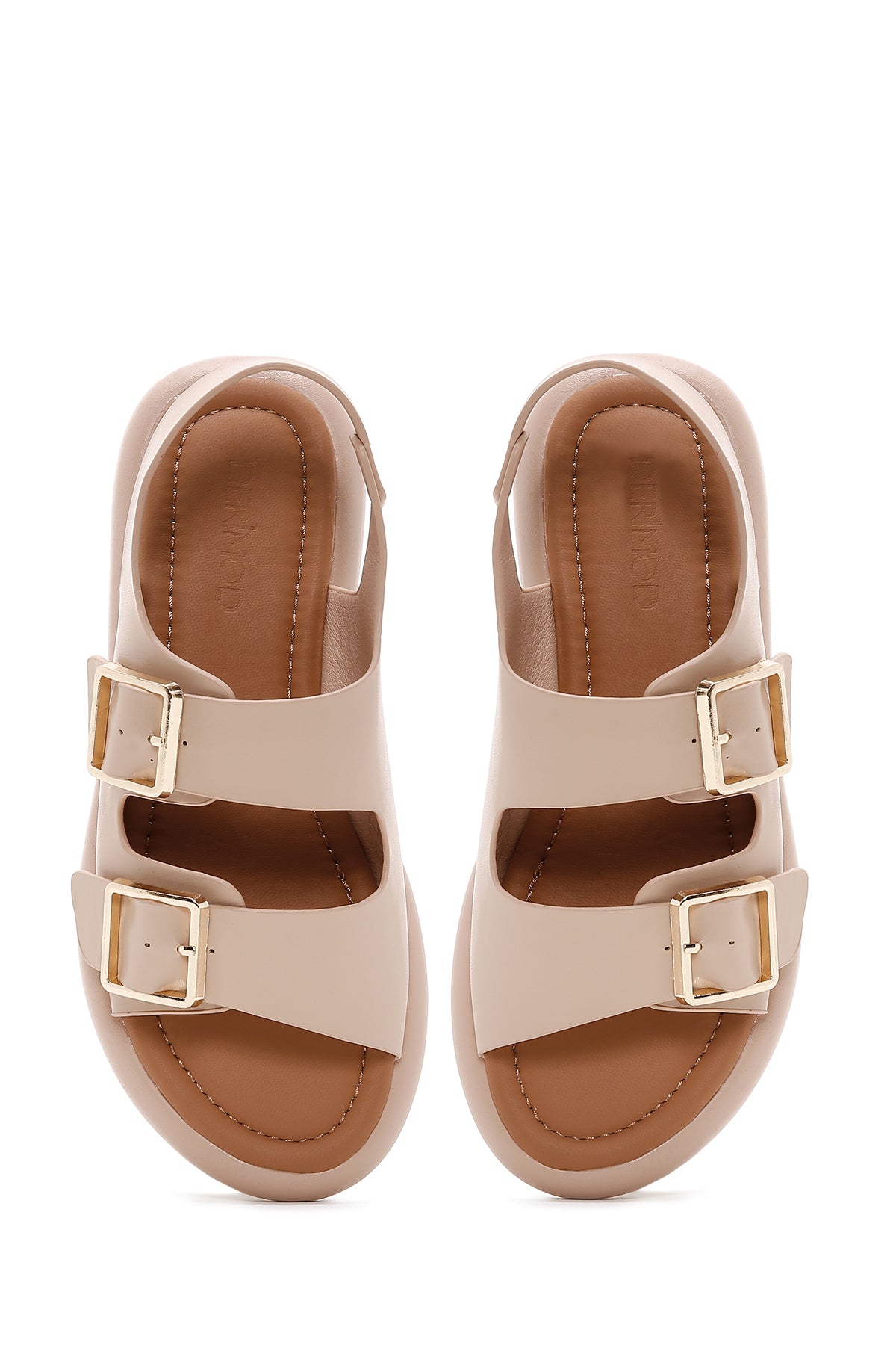 Kadın Bej Çift Tokalı Comfort Sandalet