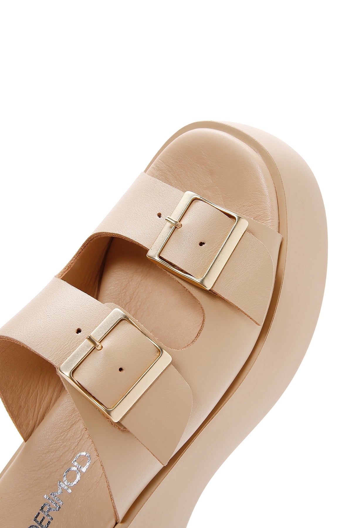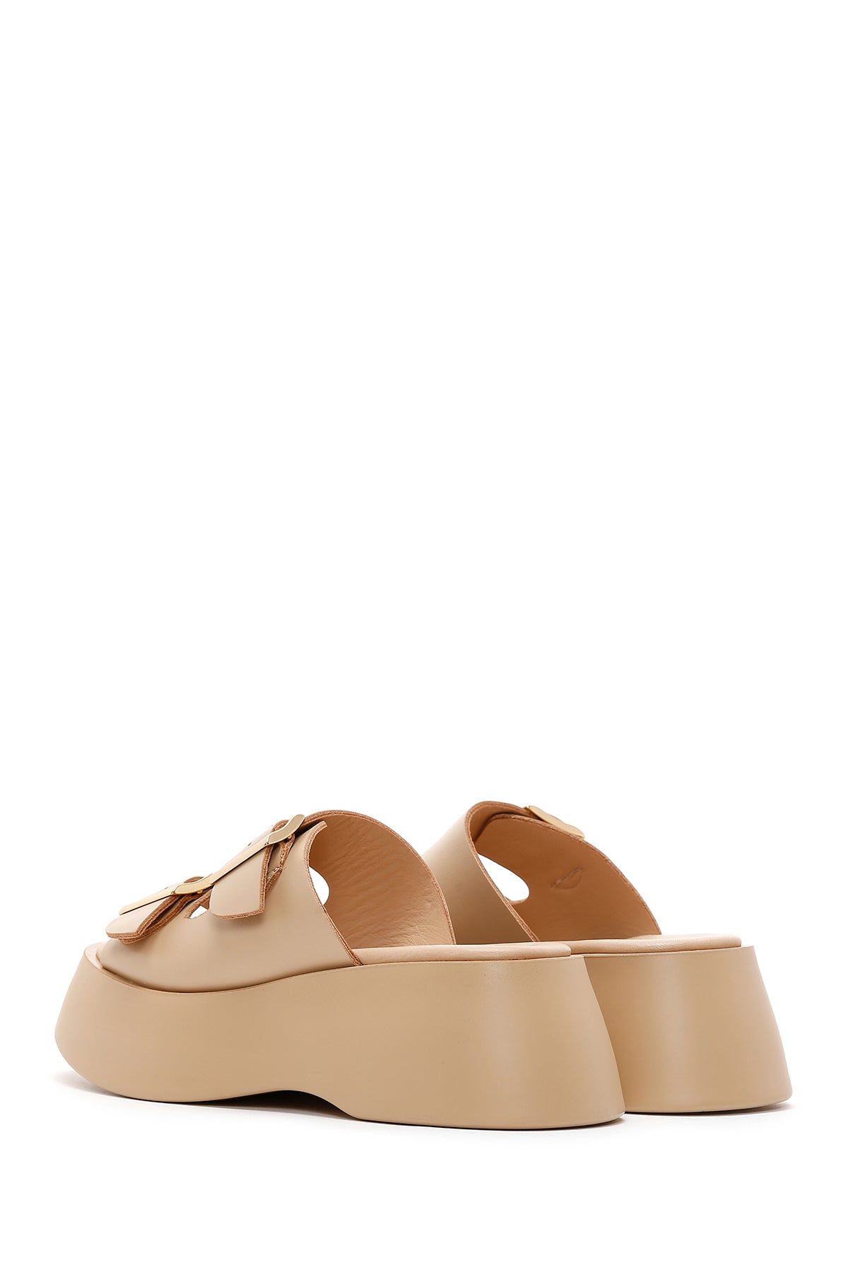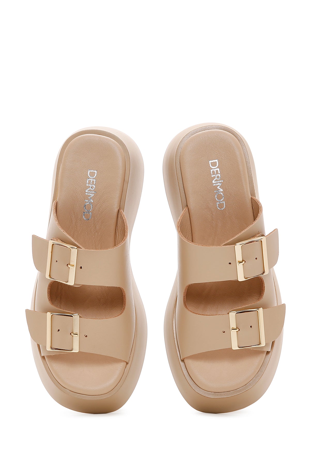 Derimod’un Zarif ve Şıklığı bir arada sunan Kadın Bej Deri Çift Tokalı Kalın Tabanlı Terlik ile tarzınızı konuşturun. Ürünün kodu: 23SFD152518 6F