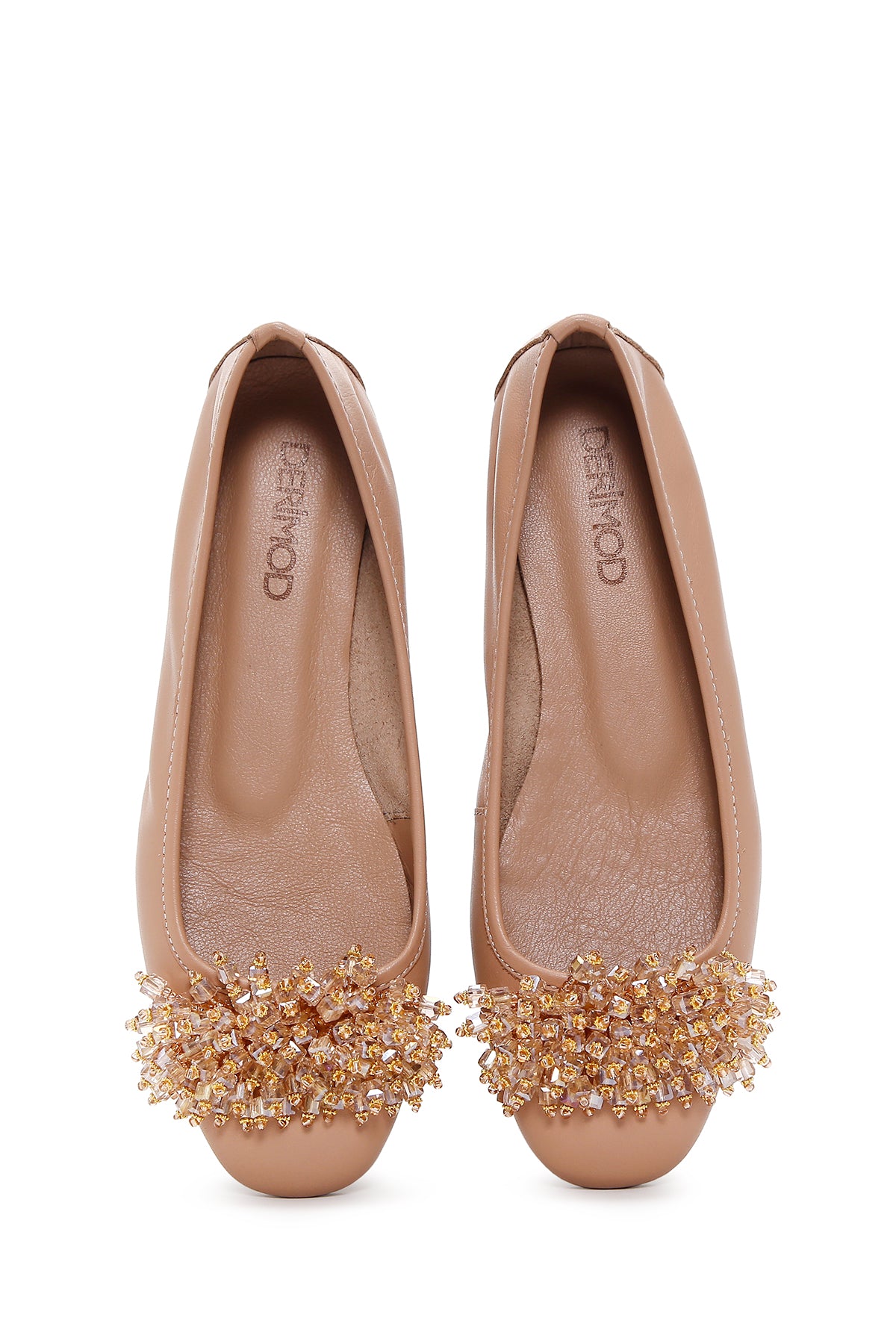 Derimod’un Zarif ve Şıklığı bir arada sunan Kadın Bej Deri Taşlı Babet ile tarzınızı konuşturun. Ürünün kodu: 23SFD270318 TN