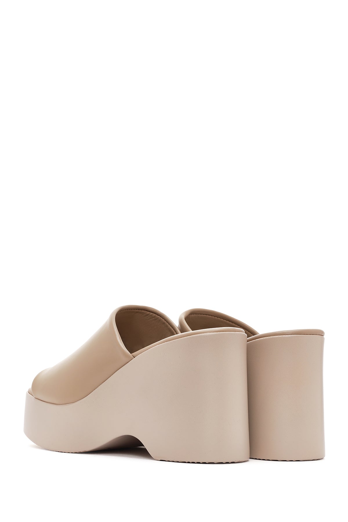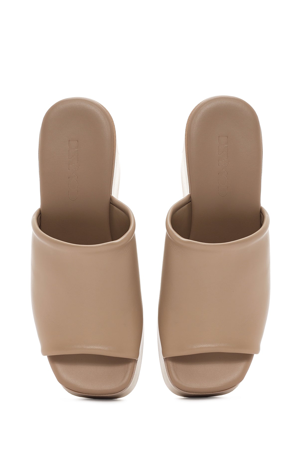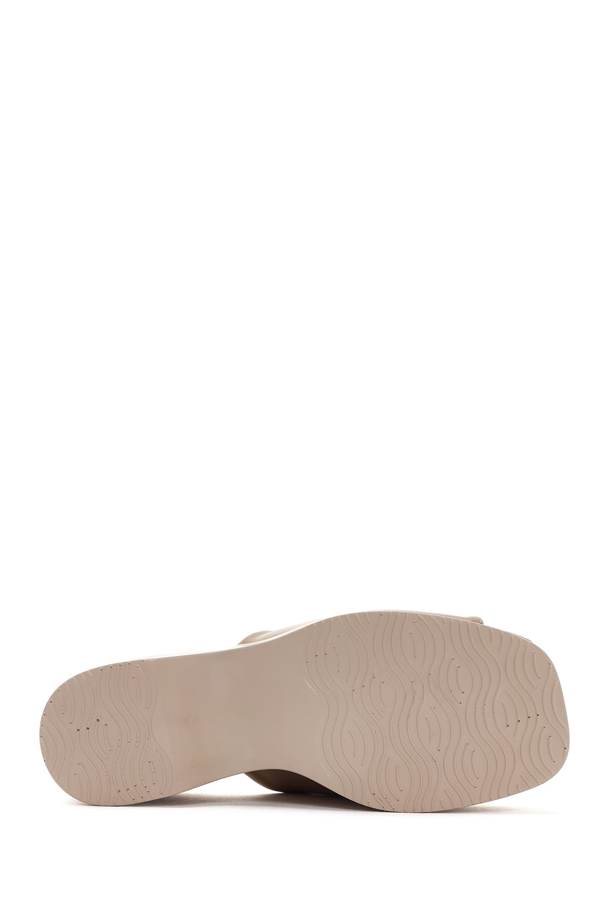 Kadın Bej Dolgu Topuklu Deri Terlik