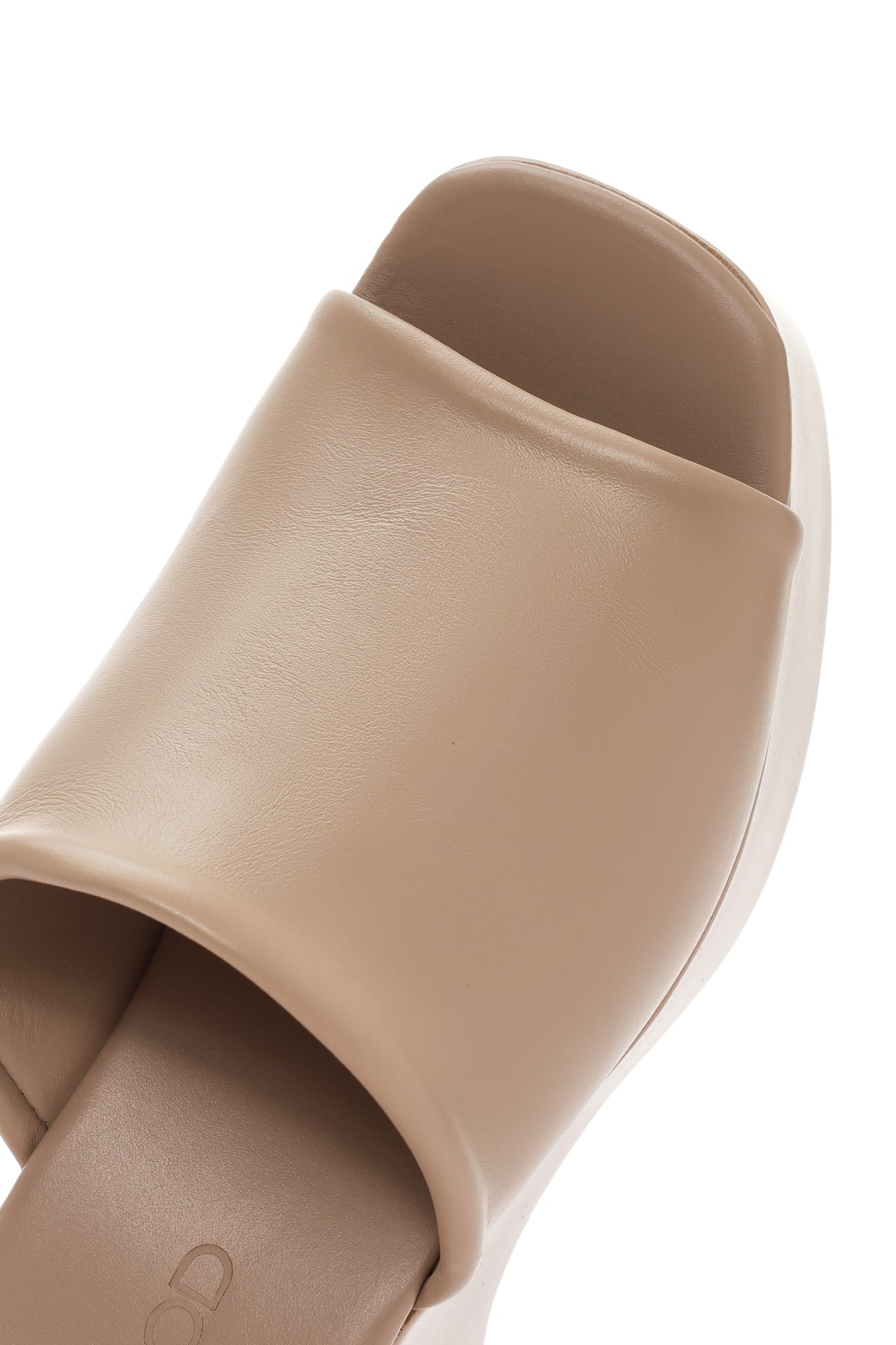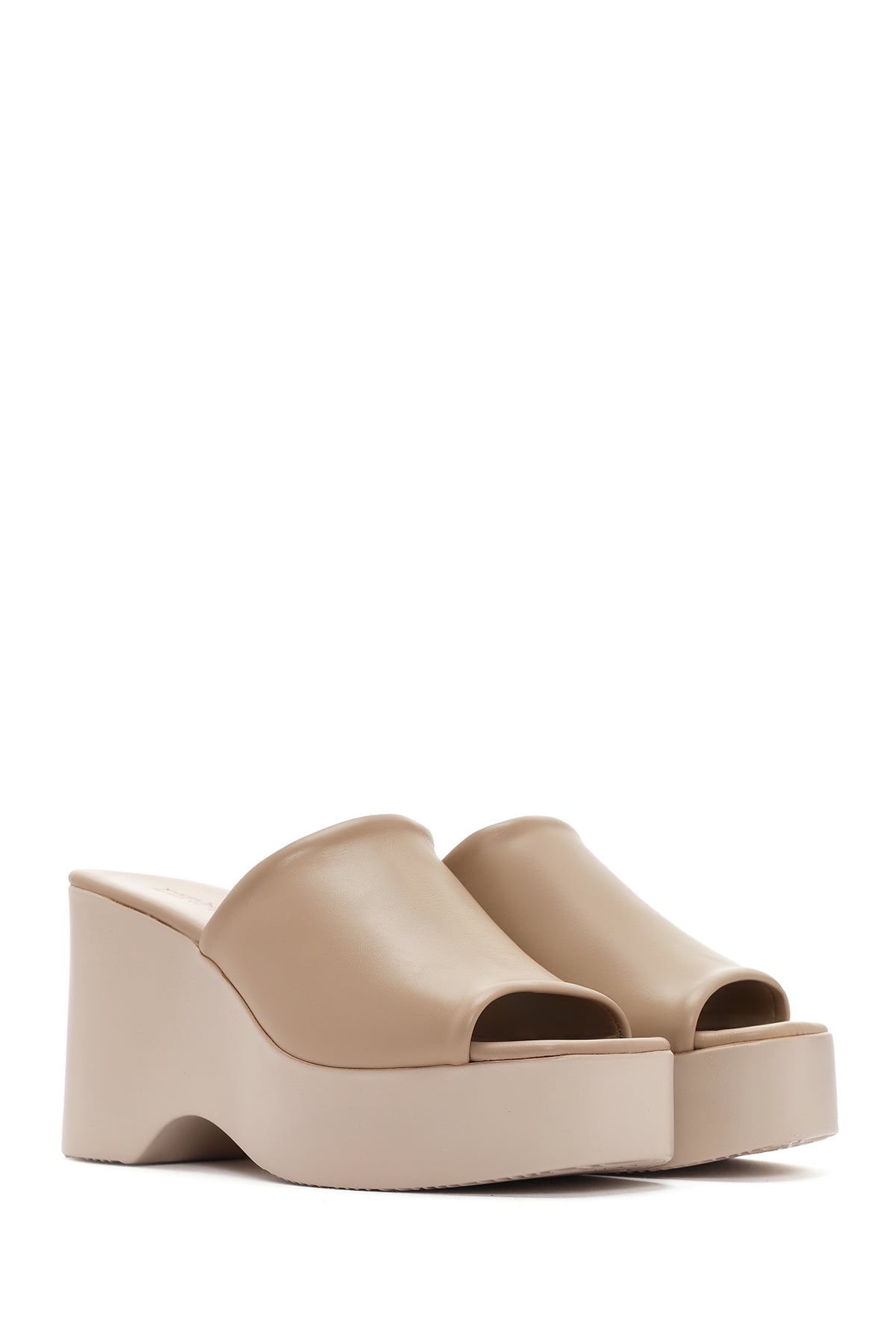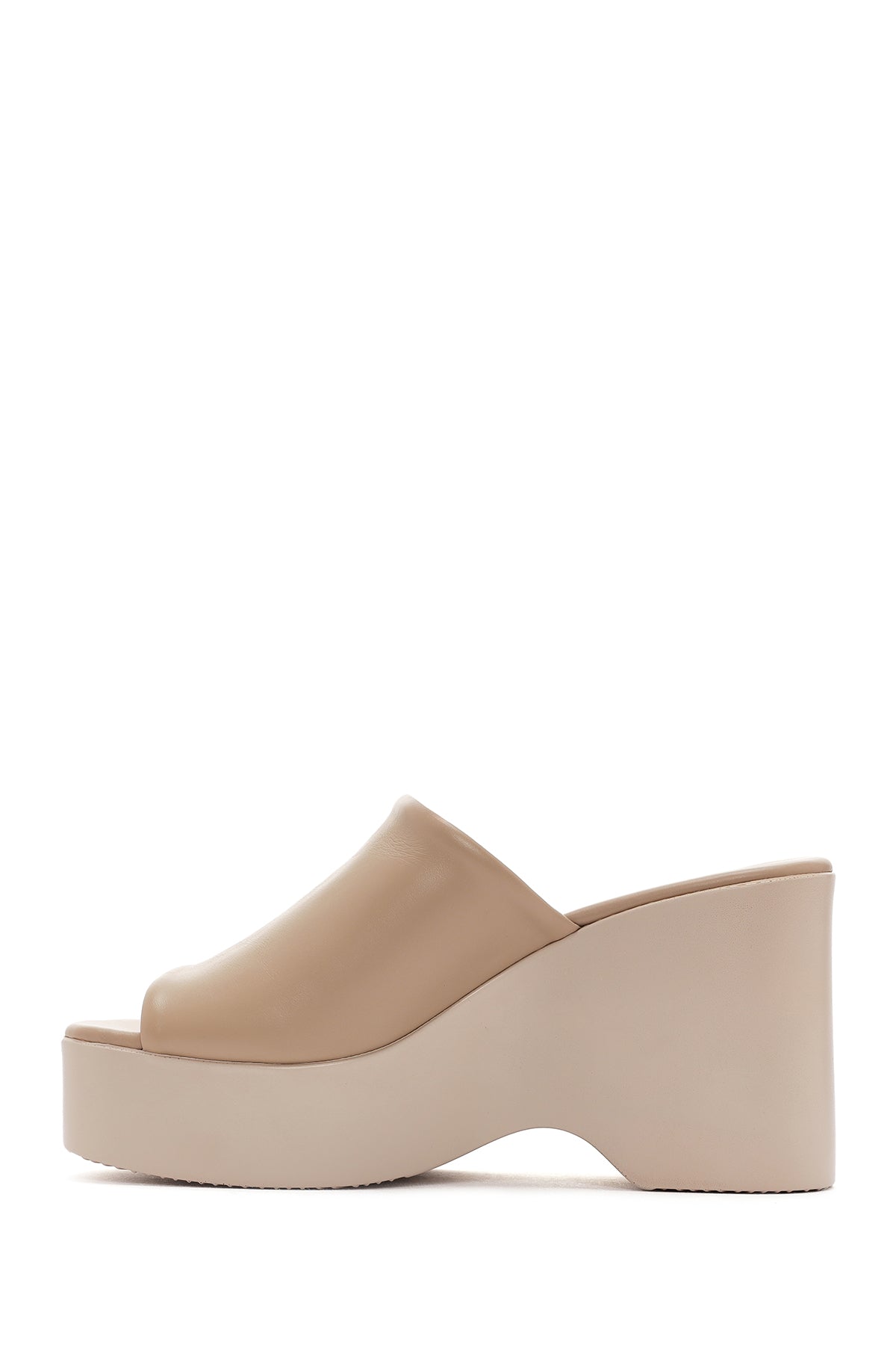 Kadın Bej Dolgu Topuklu Deri Terlik