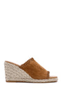 Kadın Bej Dolgu Topuklu Süet Deri Espadril Terlik