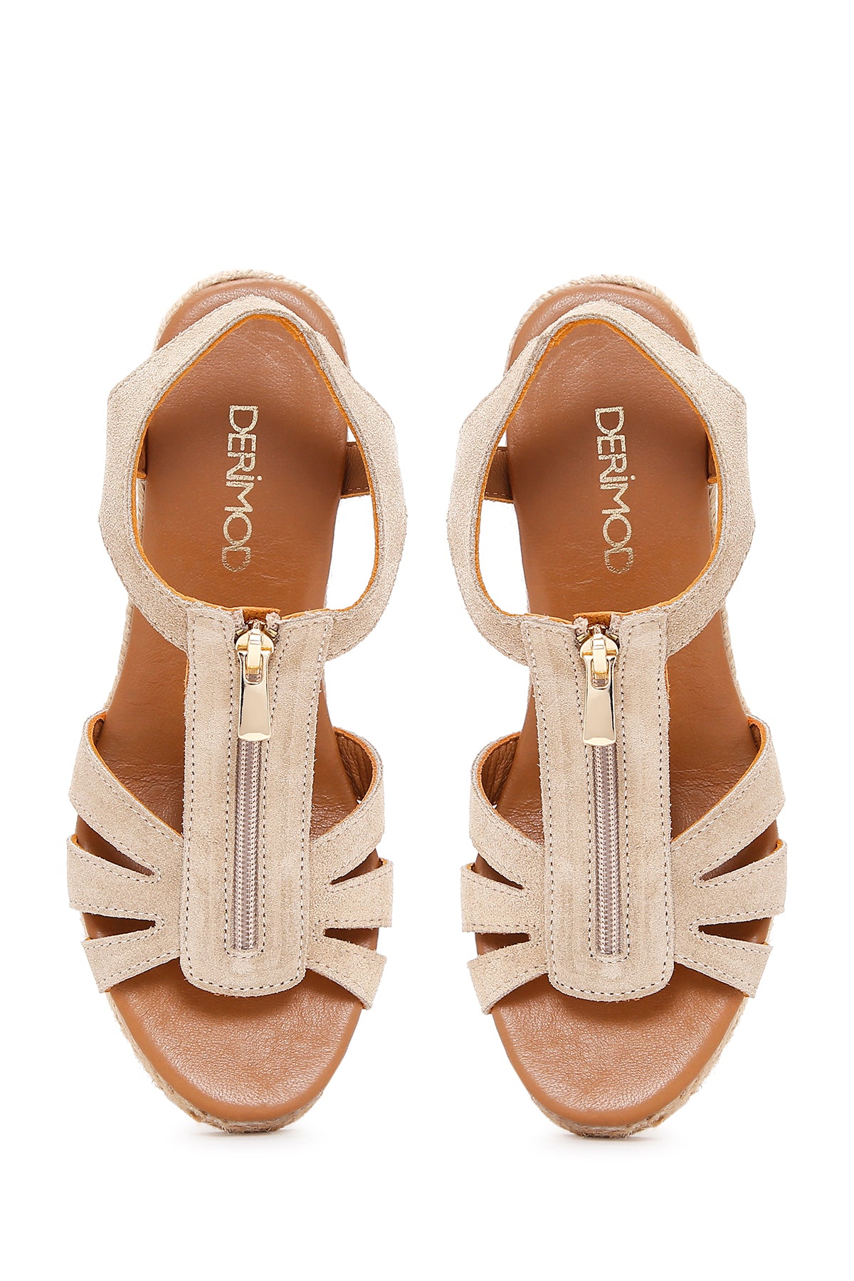 Kadın Bej Fermuarlı Dolgu Topuklu Süet Deri Espadril
