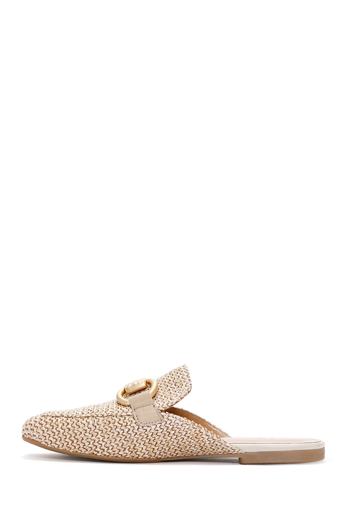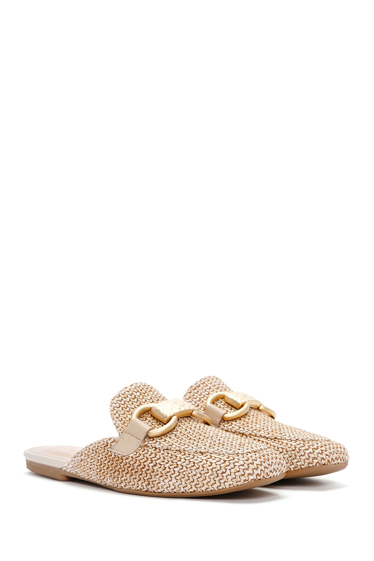 Kadın Bej Hasır Deri Terlik