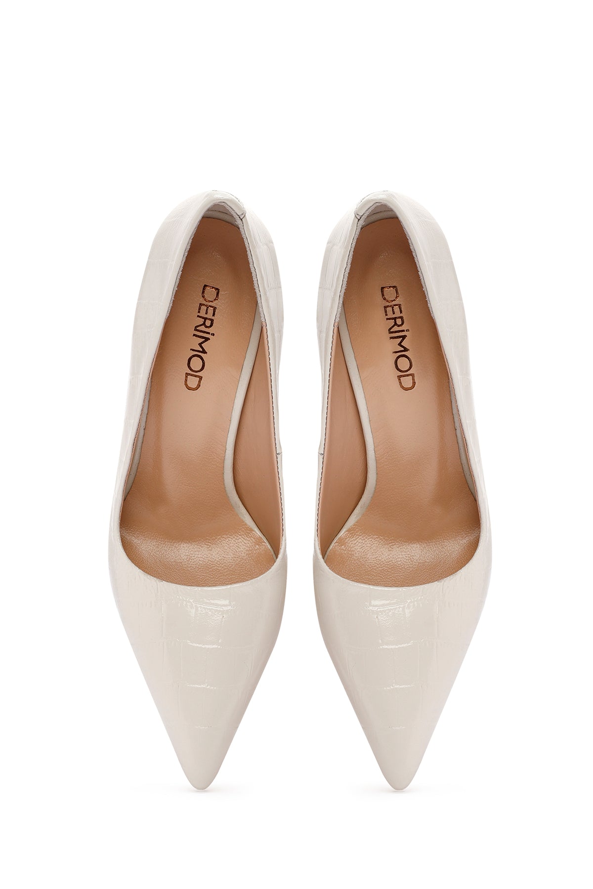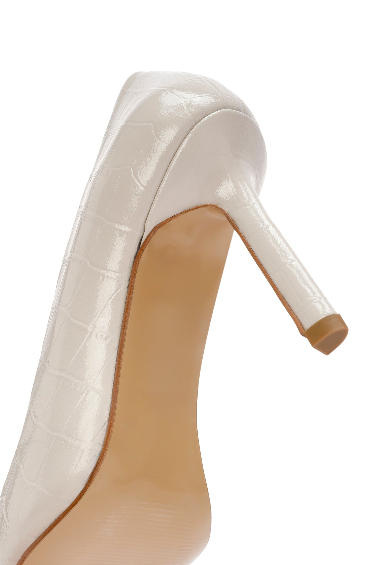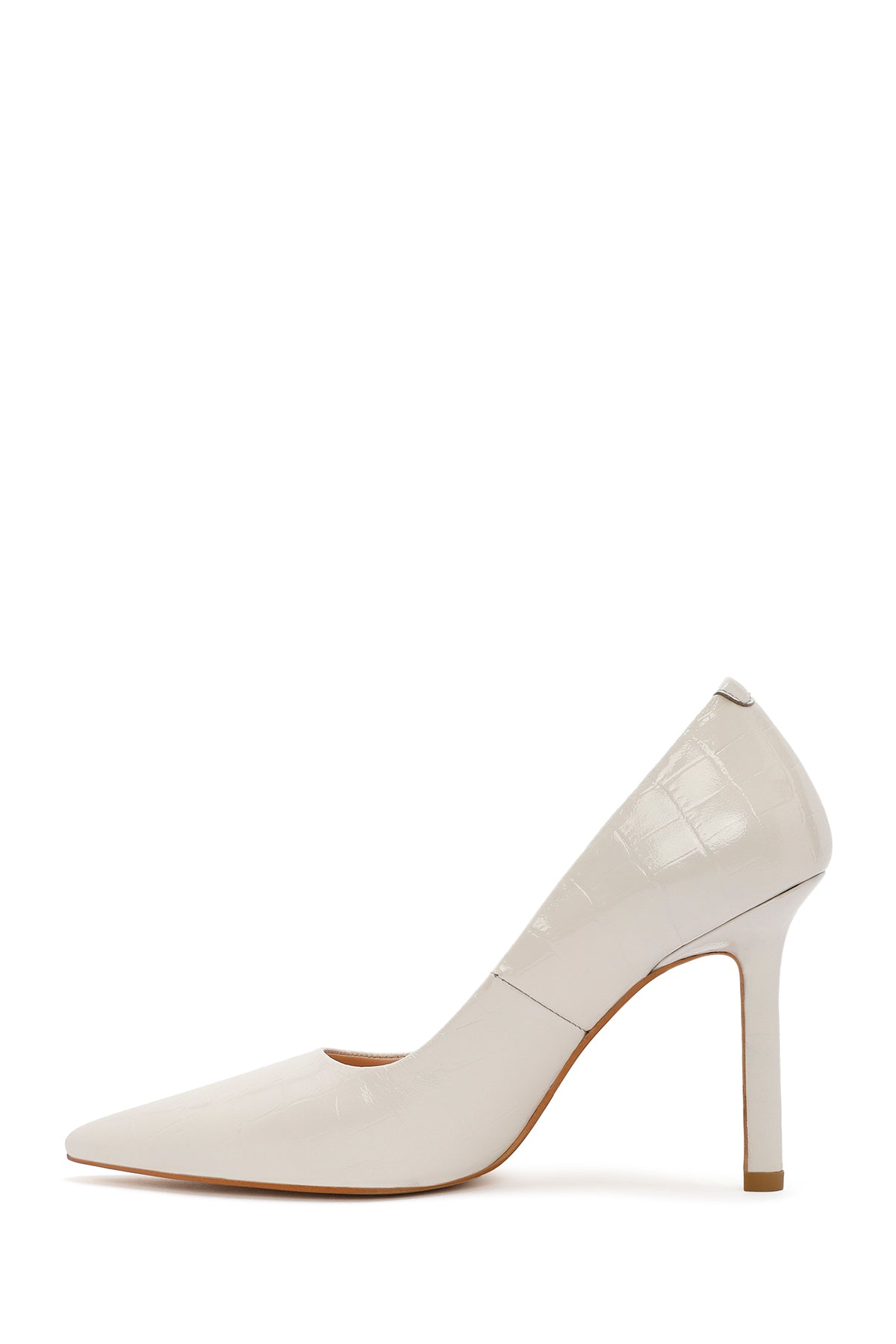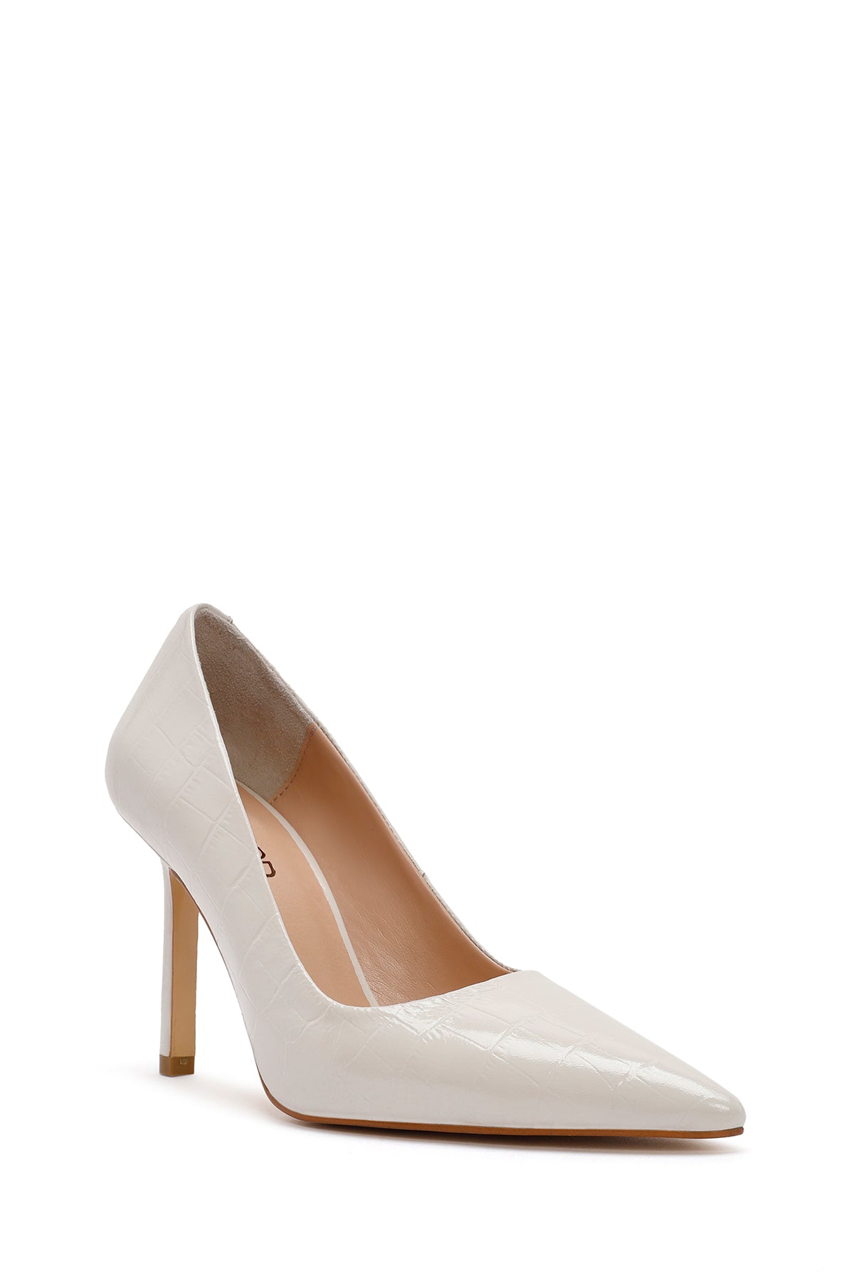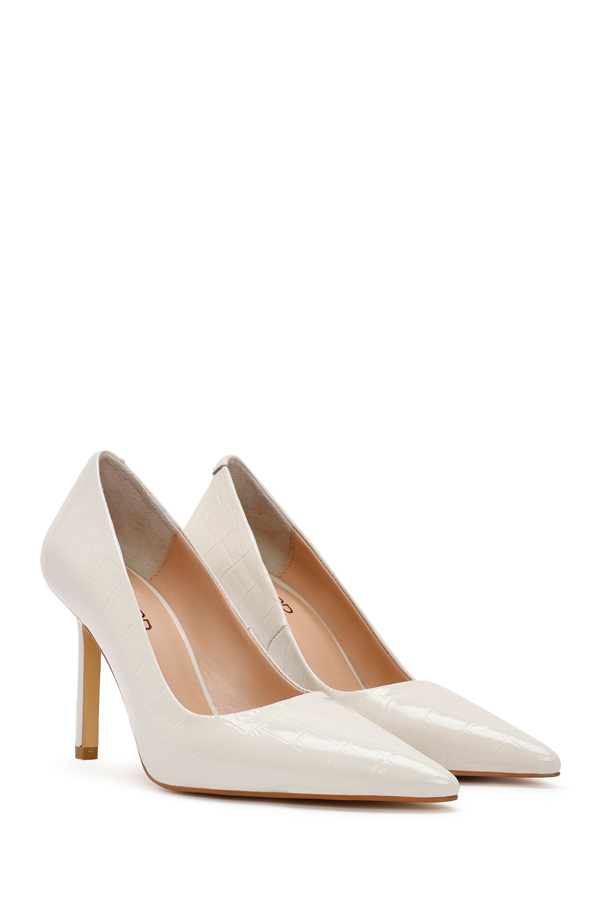 Kadın Bej İnce Topuklu Kroko Desenli Deri Stiletto