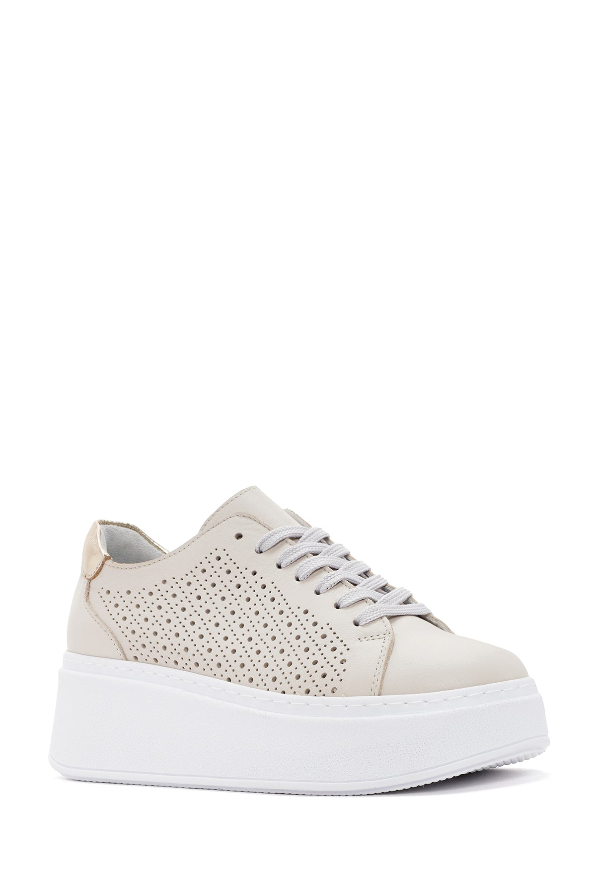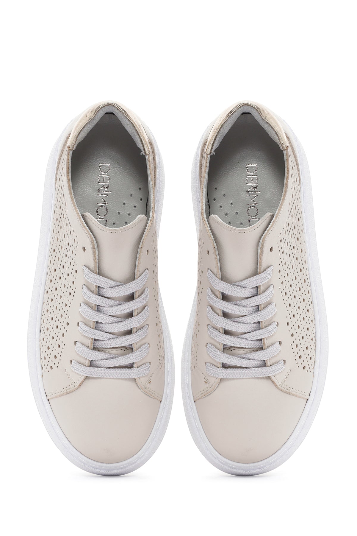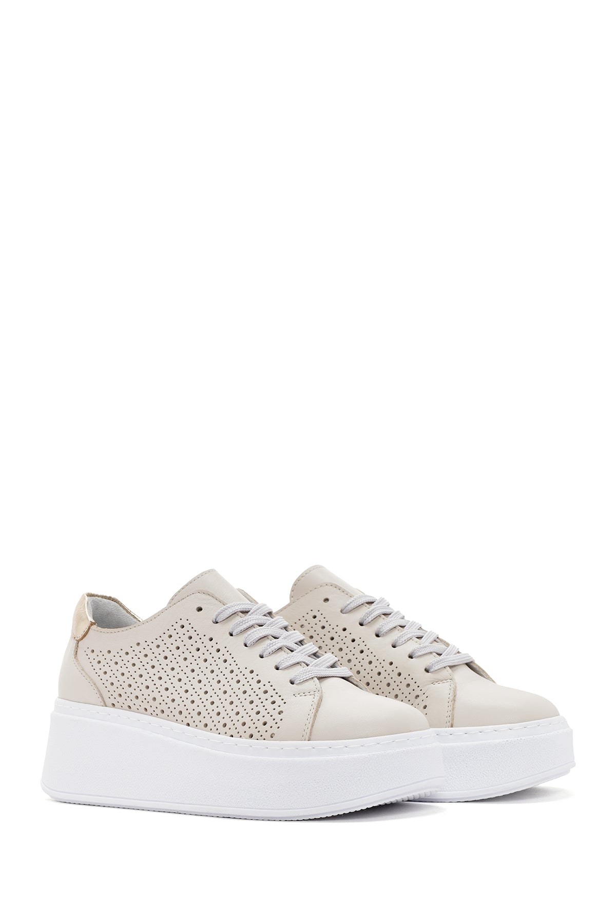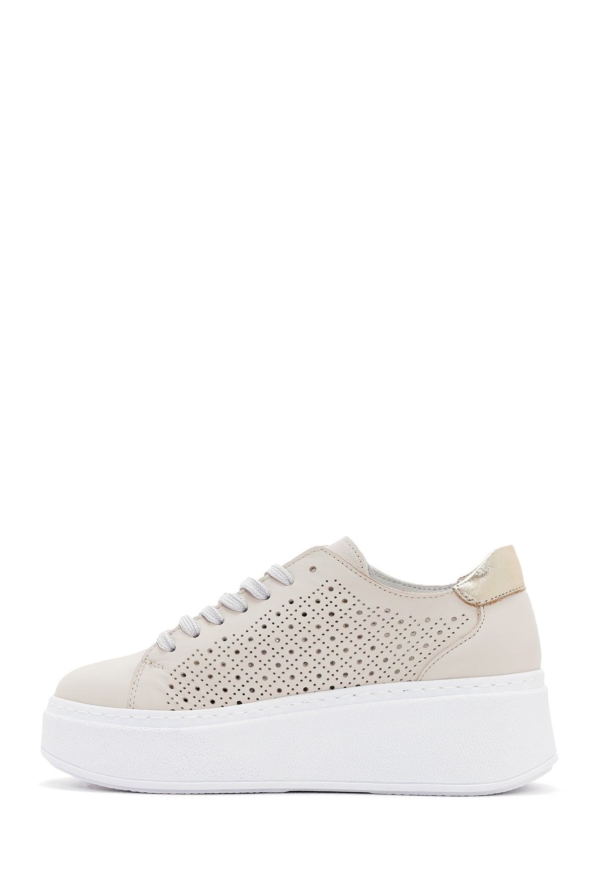 Kadın Bej Kalın Tabanlı Bağcıklı Deri Sneaker