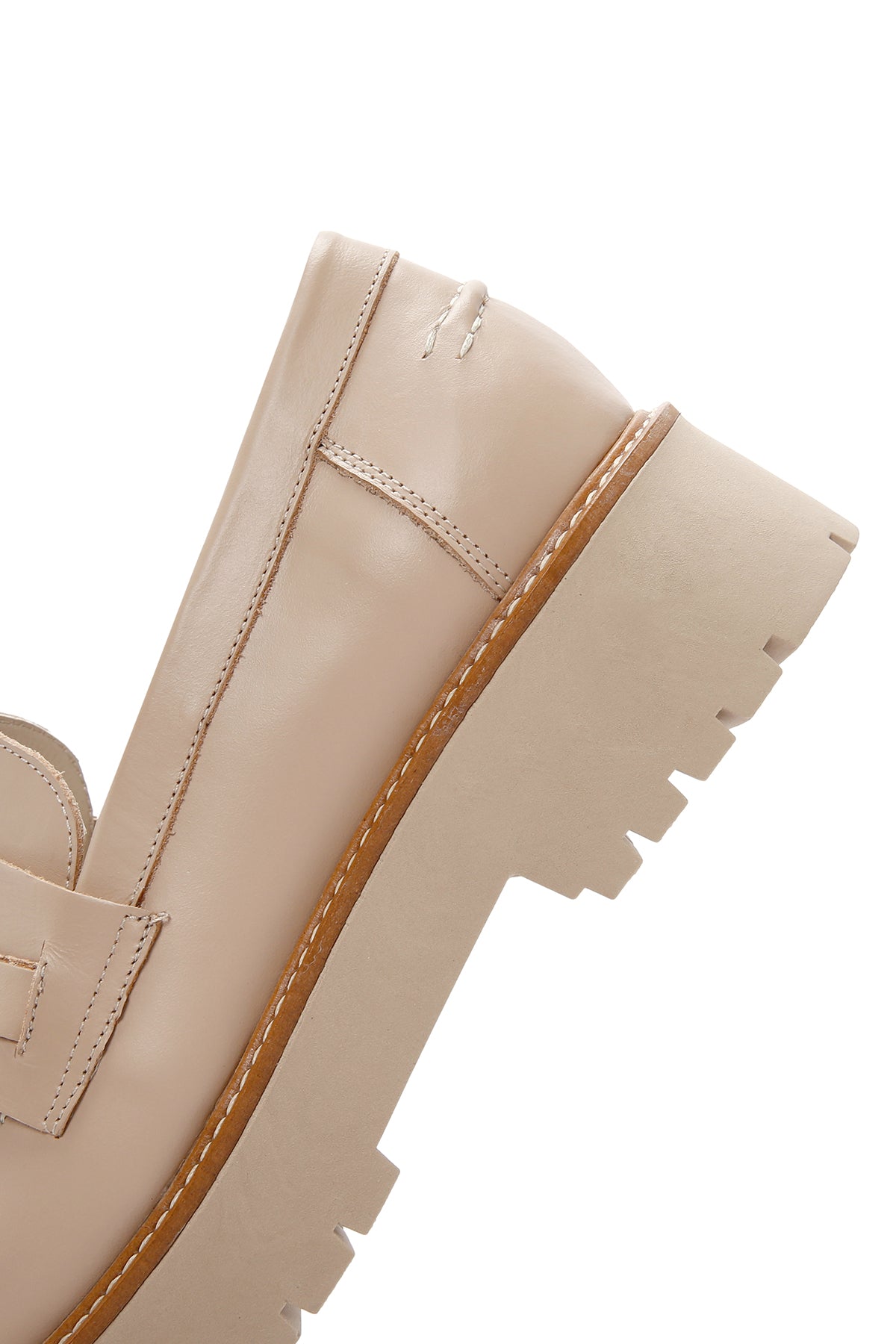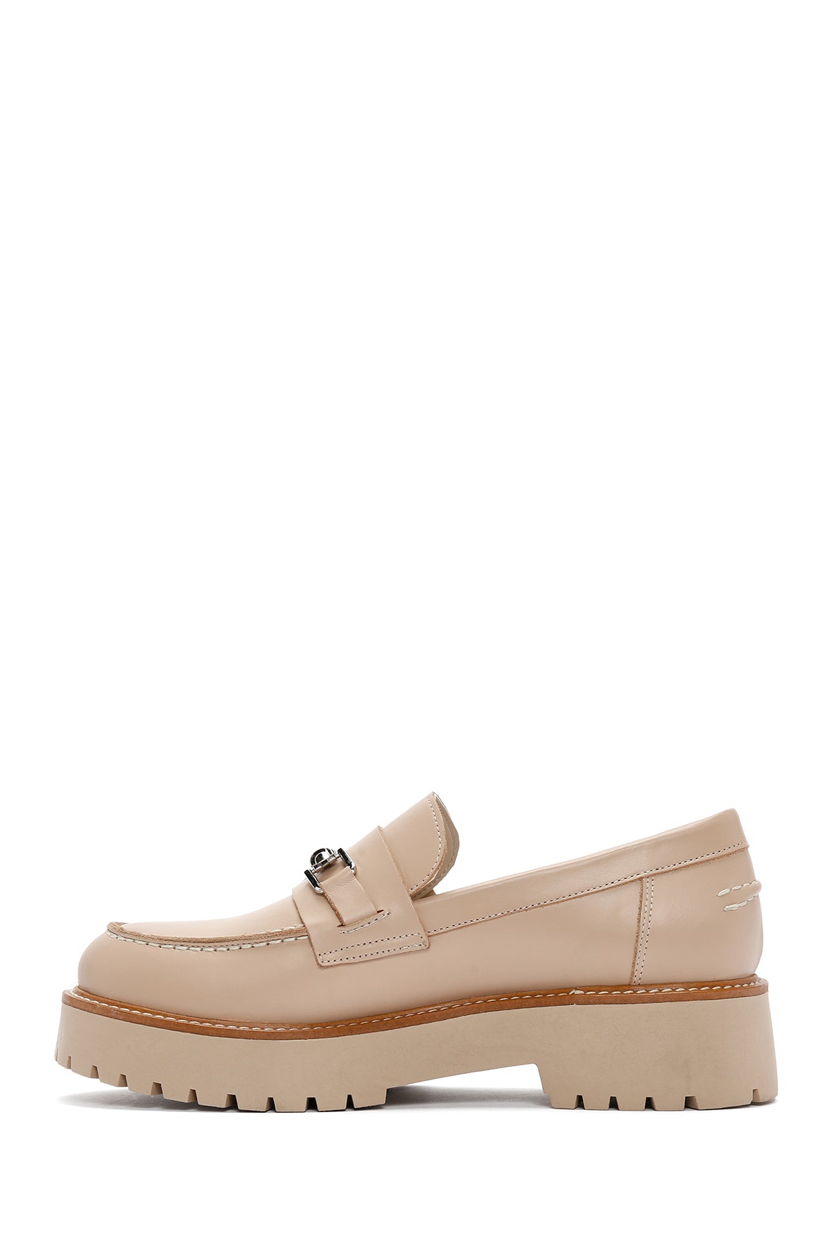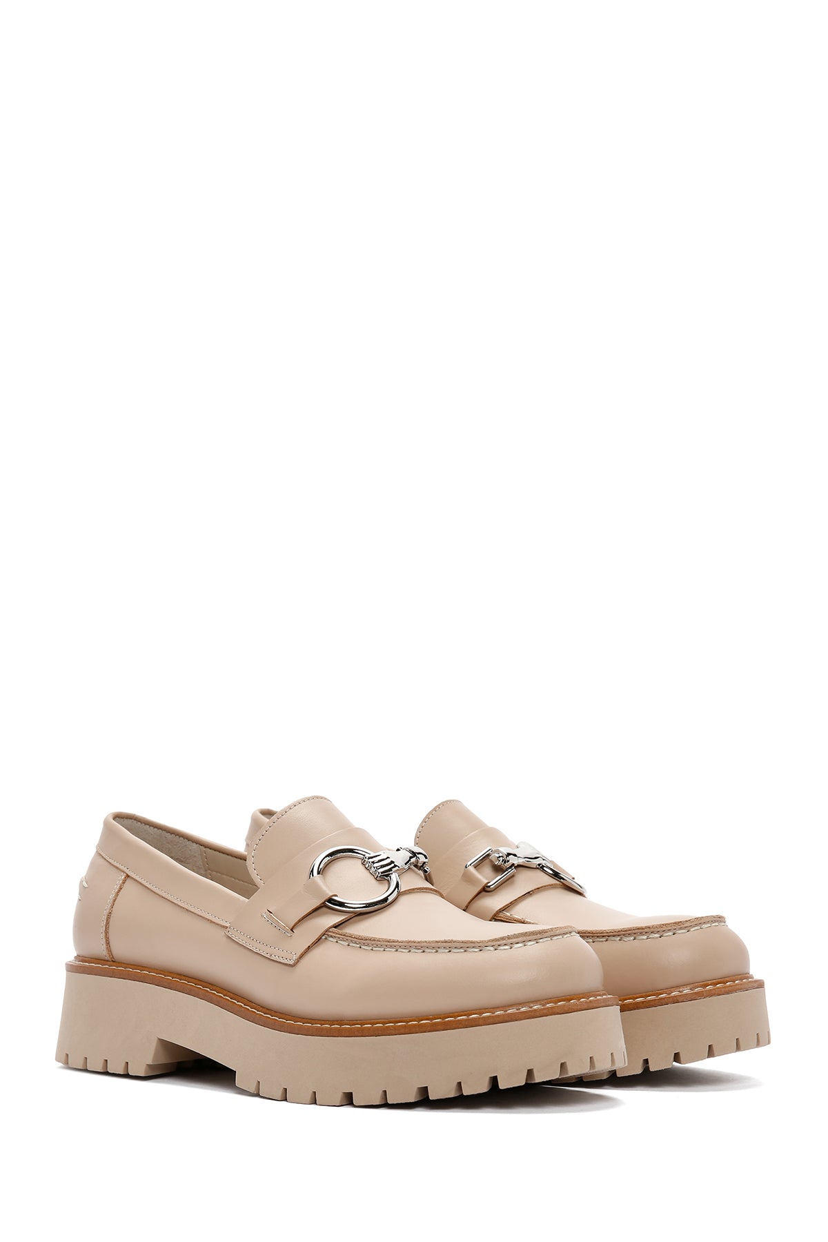 Derimod’un Zarif ve Şıklığı bir arada sunan Kadın Bej Kalın Tabanlı Deri Maskülen Loafer ile tarzınızı konuşturun. Ürünün kodu: 24SFD180518 N8