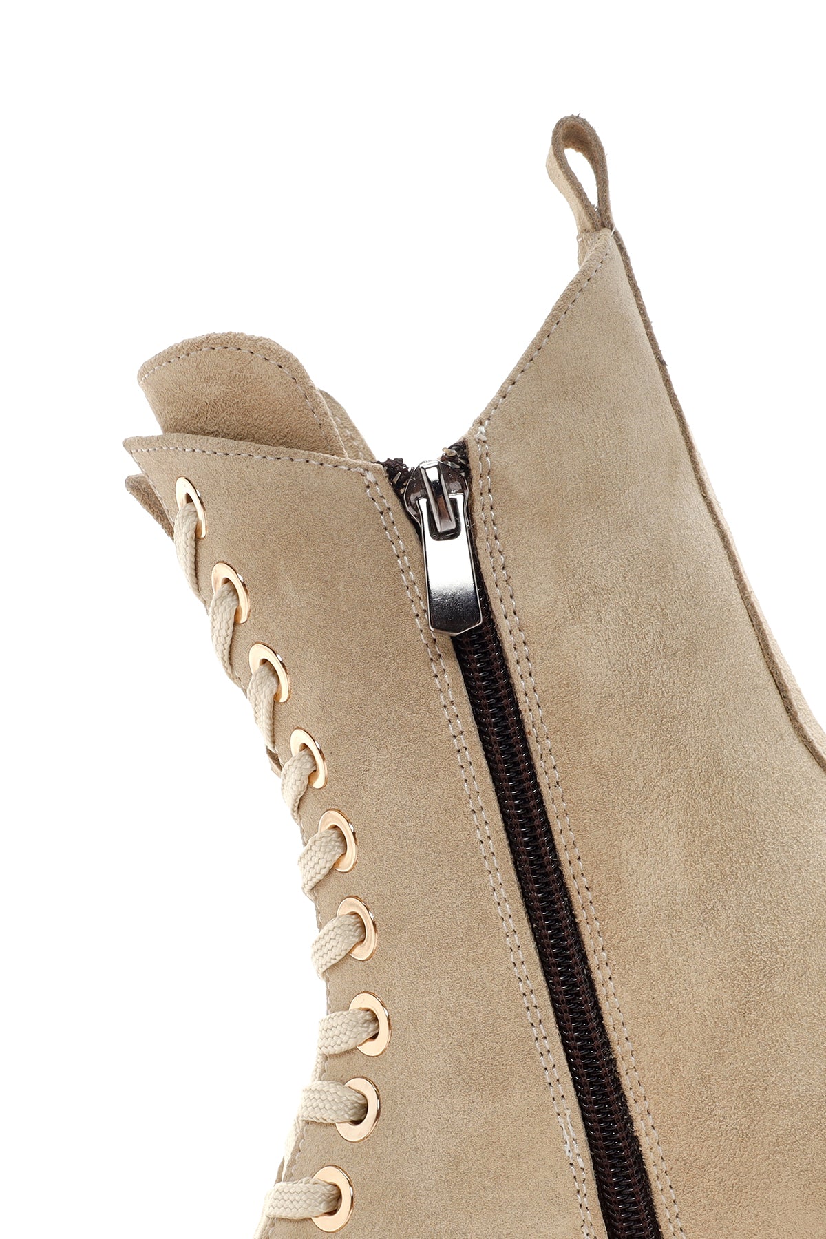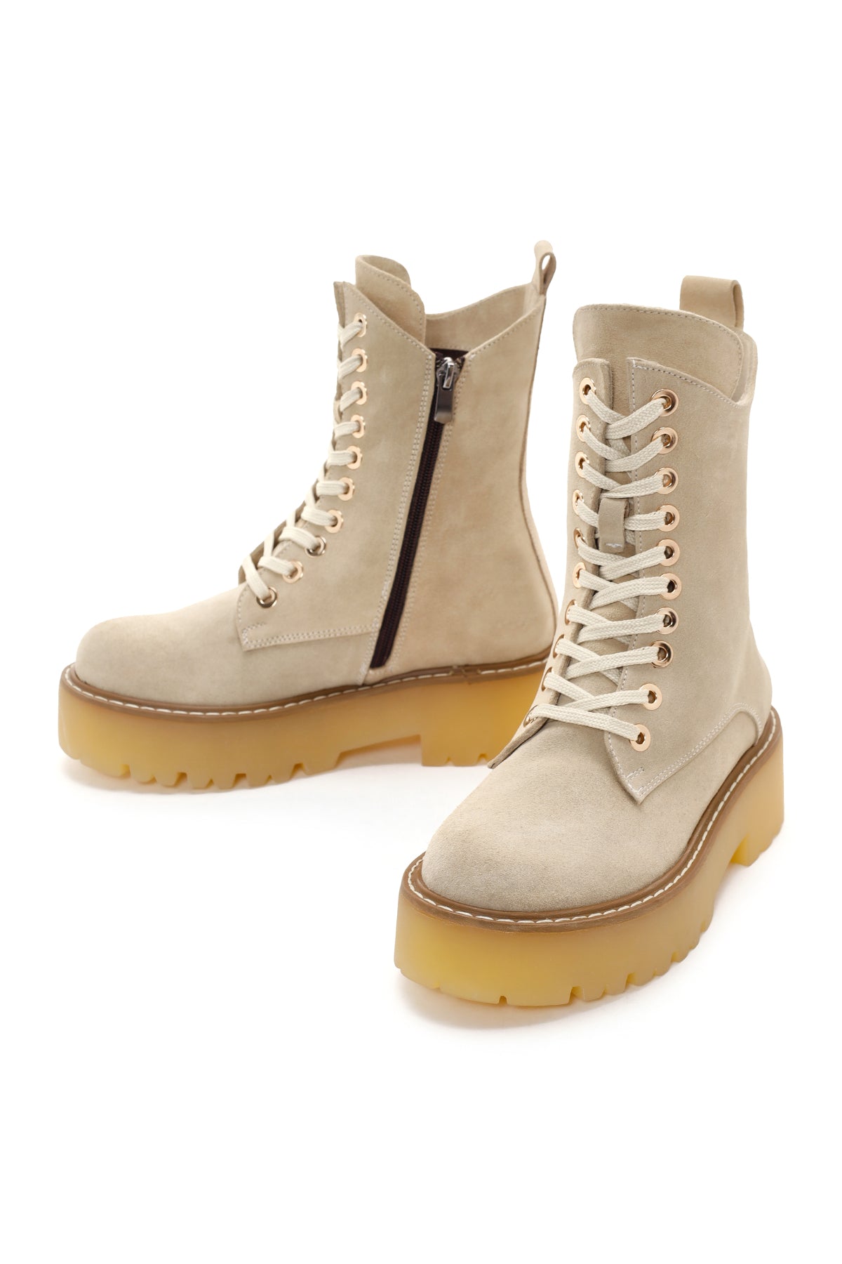 Derimod’un Zarif ve Şıklığı bir arada sunan Kadın Bej Kalın Tabanlı Fermuarlı Süet Deri Postal Bot ile tarzınızı konuşturun. Ürünün kodu: 23WFD200810 05