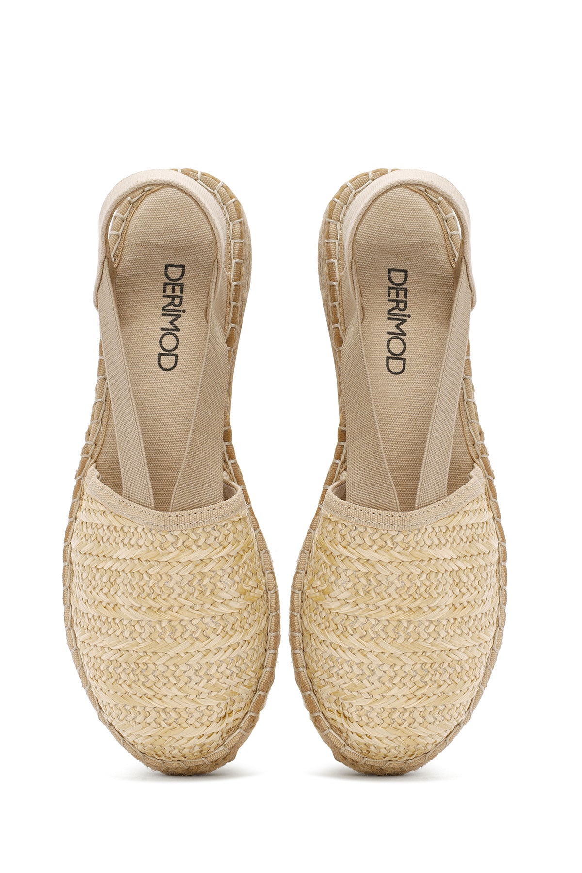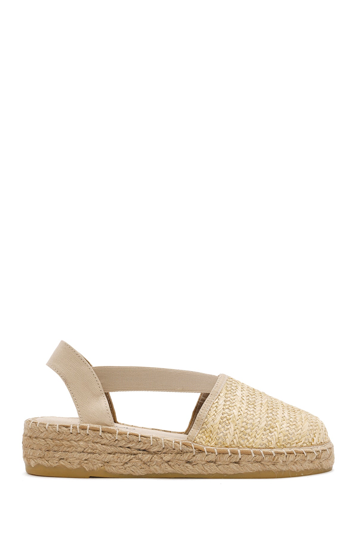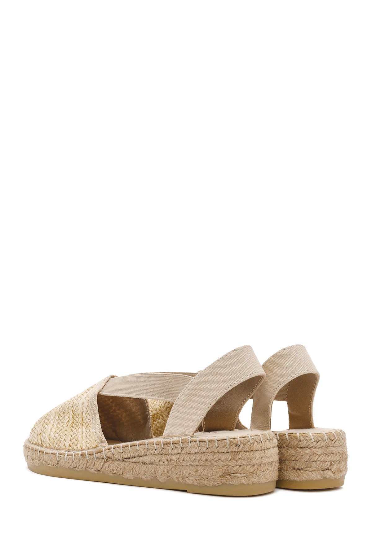 Kadın Bej Kalın Tabanlı Hasır Espadril Sandalet