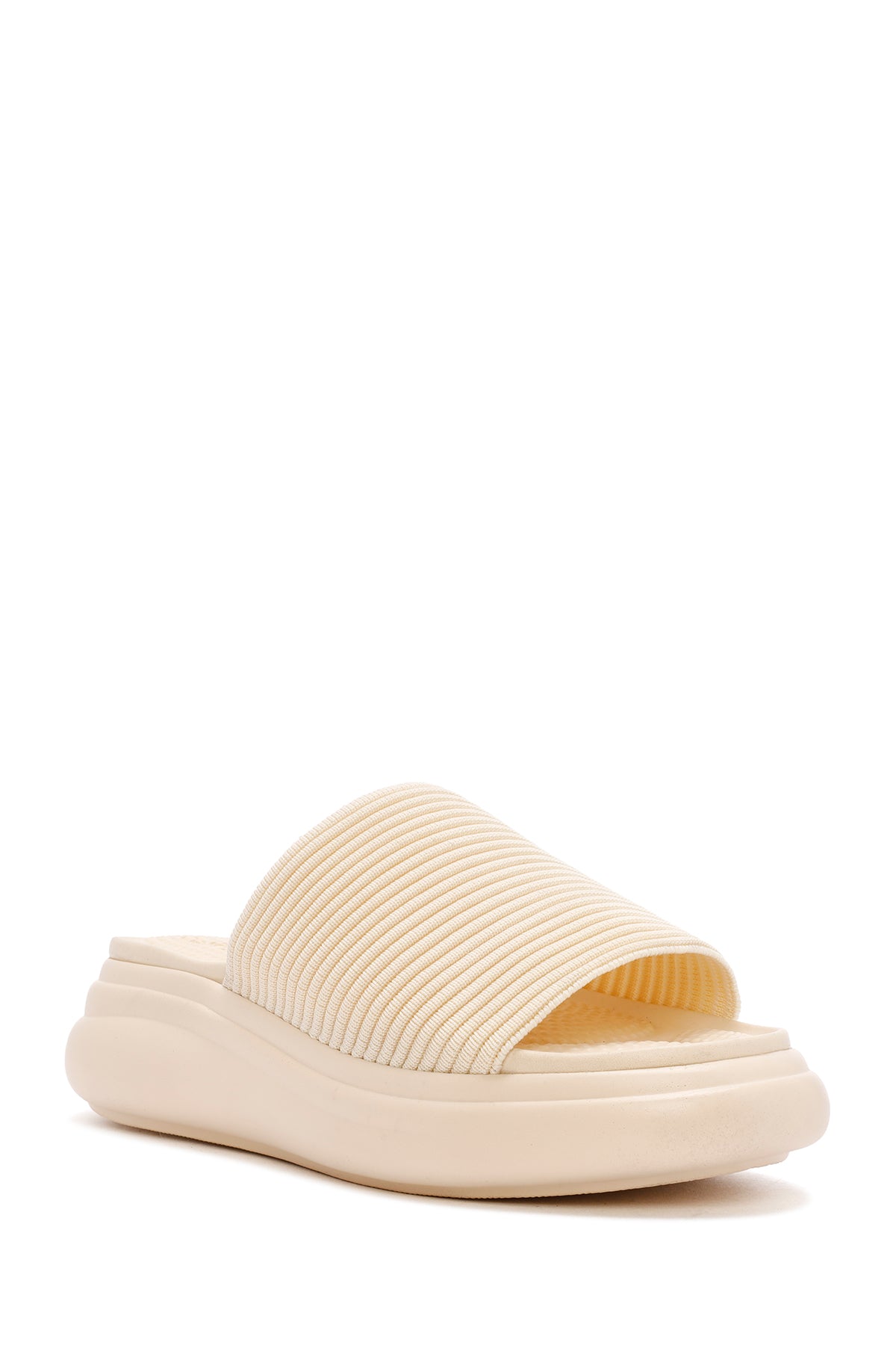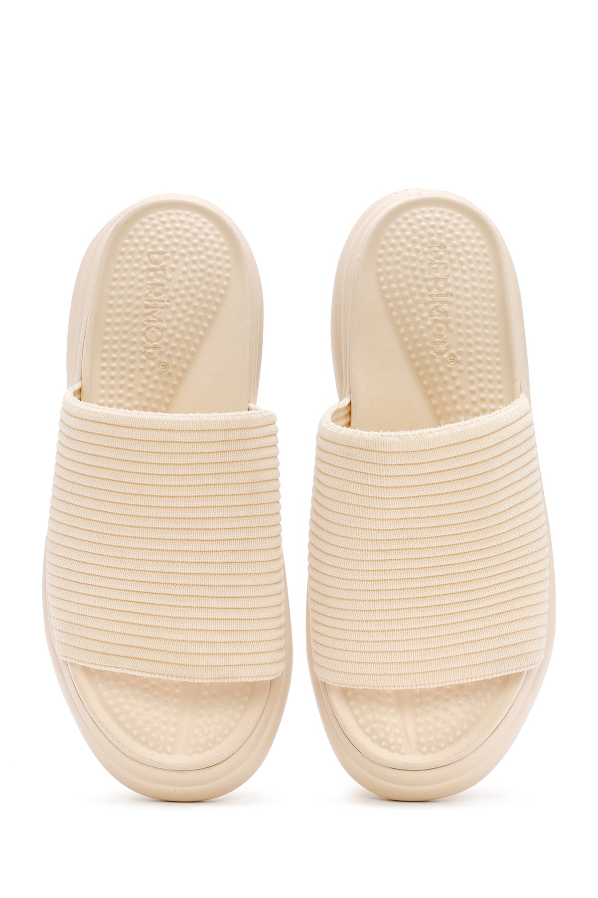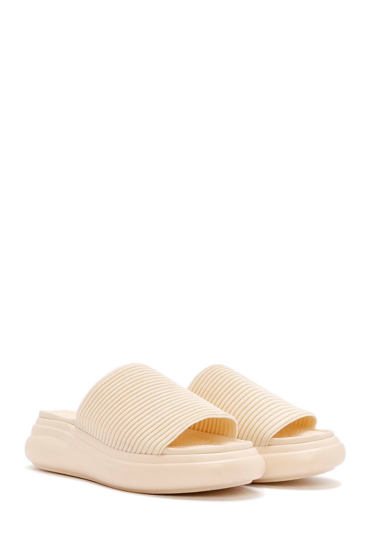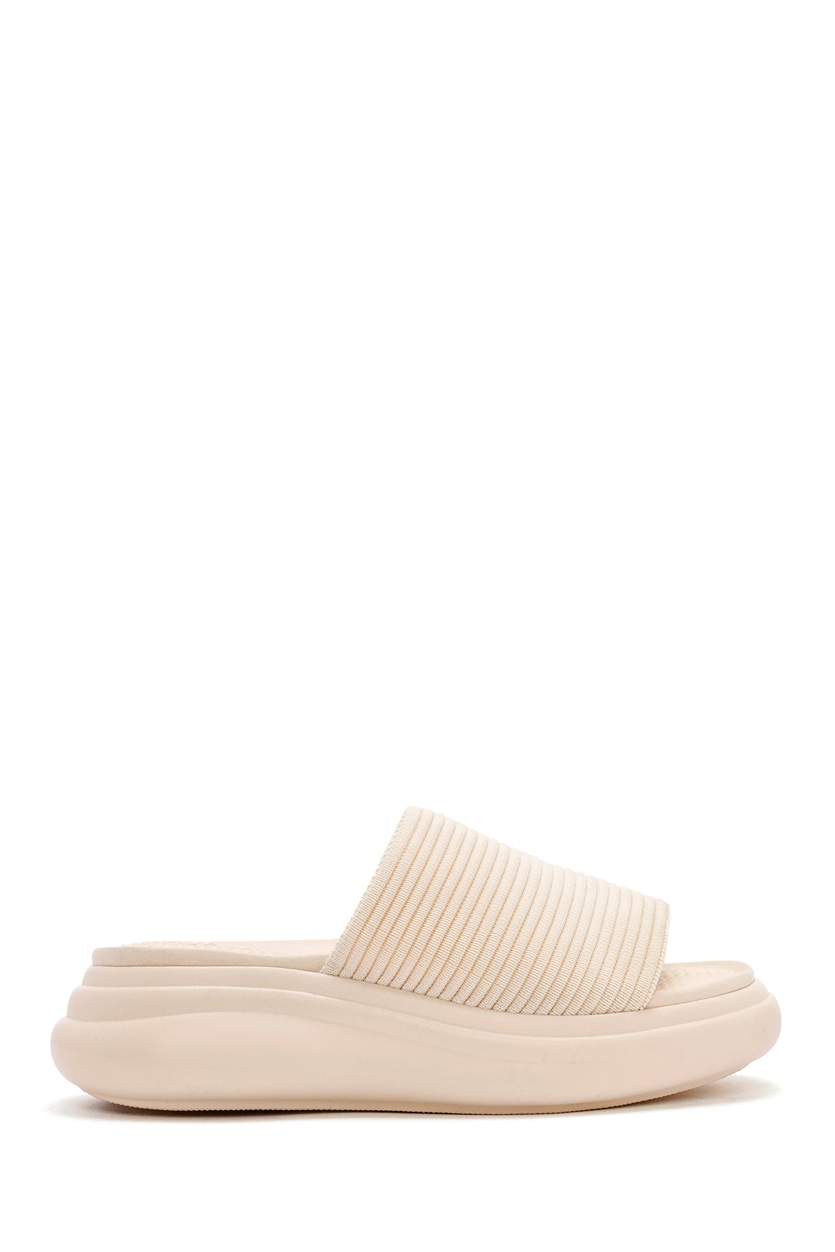 Kadın Bej Kalın Tabanlı Kumaş Terlik