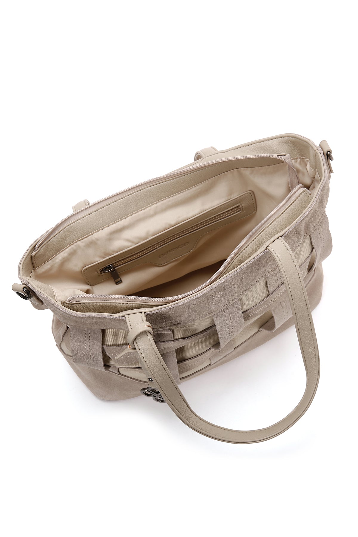 Derimod’un Zarif ve Şıklığı bir arada sunan Kadın Bej Suni Deri Omuz Çantası ürünü ile tarzınızı konuşturun. Ürünün kodu: 23SBD251814 2K