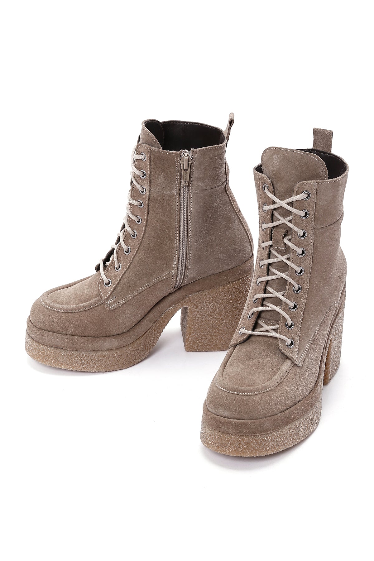 Derimod’un Zarif ve Şıklığı bir arada sunan Kadın Bej Platform Topuklu Fermuarlı Süet Deri Bot ile tarzınızı konuşturun. Ürünün kodu: 23WFD187910 05
