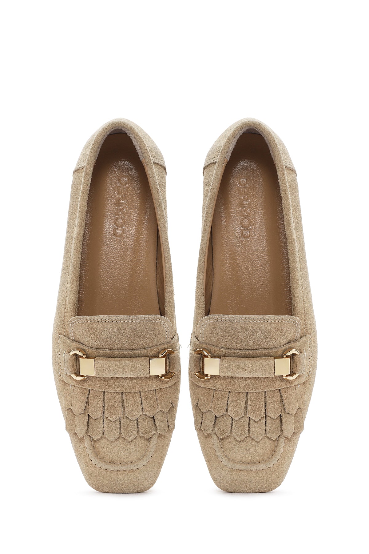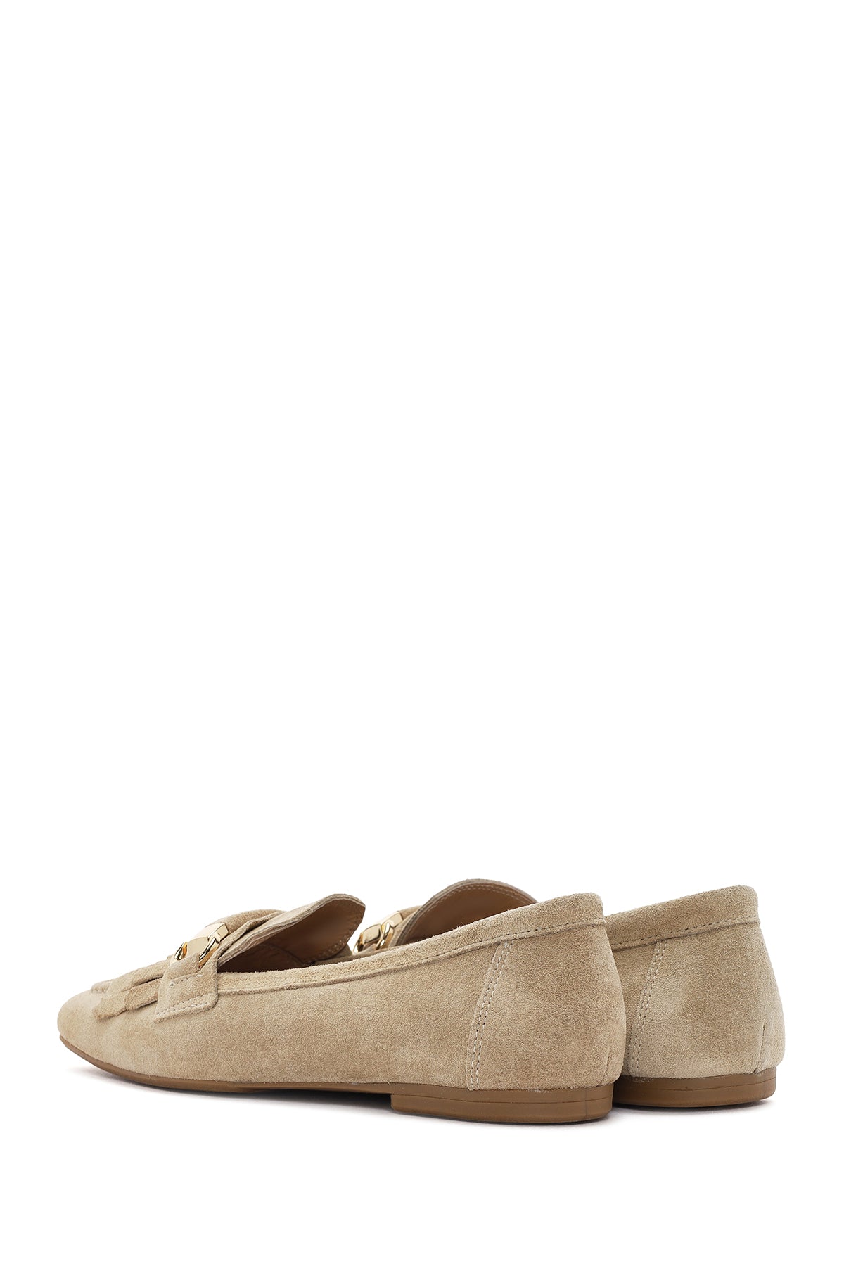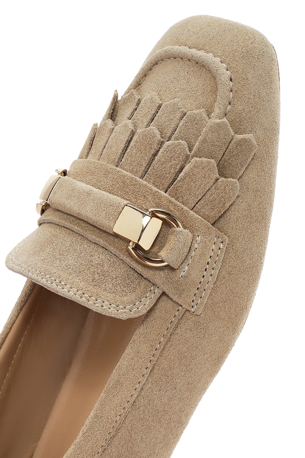 Kadın Bej Püsküllü Süet Deri Maskülen Loafer
