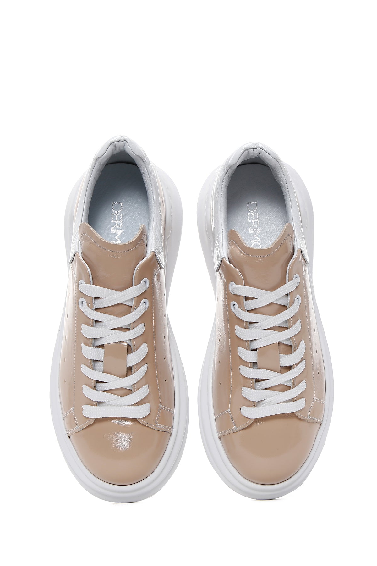 Derimod’un Zarif ve Şıklığı bir arada sunan Kadın Bej Rugan Deri Kalın Tabanlı Sneaker ile tarzınızı konuşturun. Ürünün kodu: 23SFD201116 N8