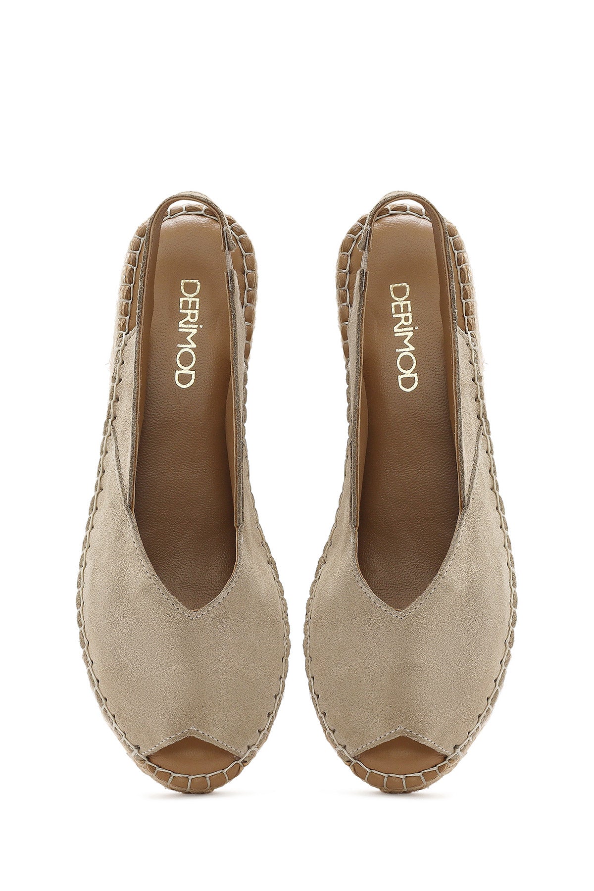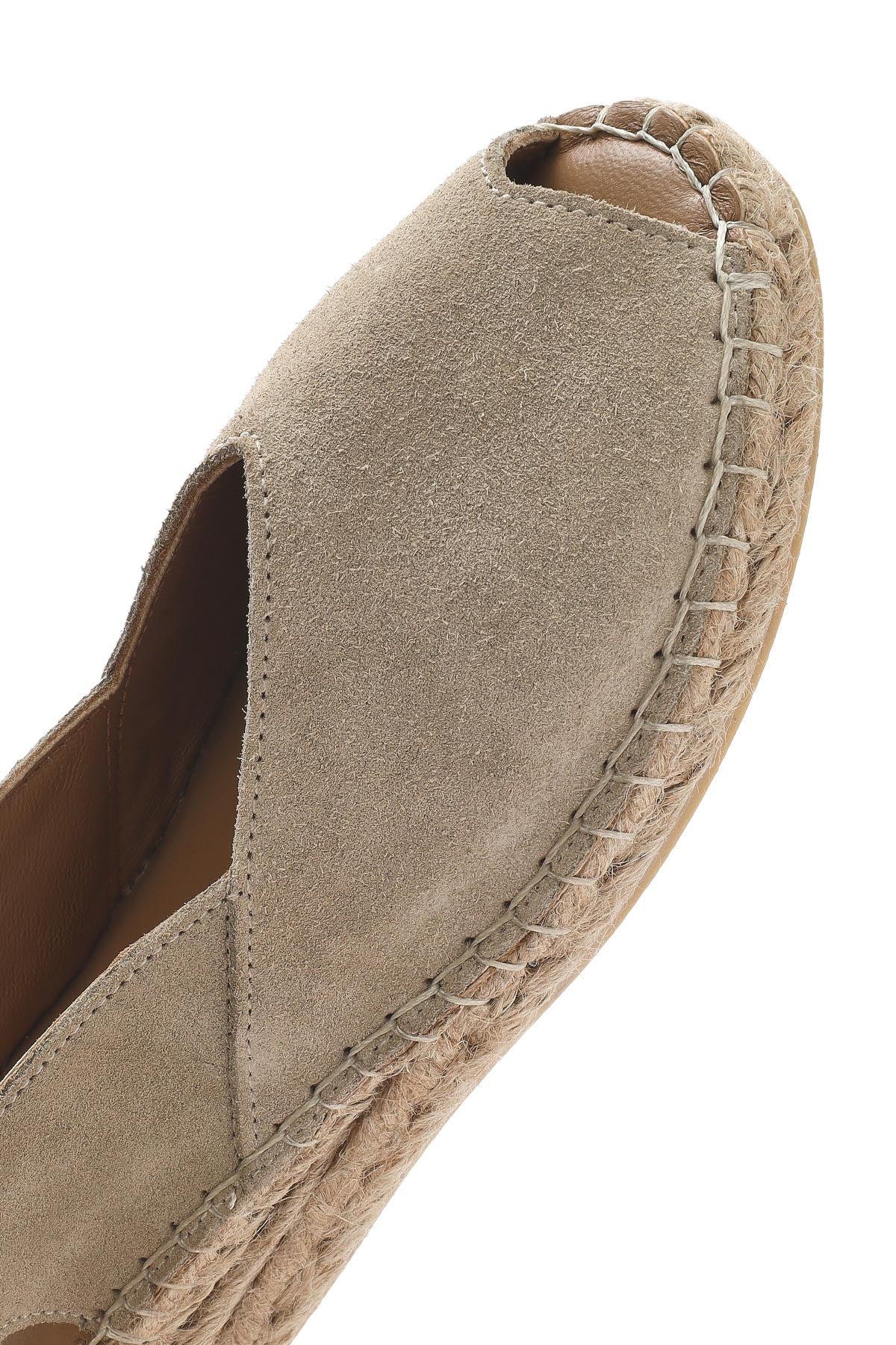 Kadın Bej Süet Deri Espadril Sandalet