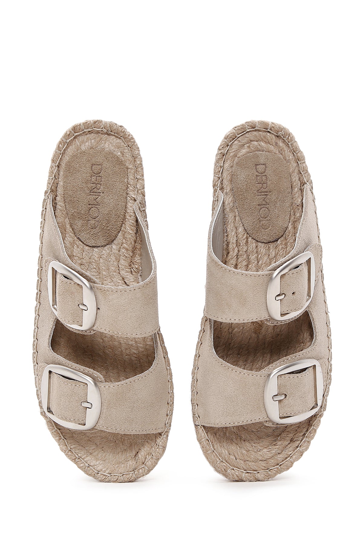 Derimod’un Zarif ve Şıklığı bir arada sunan Kadın Bej Süet Deri Hasır Taban Terlik ile tarzınızı konuşturun. Ürünün kodu: 23SFD205010 T9