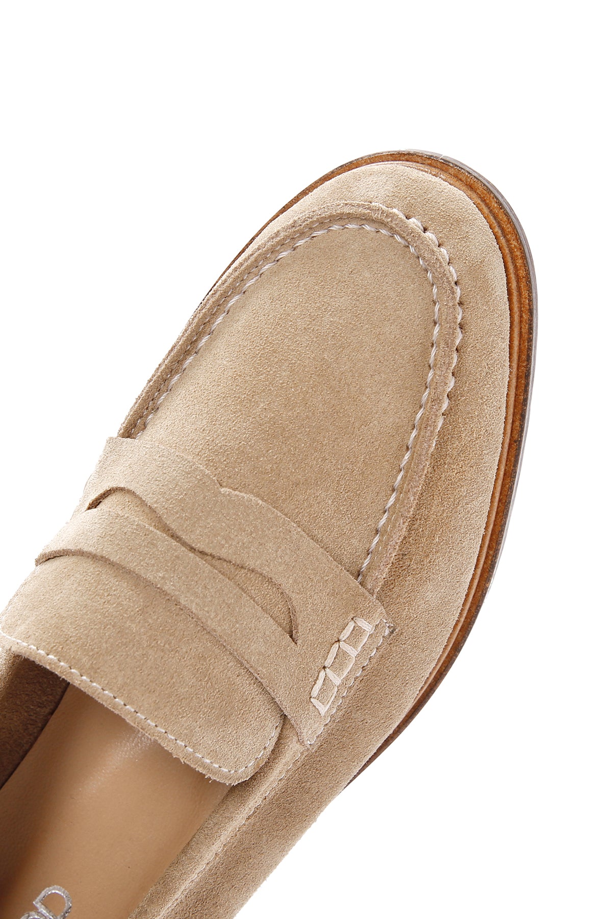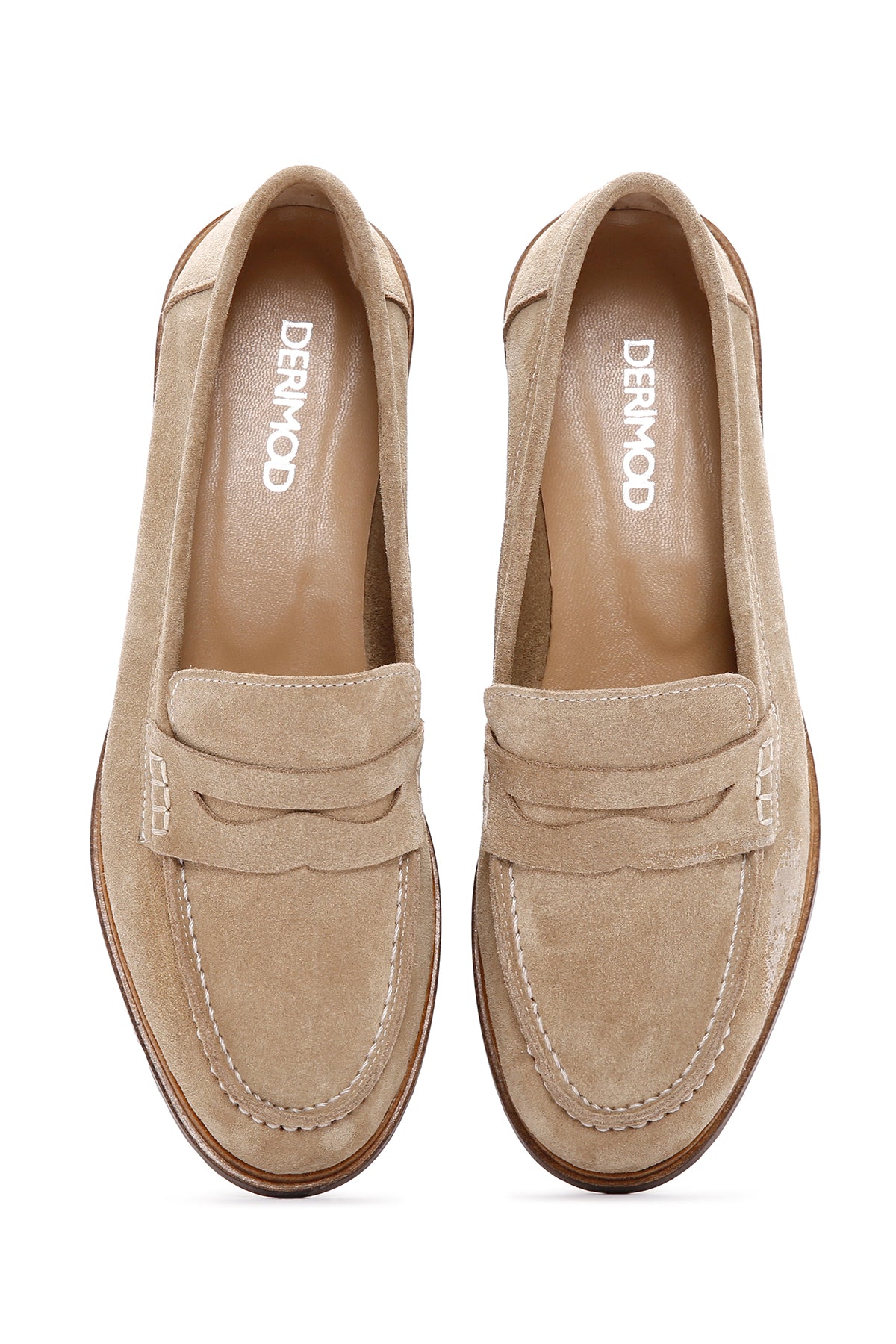 Kadın Bej Süet Deri Maskülen Loafer