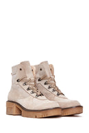 Derimod’un Zarif ve Şıklığı bir arada sunan Kadın Bej Süet Deri Postal Bot ile tarzınızı konuşturun. Ürünün kodu: 22WFD150610 05