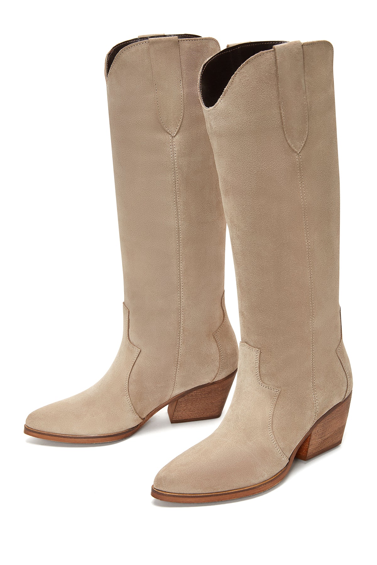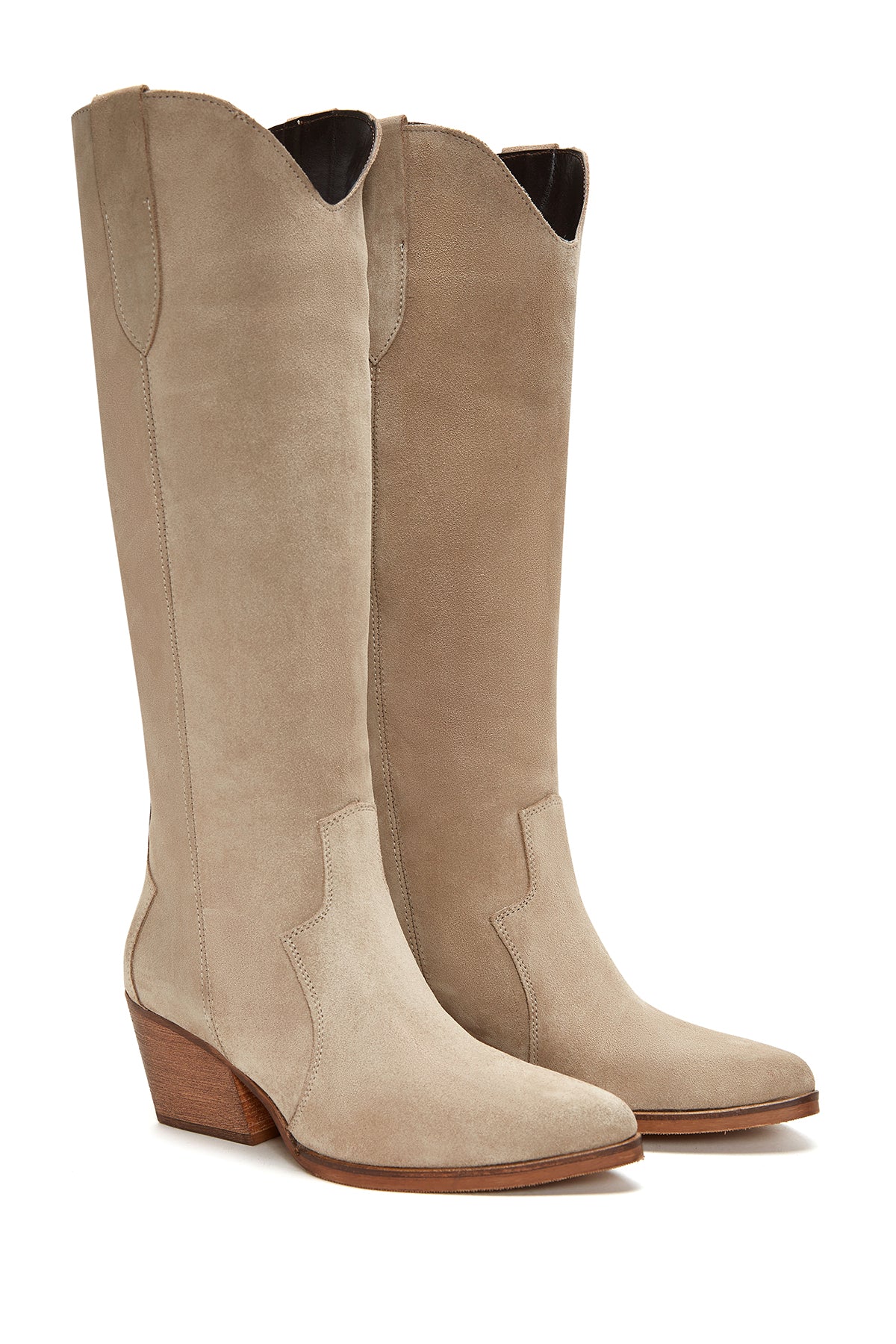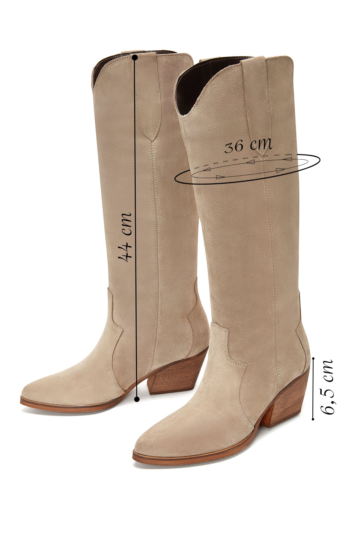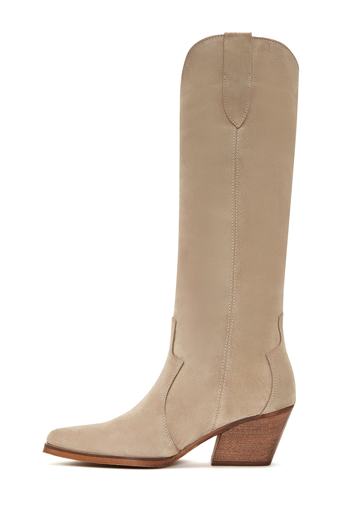 Derimod’un Zarif ve Şıklığı bir arada sunan Kadın Bej Süet Deri Topuklu Kovboy Çizme ile tarzınızı konuşturun. Ürünün kodu: 23WFD184310 05
