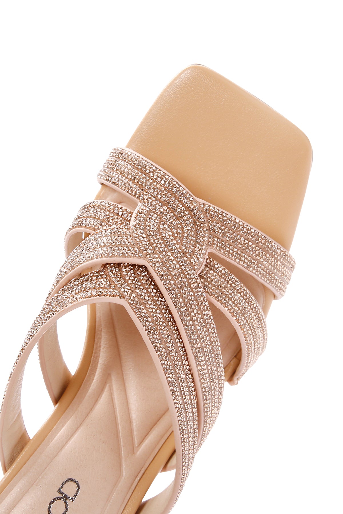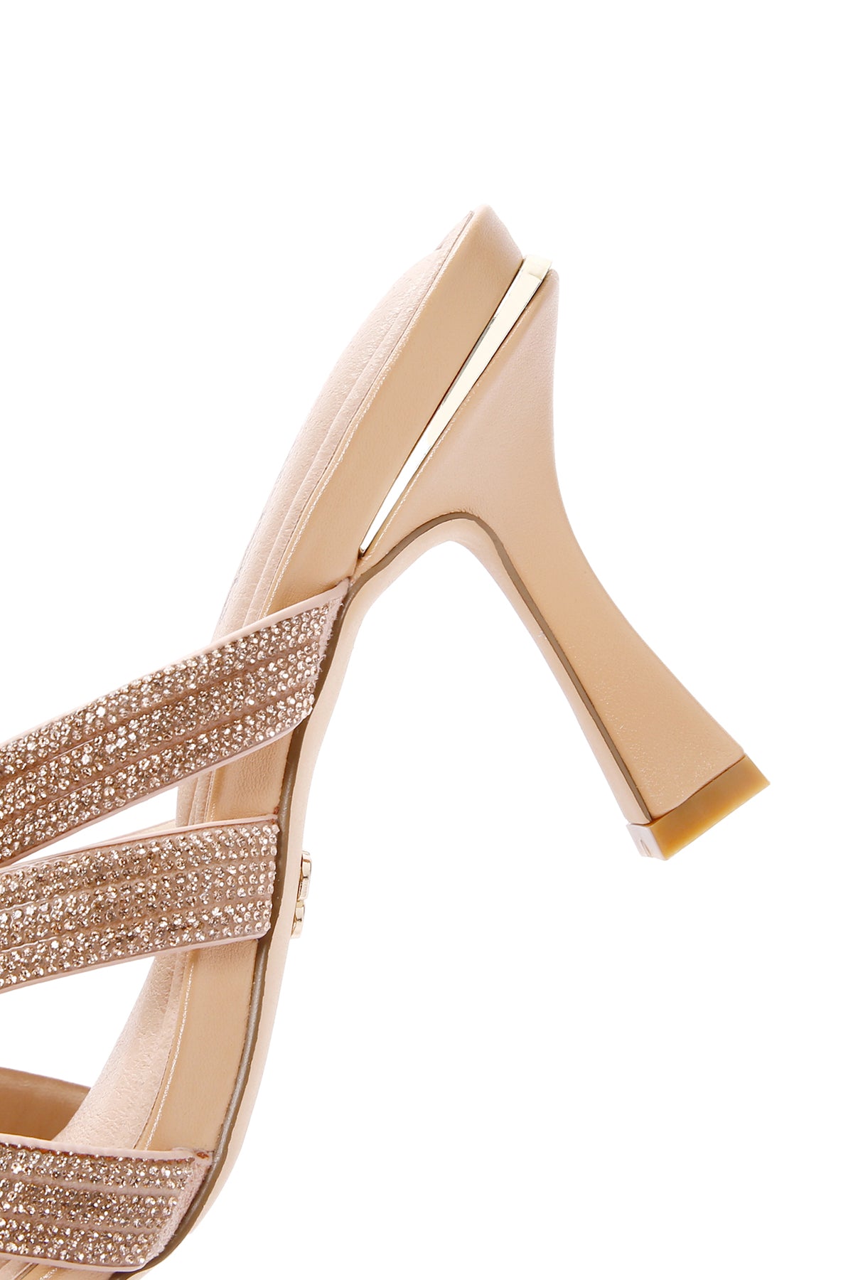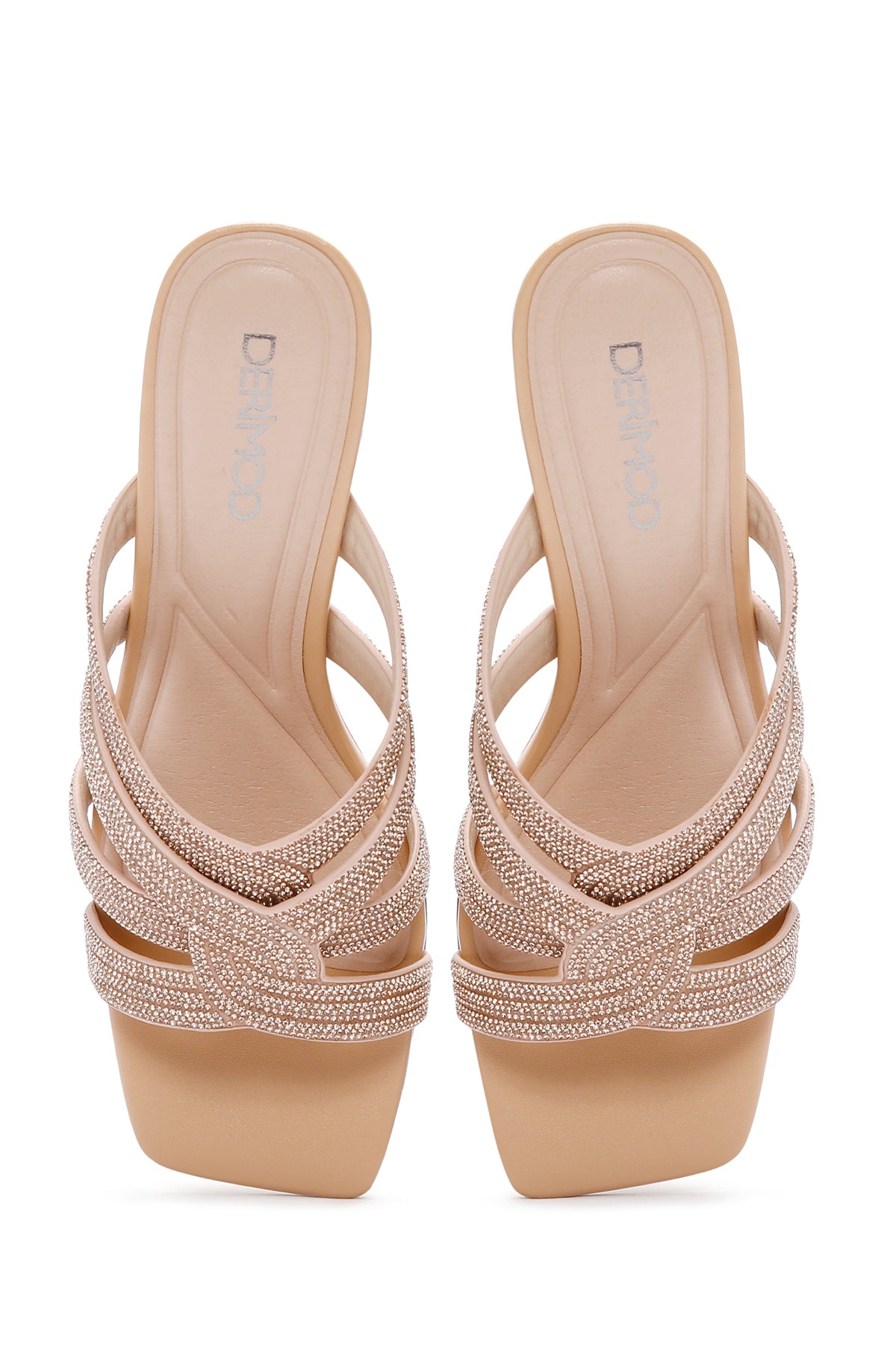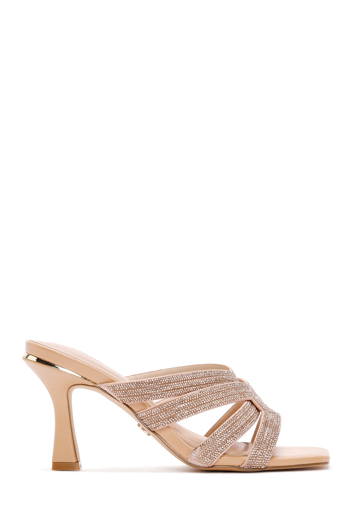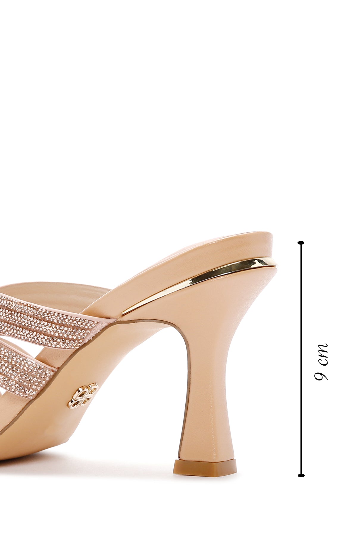 Kadın Bej Taşlı İnce Topuklu Terlik