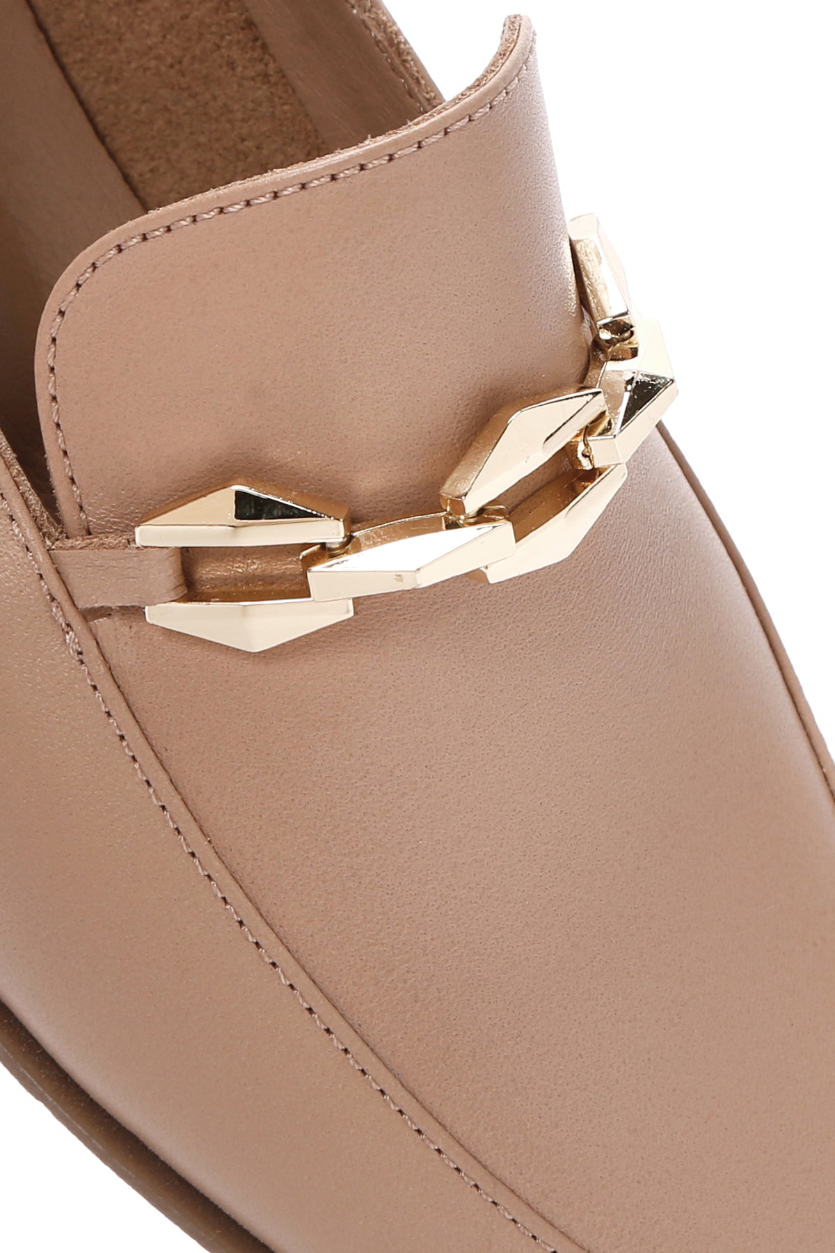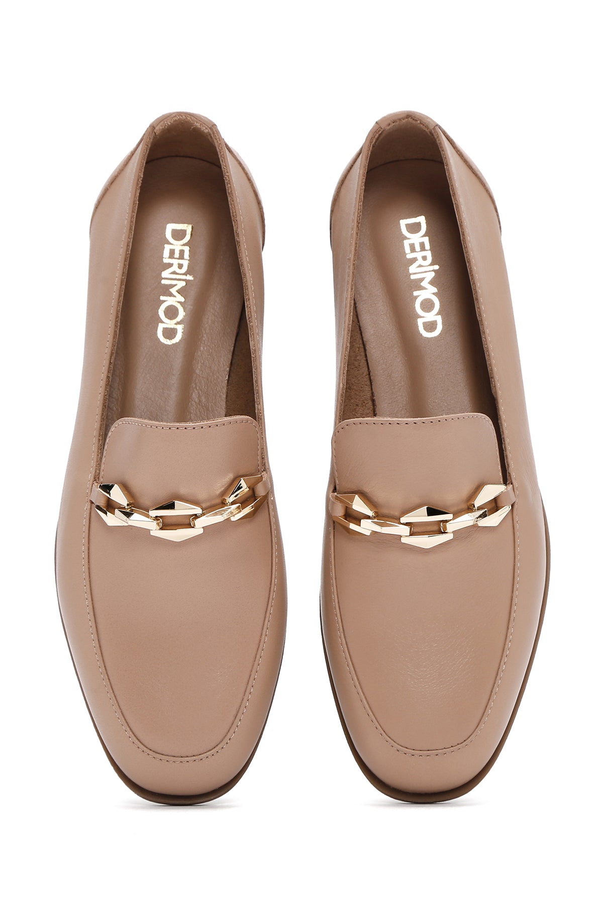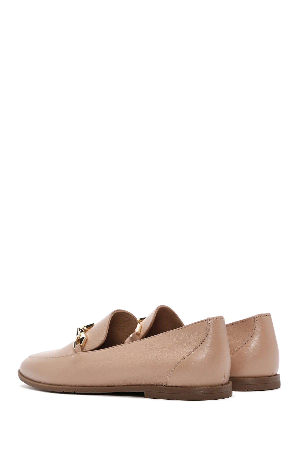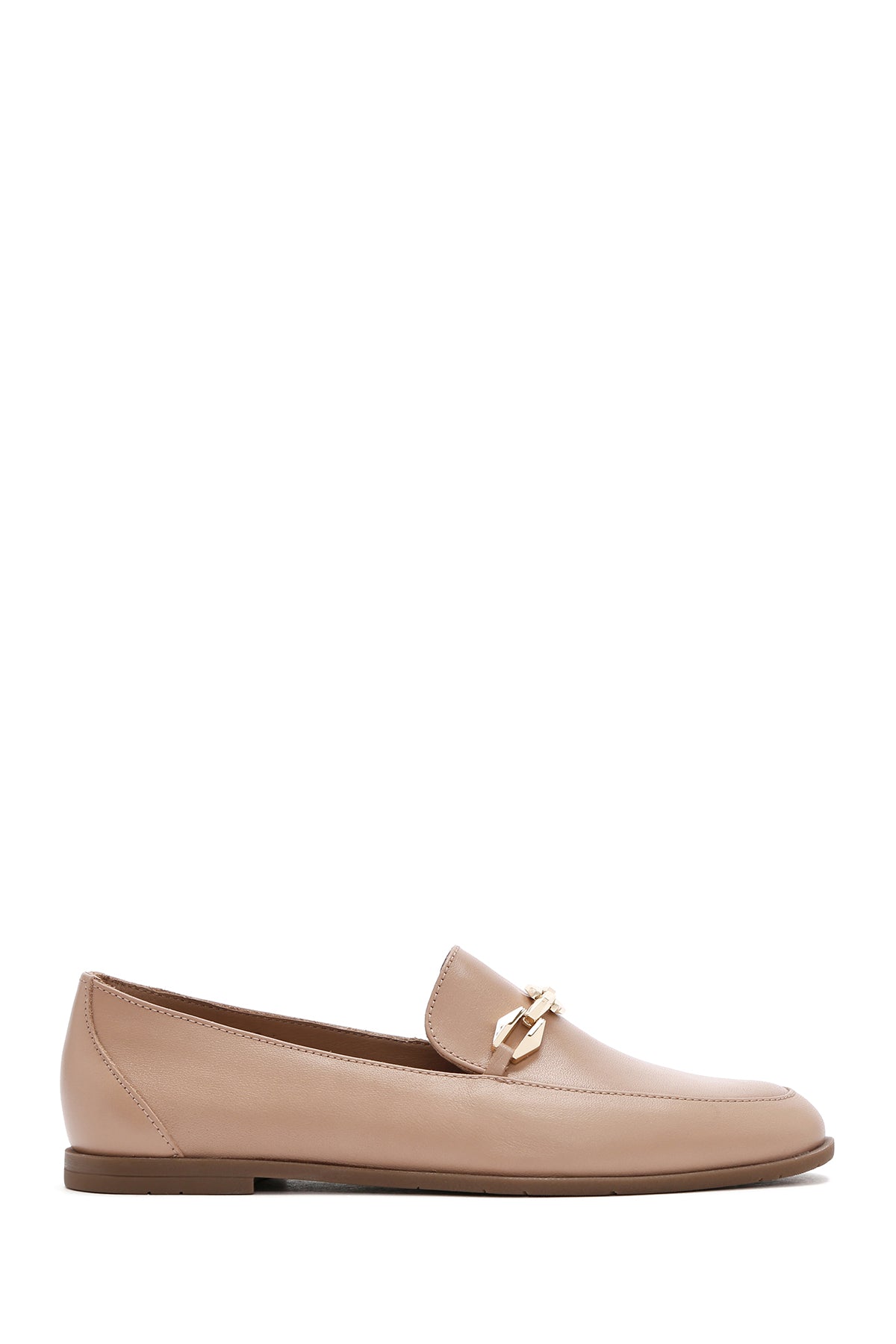 Kadın Bej Tokalı Deri Loafer