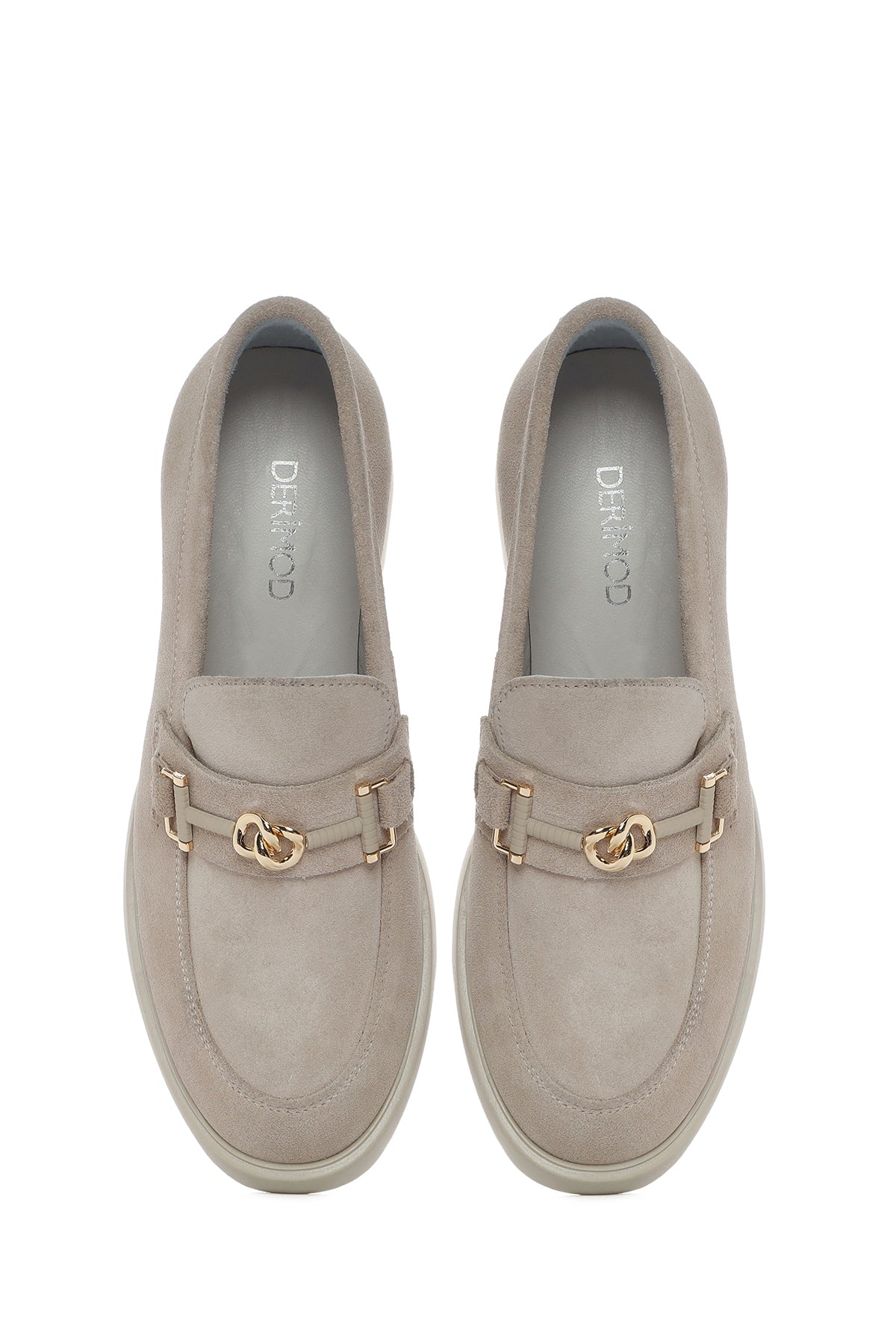 Derimod’un Zarifliği ve Şıklığı bir arada sunan Kadın Bej Tokalı Kalın Topuklu Süet Deri Maskülen Loafer ile tarzınızı konuşturun. Ürünün kodu: 25SFD510610 05