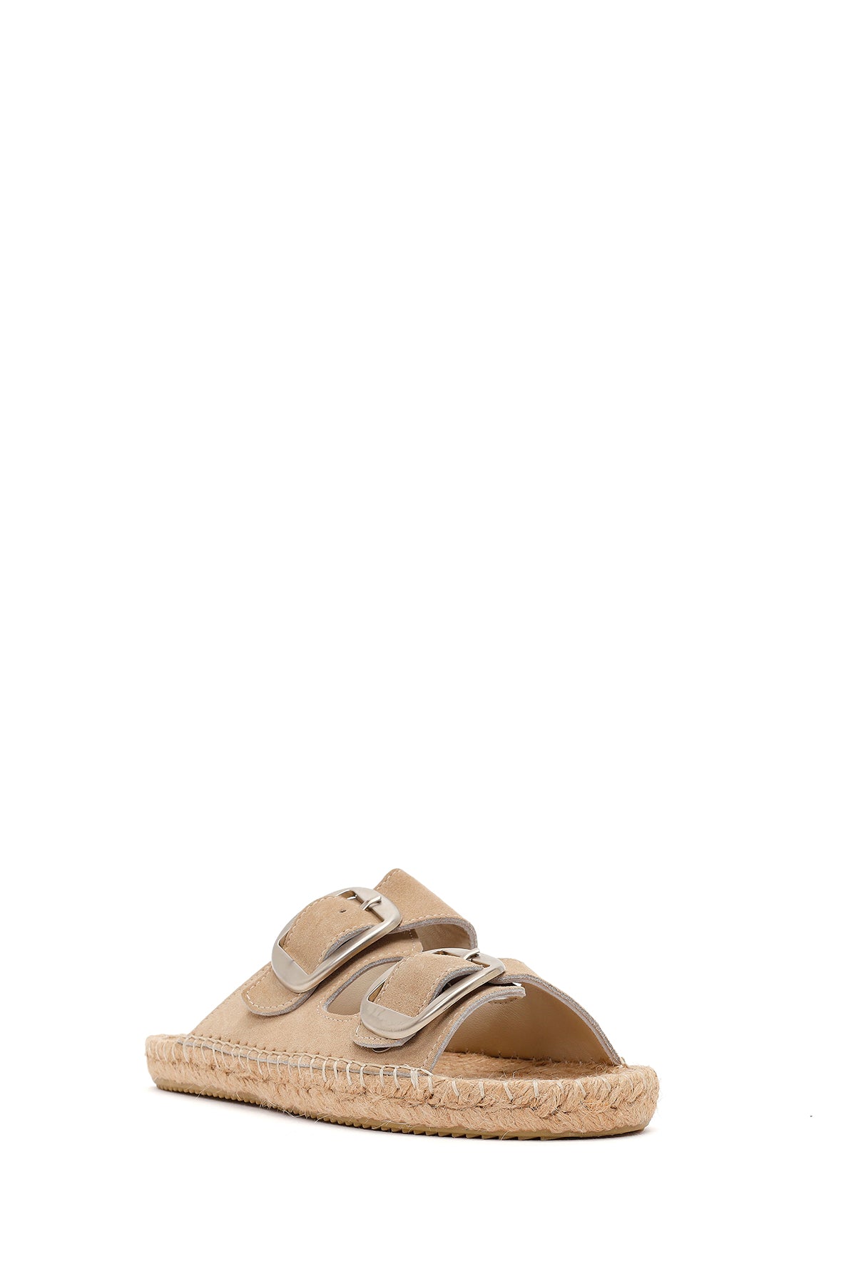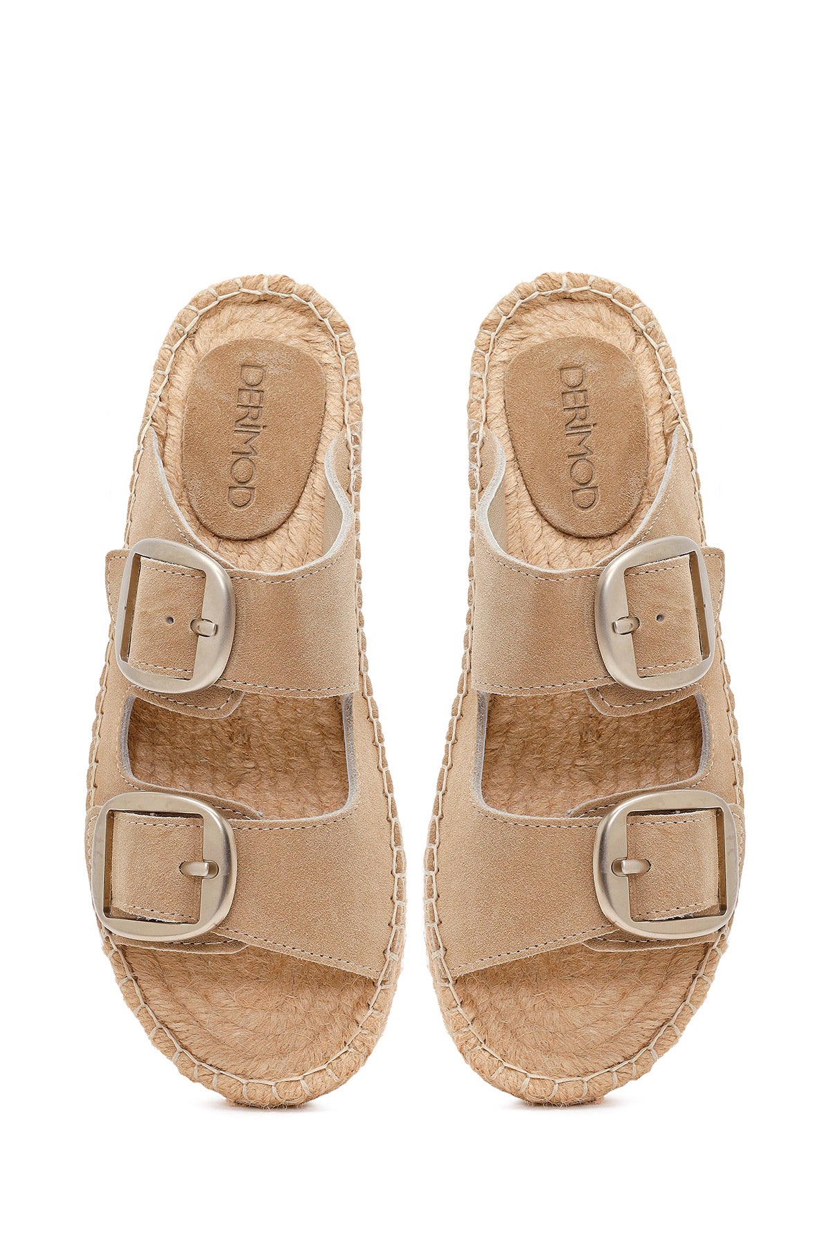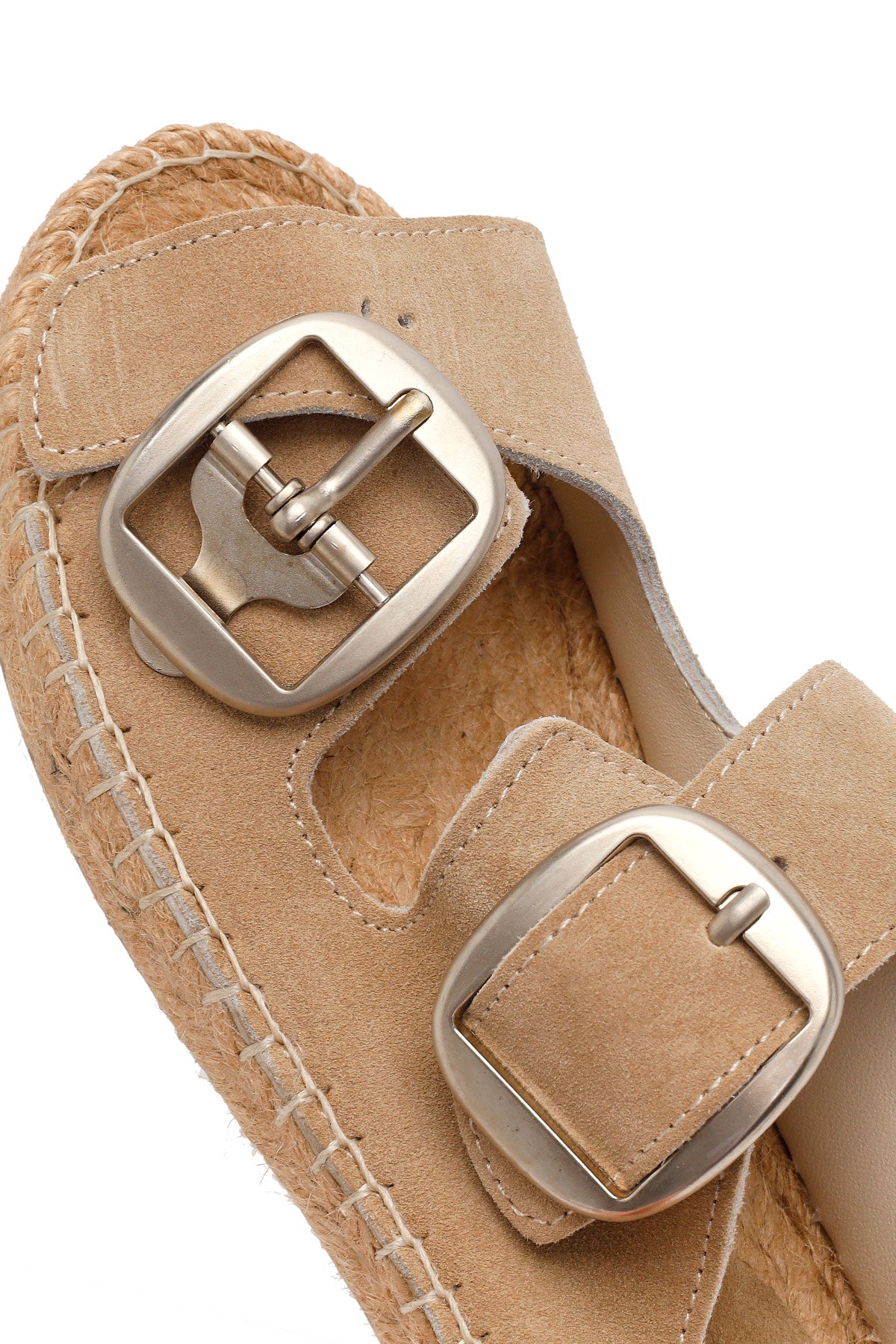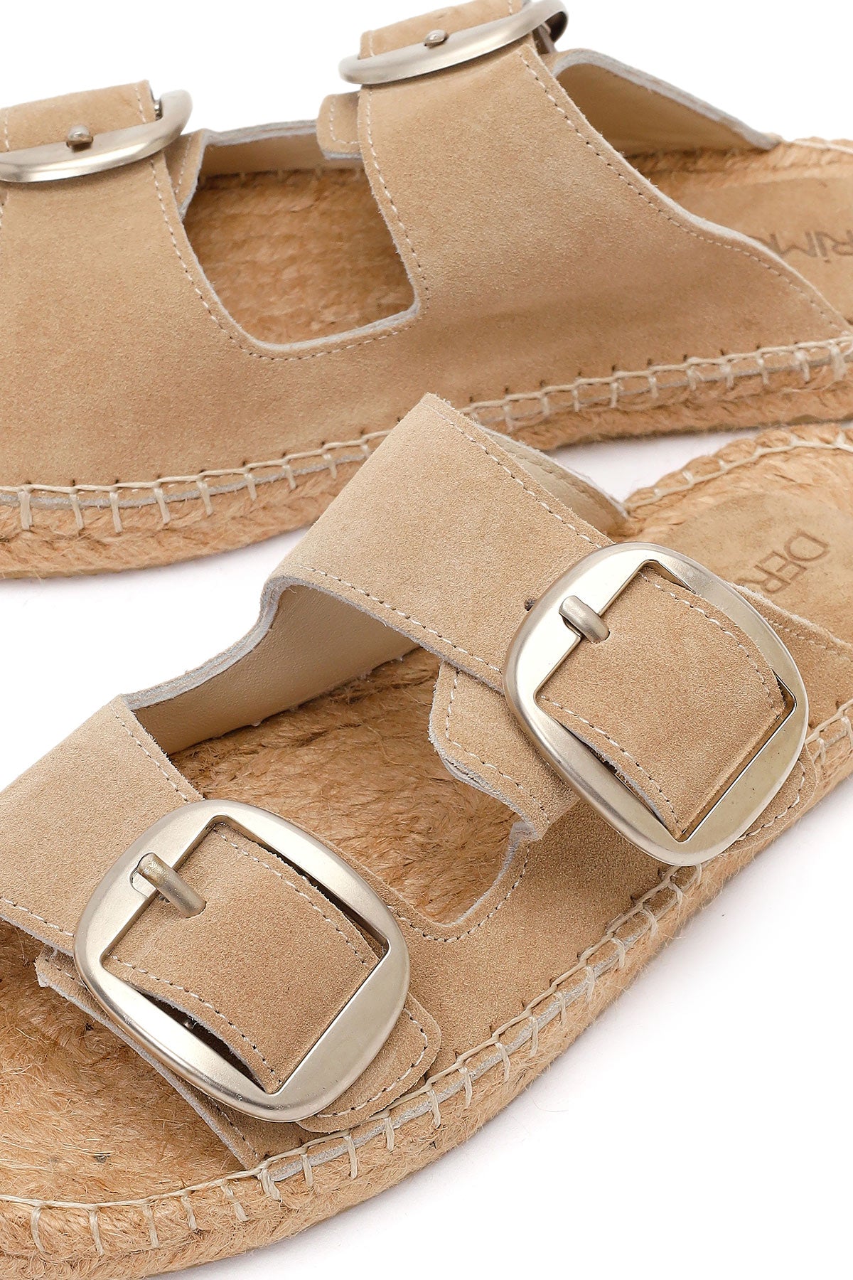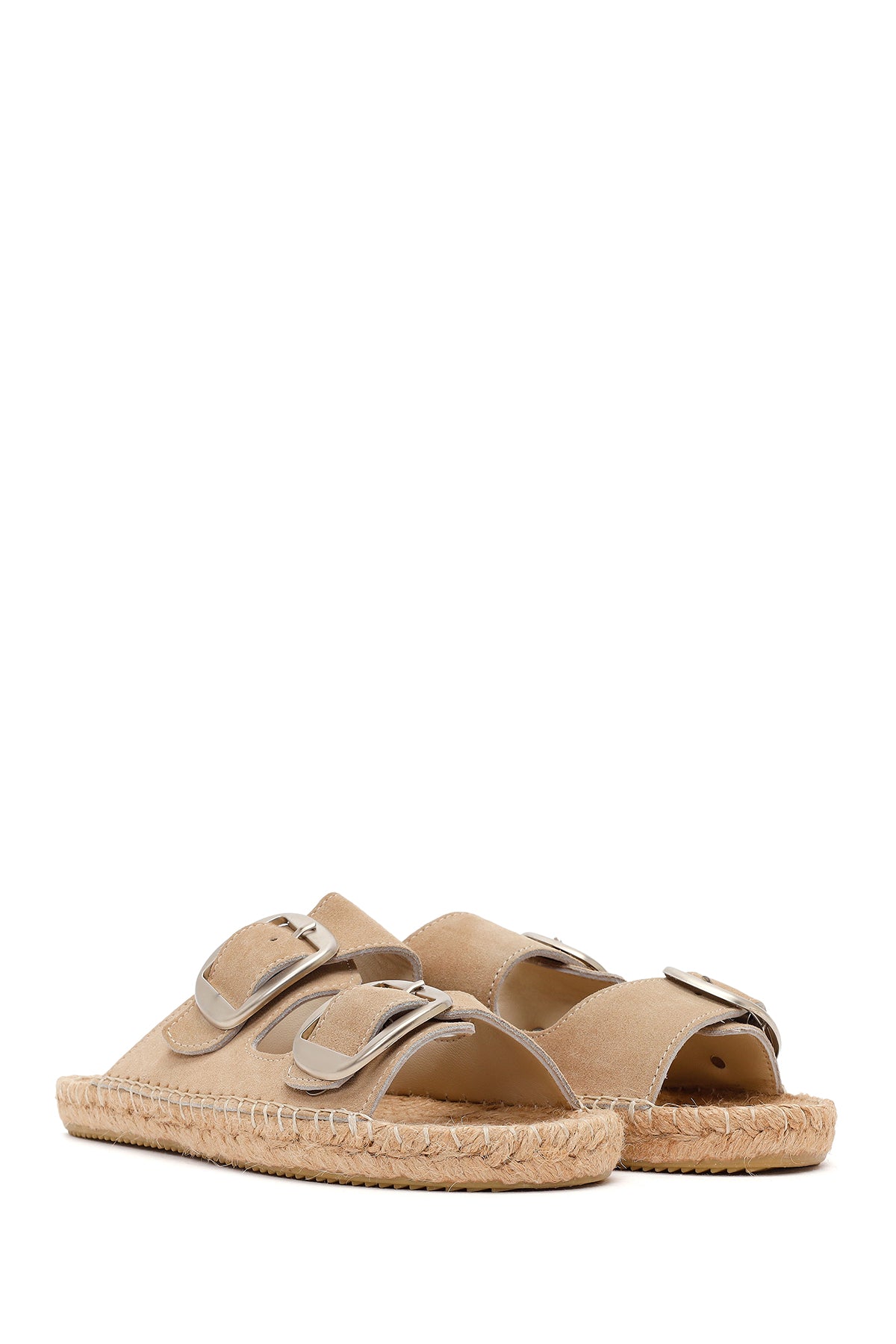 Kadın Bej Tokalı Süet Deri Espadril Terlik